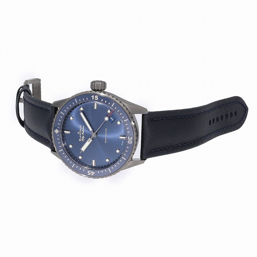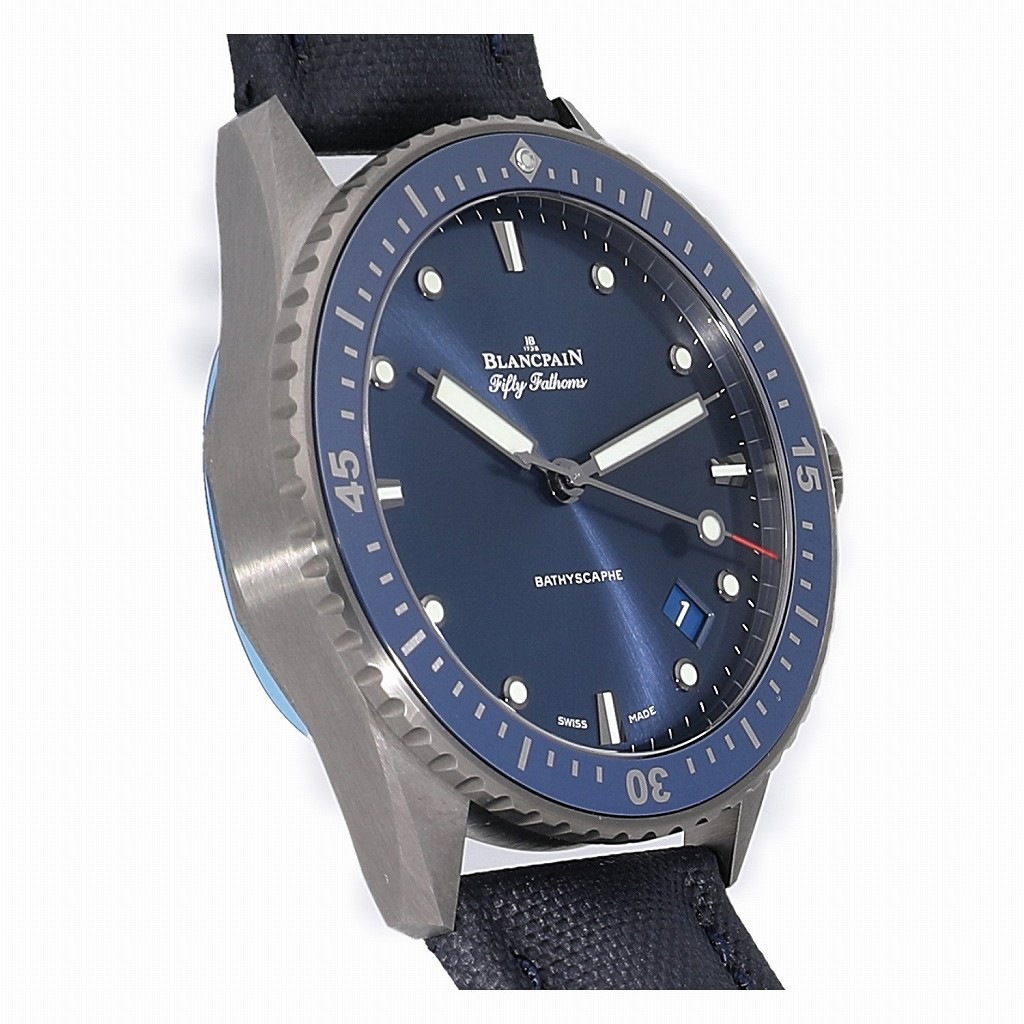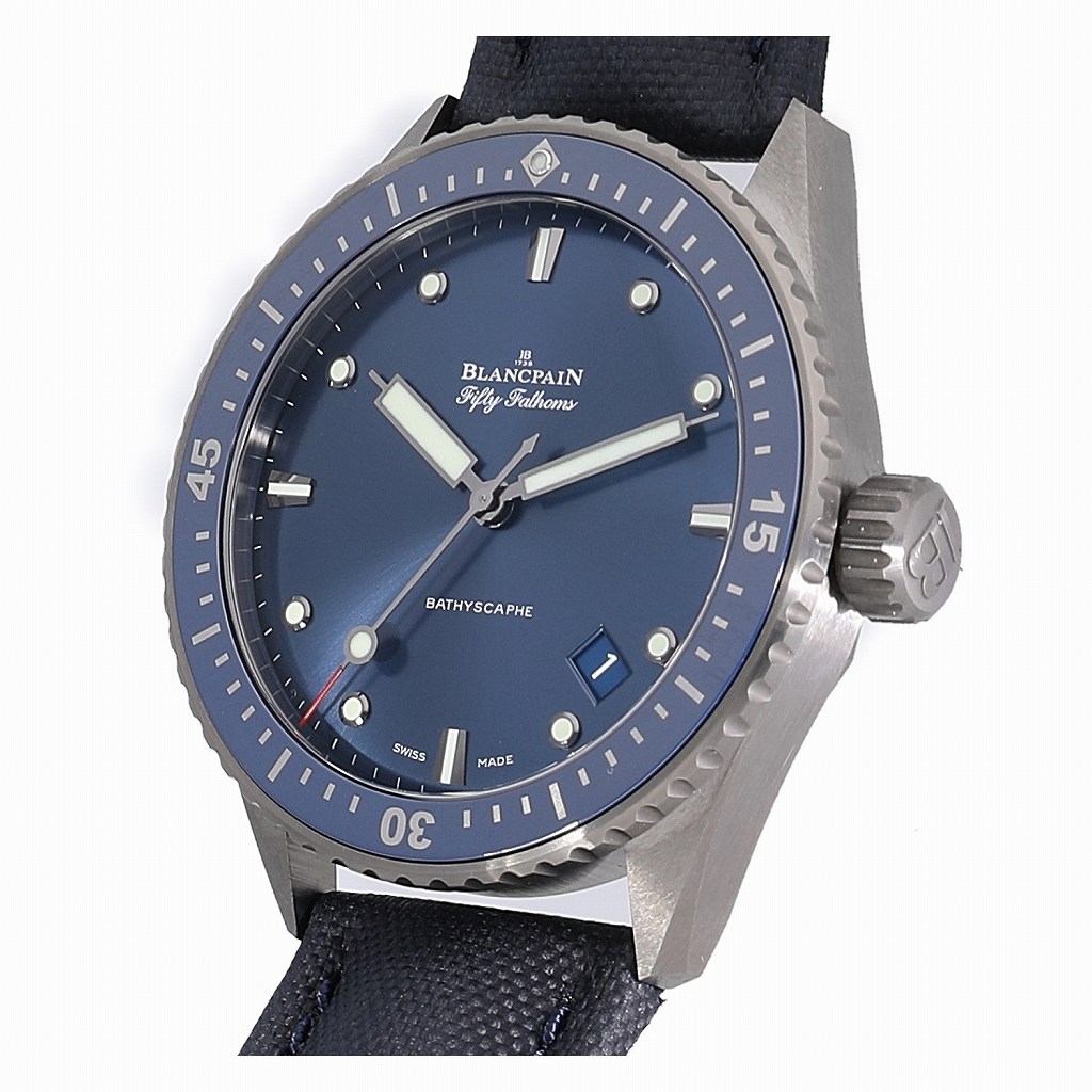 | モデルについて / Features | 現存する時計ブランドの中で、世界最古の歴史を誇るのブランパン。ブランパンのダイバーズウォッチの歴史は、1953年にフランス海軍の潜水部隊向けに”フィフティーファゾムズ”を作った事に始まります。近年人気のあるセラミック素材を使用するなど、モダンなデザインのダイバーズウォッチに仕上がりました。バチスカーフとは小型の深海探査艇の名前、ファゾムとは古英語で【両手を一杯に伸ばした腕】という意味の”fathm”に由来し、1ファゾムズは平均的な成人男性の腕の幅である約1.8mになります。 |