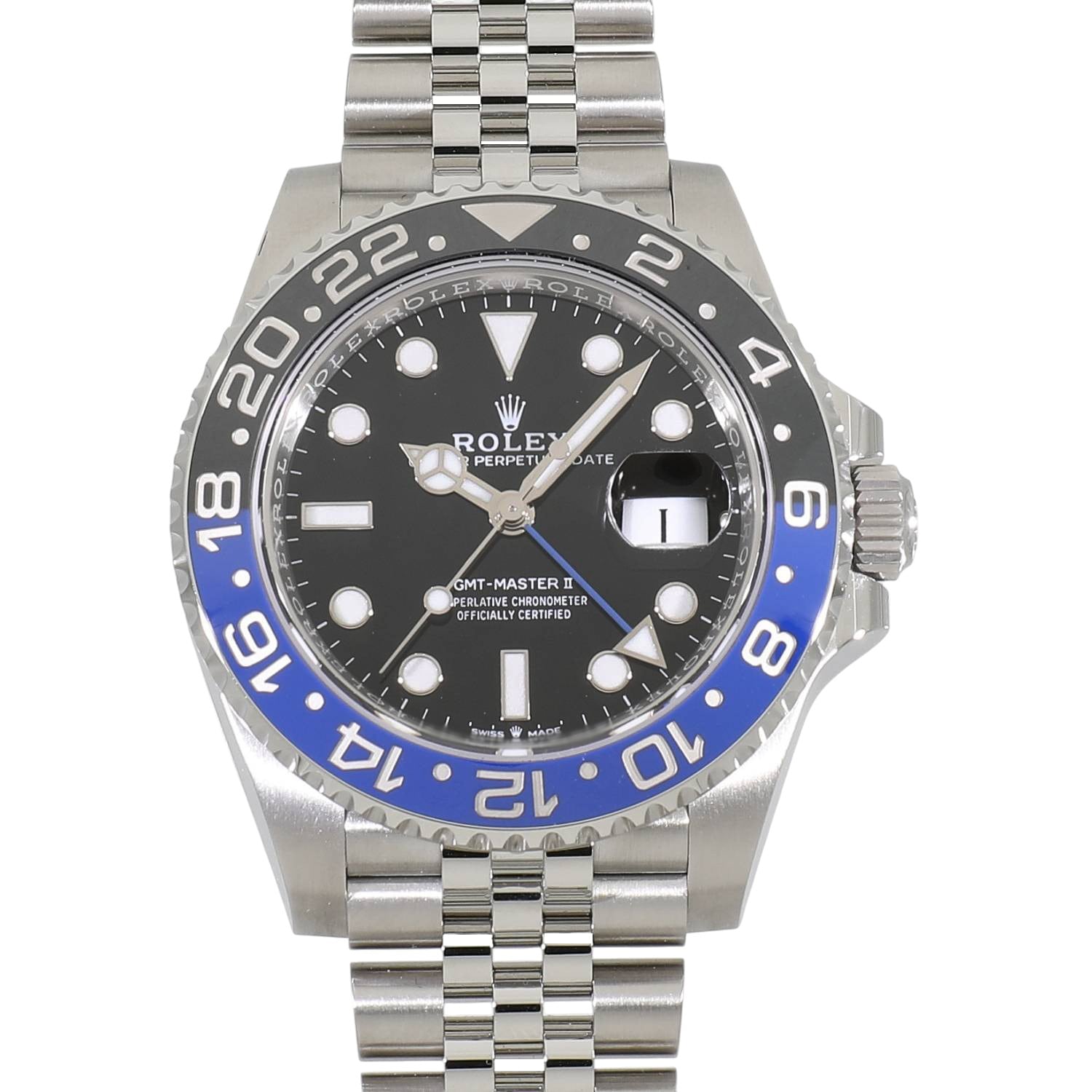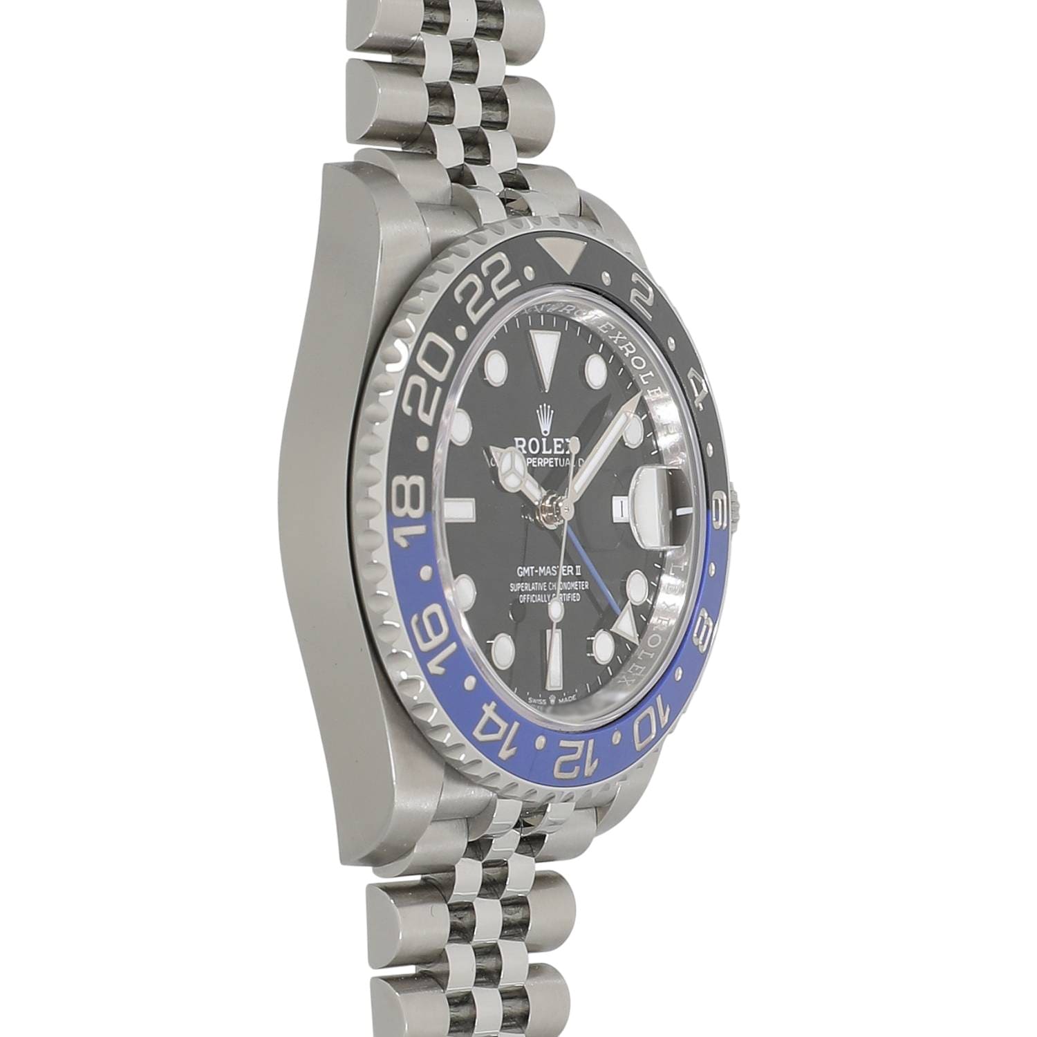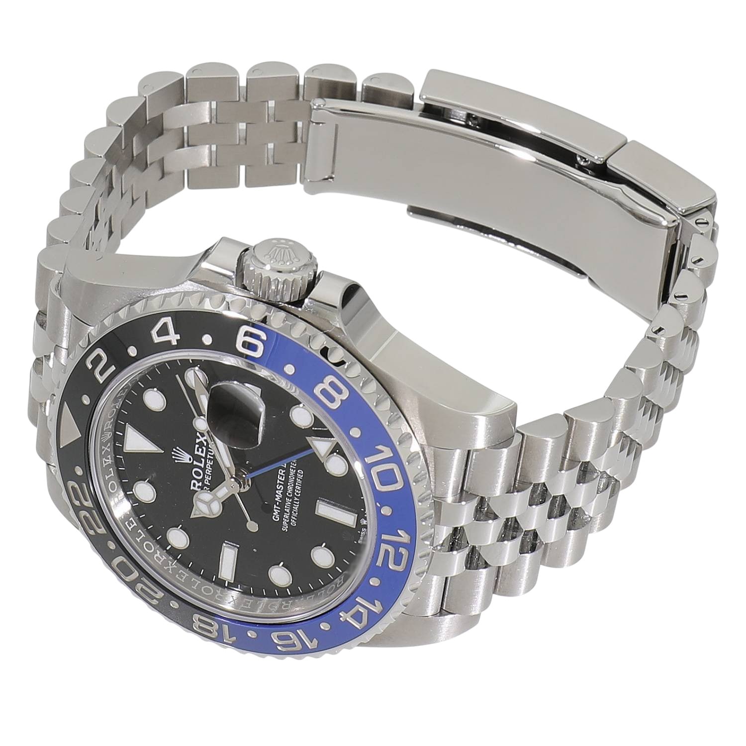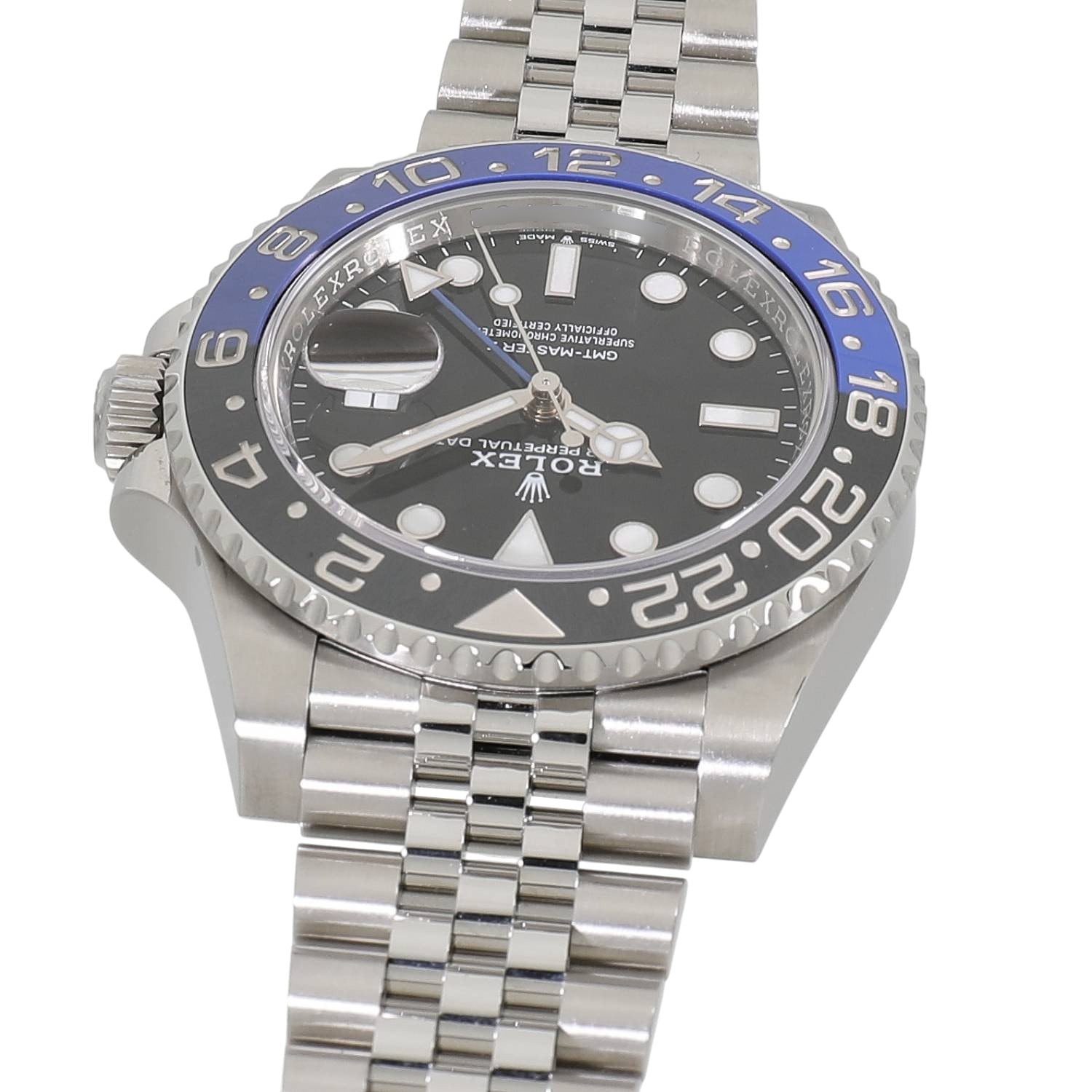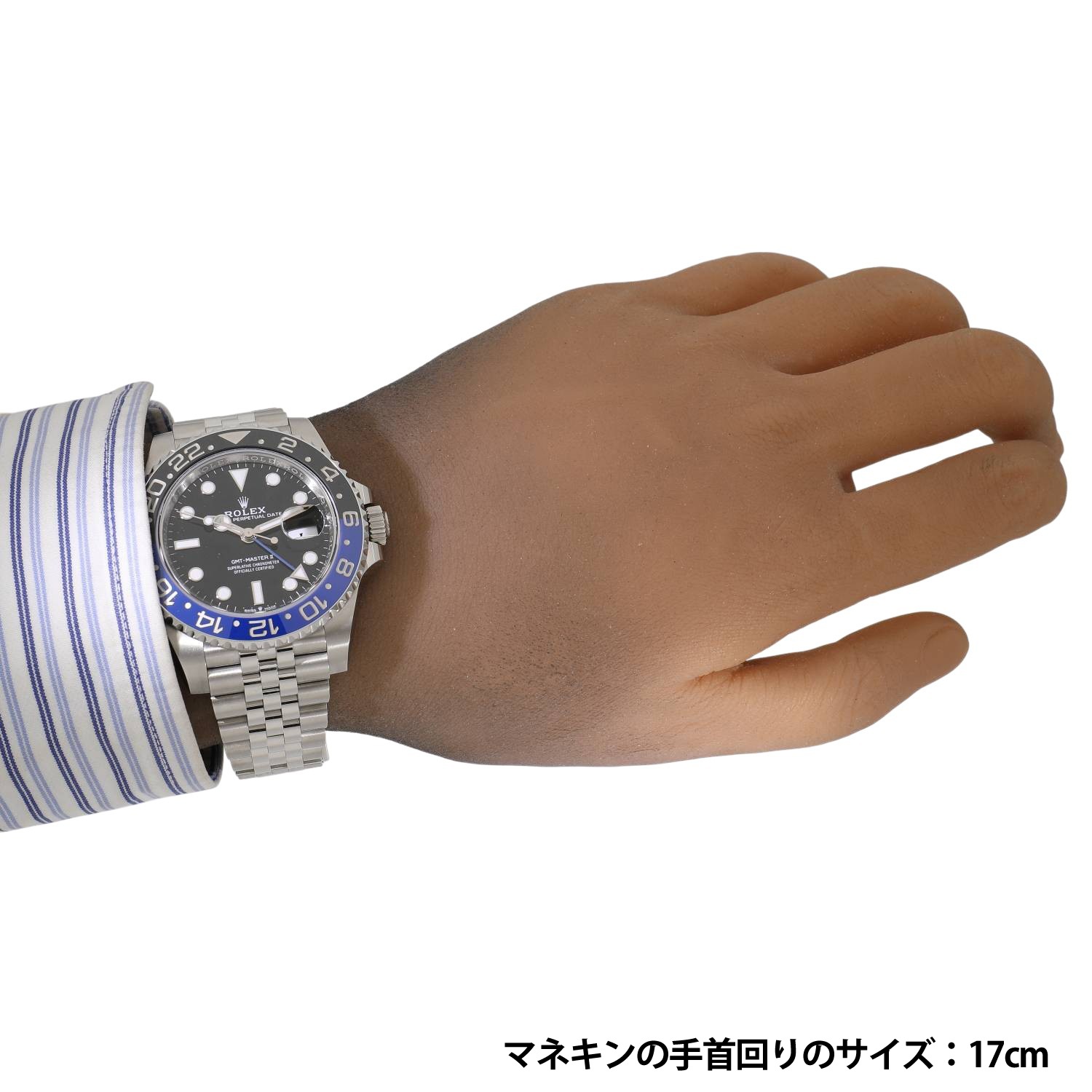 | モデルについて / Features | 2019年の新作 2019年のバーゼルワールドで発表された新型GMTマスターII。通称バットマンとも呼ばれ、前型の116710BLNRでも高い人気を誇るブルーとブラックの2トーンベゼルが特徴です。新型では3列のオイスターブレスレットから、5列のジュビリーブレスレットへと変更されました。またCal.3285はパワーリザーブを70時間へ延長されています。 |