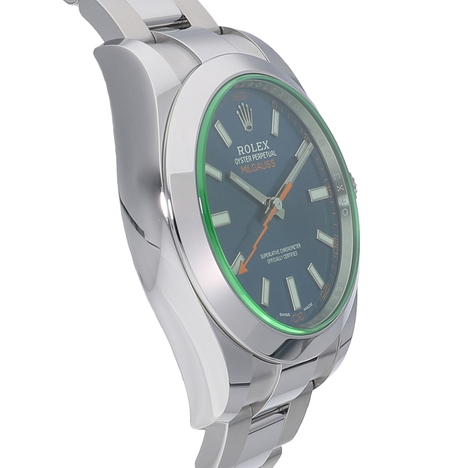 | モデルについて / Features | ミルガウスは1000ガウスの耐磁性能を備えており、1956年に誕生したRef.6541が始まりです。116400は2007年に発表された復刻モデルで4タイプで展開。この116400GVは発表当時としては珍しかった、グリーンに彩られたサファイアガラスを採用し注目を集めました。Zブルーは2014年に新色として発表され、グリーンのガラスとブルー文字盤の組み合わせは、なんとも形容できない綺麗な色合いに仕上がっています。1122 |