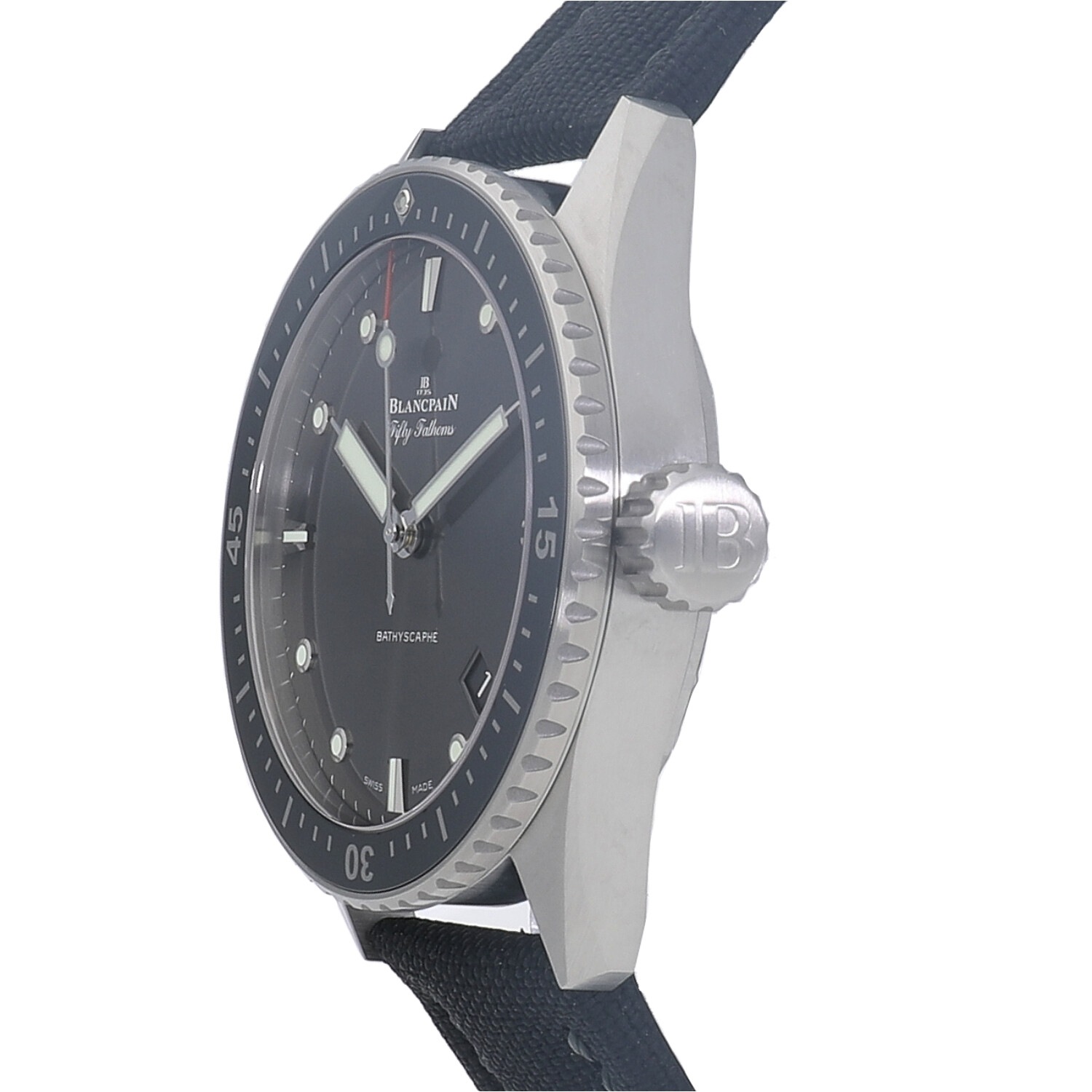 | モデルについて / Features | 現存する時計ブランドの中で、世界最古の歴史を誇るのブランパン。ブランパンのダイバーズウォッチの歴史は、1953年にフランス海軍の潜水部隊向けに”フィフティーファゾムズ”を作った事に始まります。近年人気のあるセラミック素材を使用するなど、モダンなデザインのダイバーズウォッチに仕上がりました。バチスカーフとは小型の深海探査艇の名前、ファゾムとは古英語で【両手を一杯に伸ばした腕】という意味の”fathoms”に由来し、1ファゾムズは平均的な成人男性の腕の幅である約1.8mになります。 |