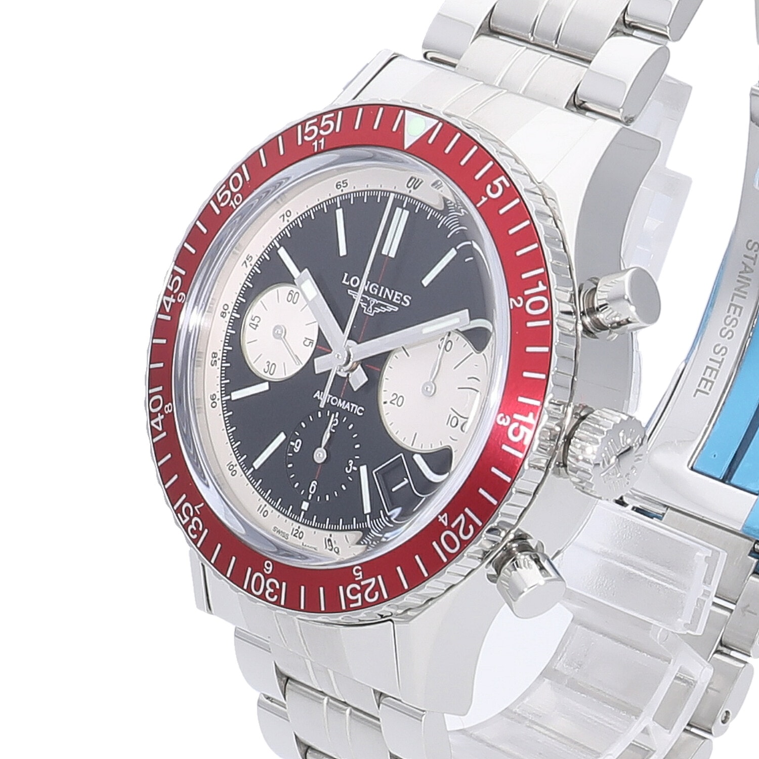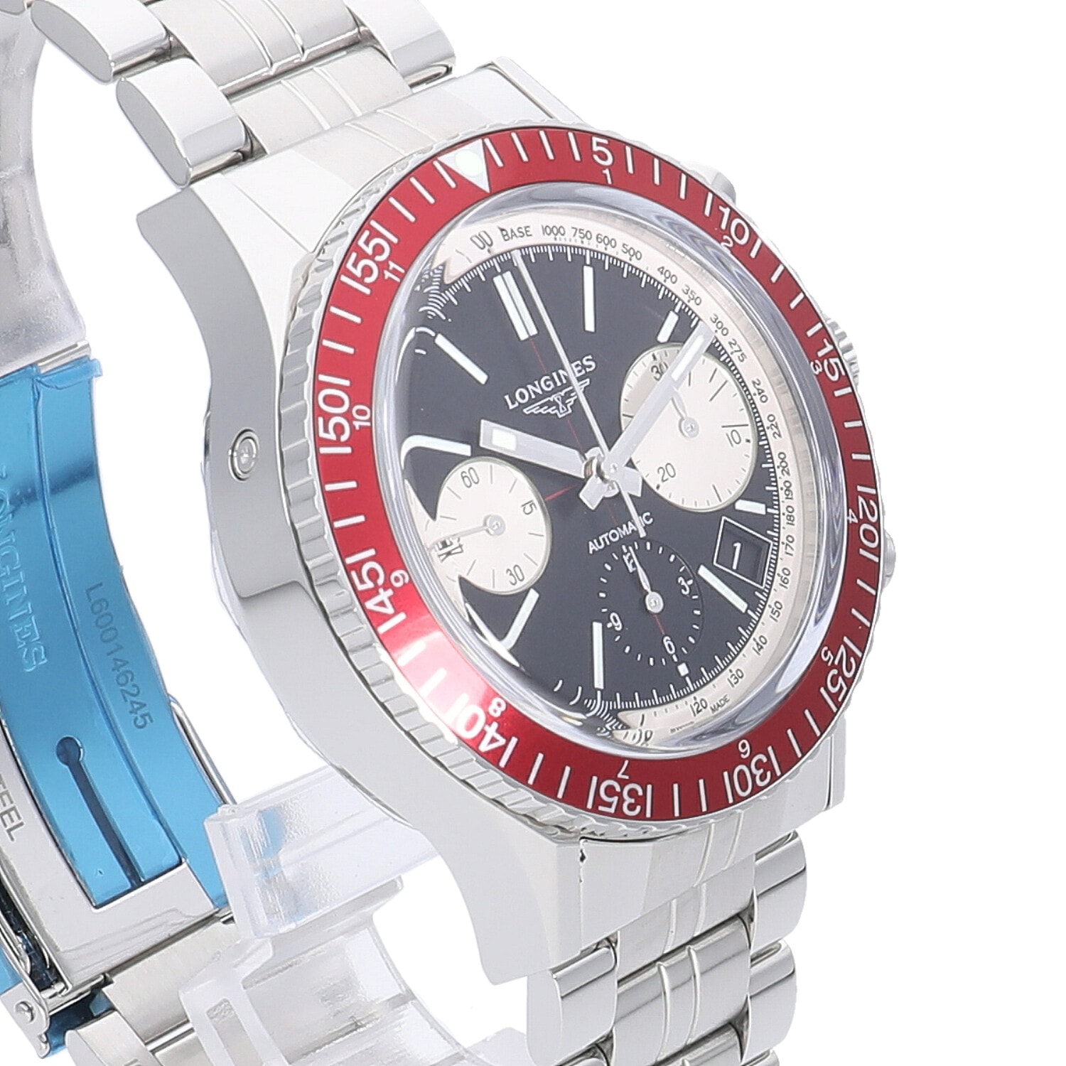 | モデルについて / Features | 1967年のダイバーズウォッチをモチーフに2015年に復刻した、300メートルの防水性を有するクロノグラフモデル。緩やかなカーブを描く風防を採用する事で、よりヴィンテージ感を醸し出しているのが特徴。ブラックをベースにシルバーのインダイヤルとタキメータースケールの組み合わせと、一見すると2カウンタークロノグラフに見えますが、6時位置にはブラックの12時間計が配されています。ヴィンテージを演出しながらもバーガンディーカラーのベゼルを採用する事で、モダンさも感じさせるスタイリッシュなモデルに仕上がっています。 |