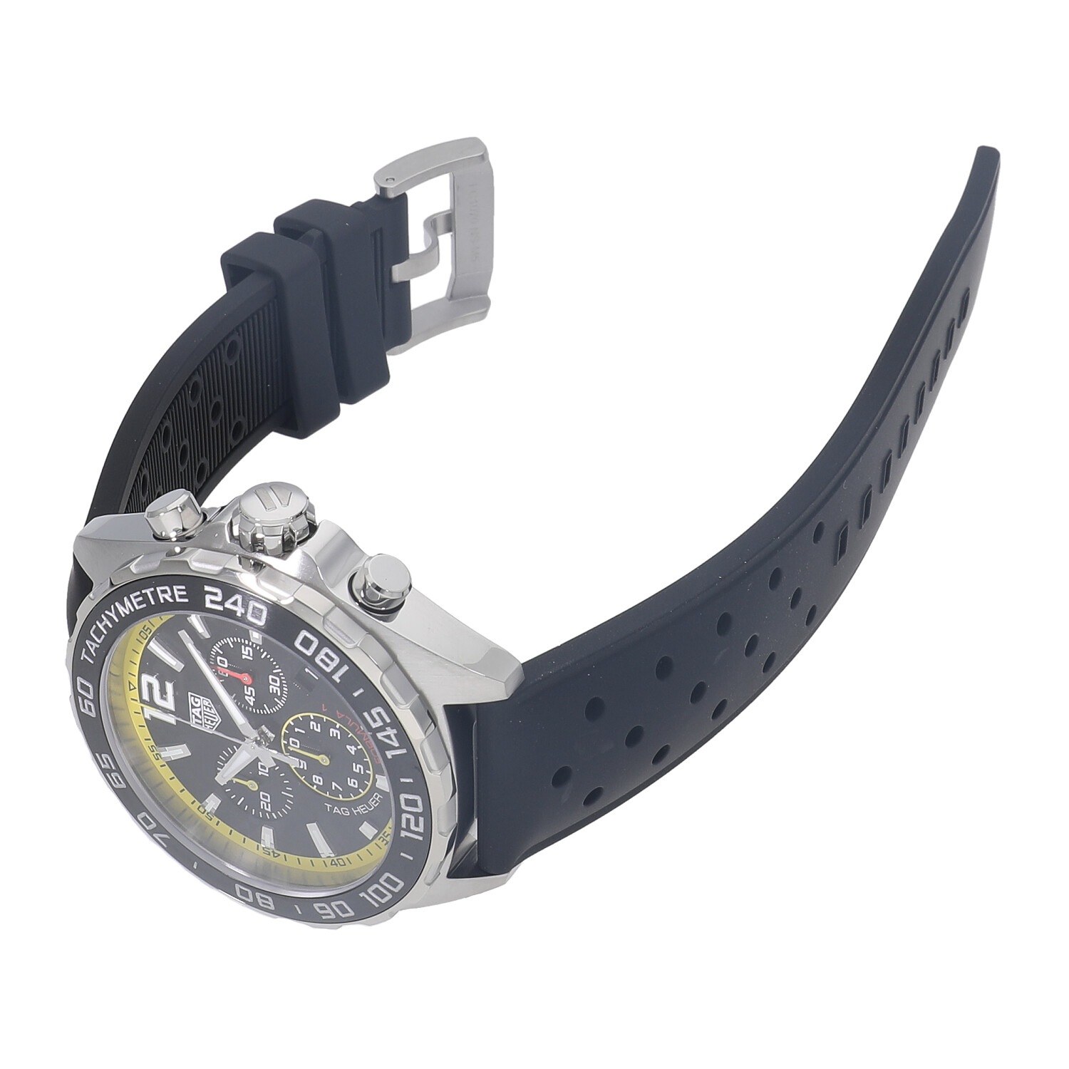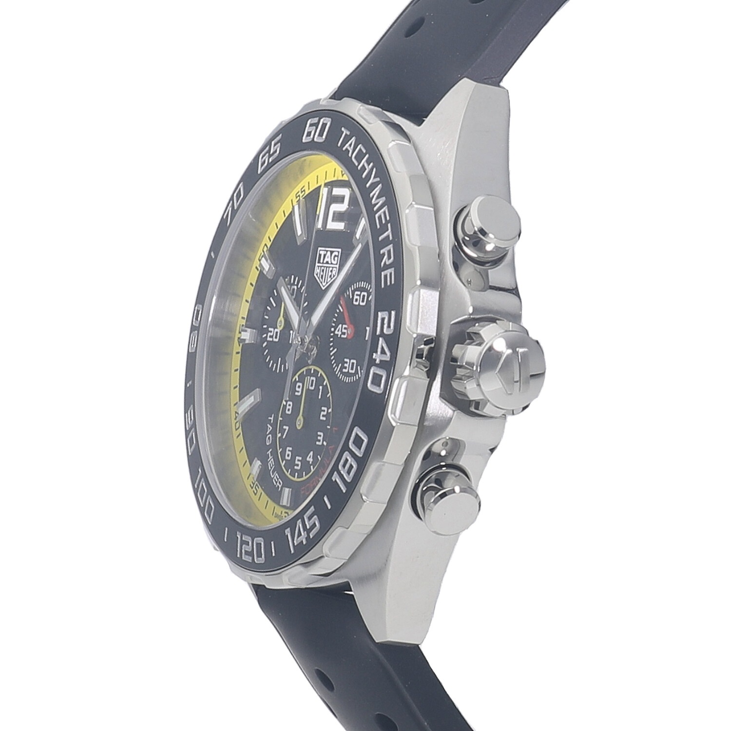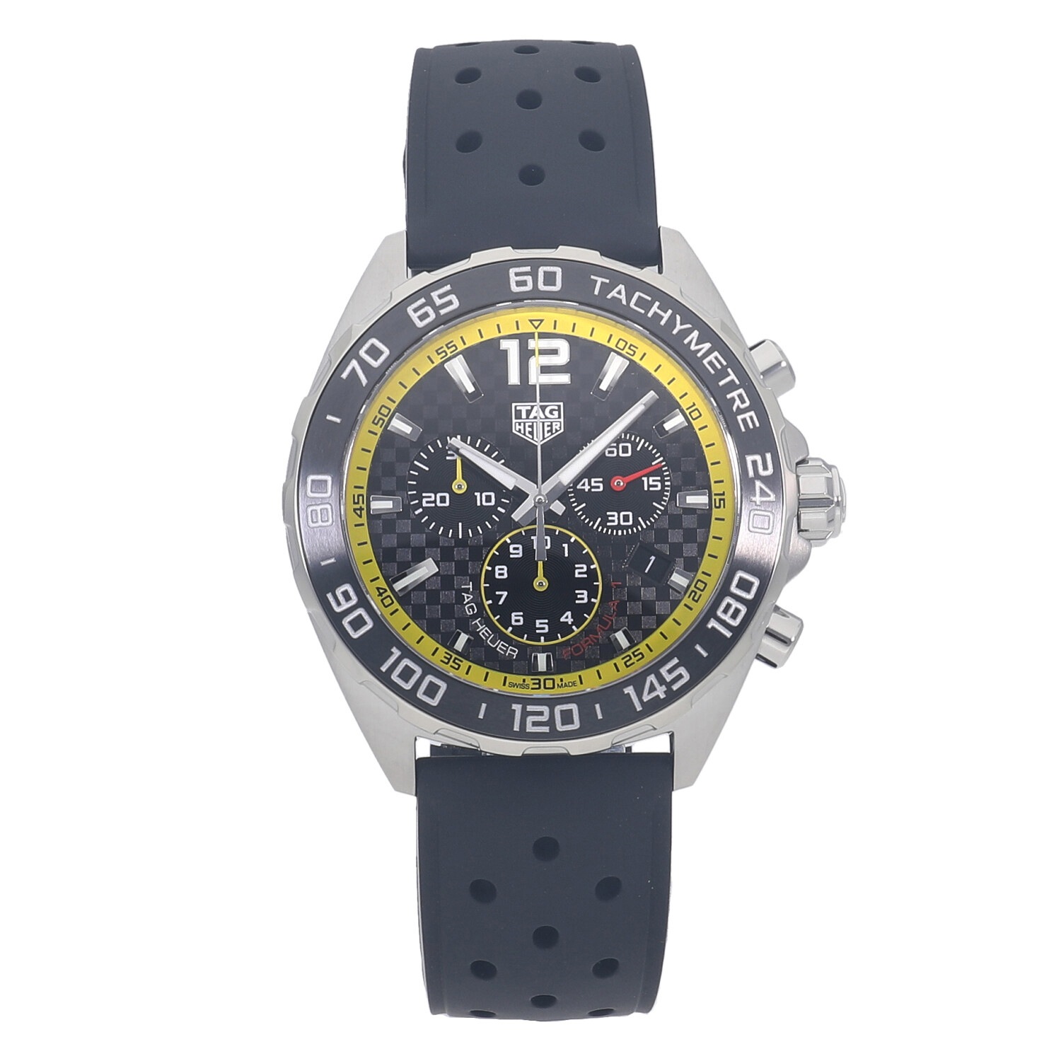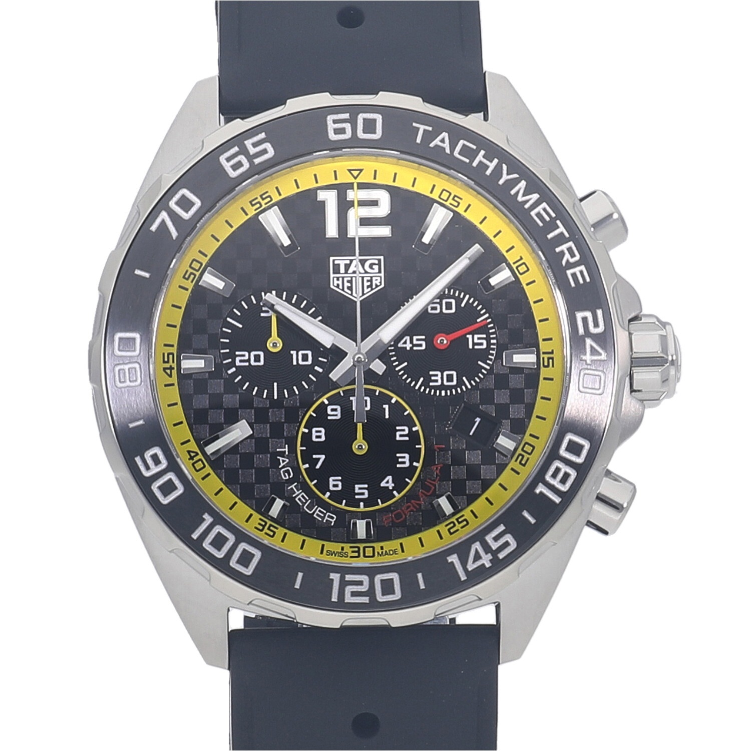| モデルについて / Features | 2020年の新作 モータースポーツとの繋がりの深いタグホイヤー。カーレースの最高峰であるフォーミュラー1の名を冠するコレクション。タグホイヤーの中でもエントリーゾーンのプライスレンジが多く展開される人気のコレクションです。カーボン調のテクスチャ加工が施されたブラックダイヤルにイエローのミニッツトラックが映えるスポーティーなモデルです。 |