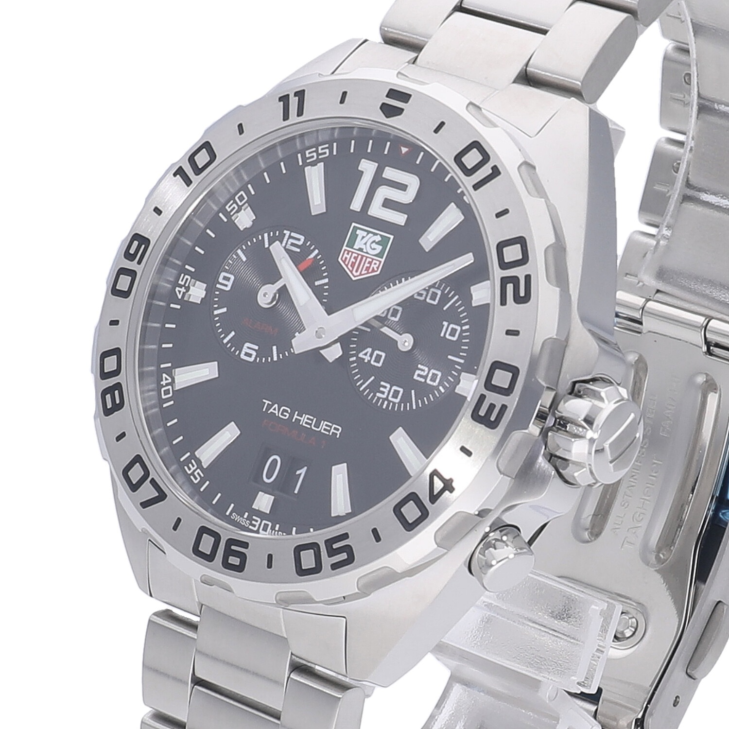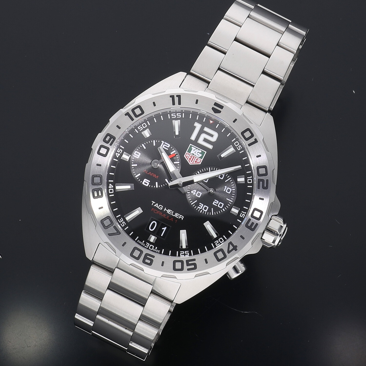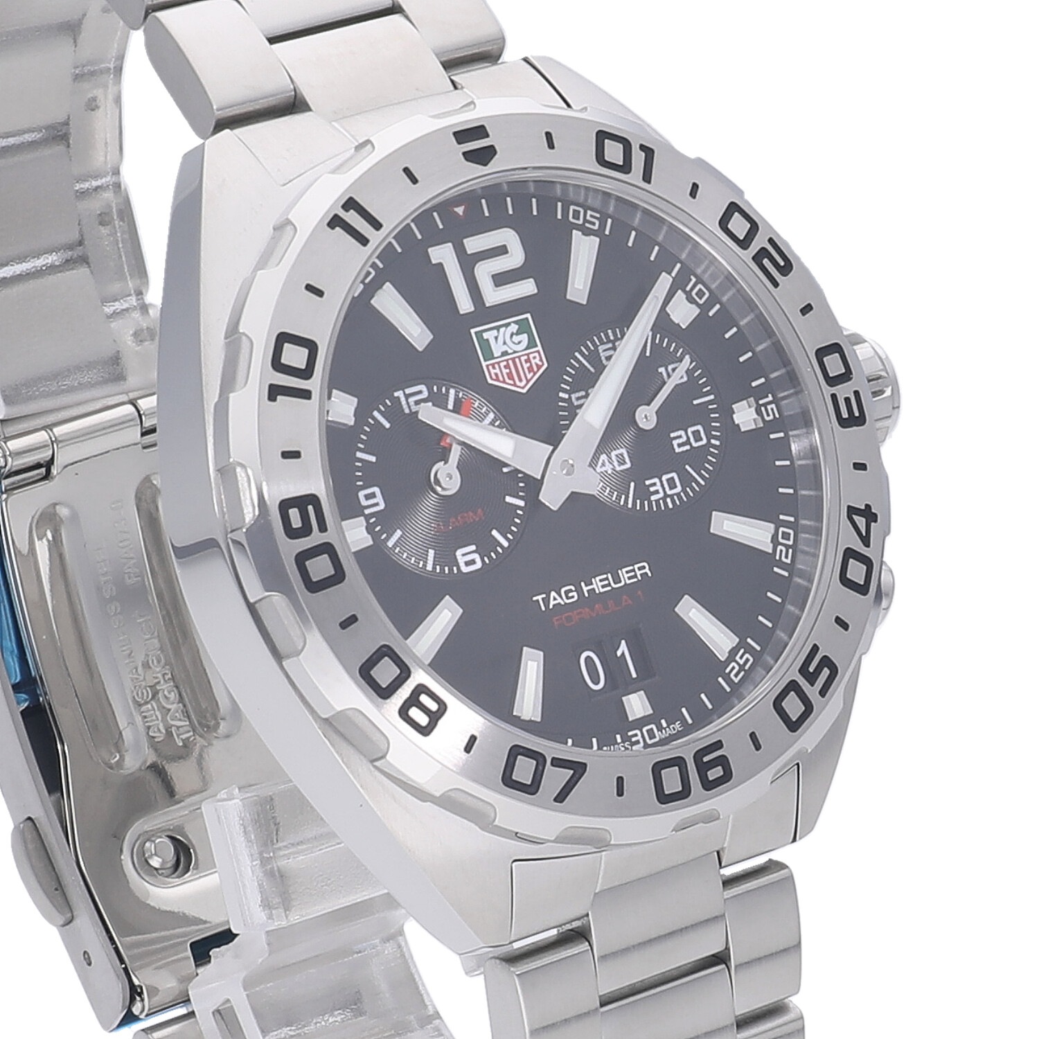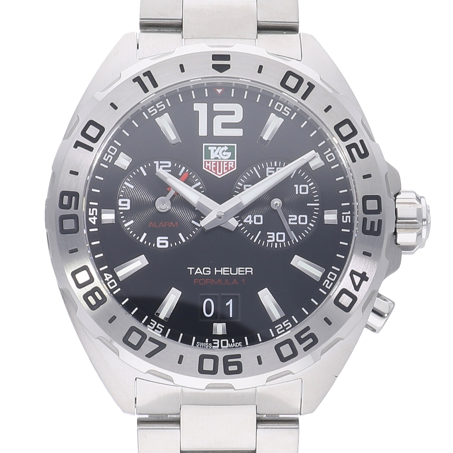 | モデルについて / Features | モータースポーツとの繋がりの深いタグホイヤー。カーレースの最高峰であるフォーミュラー1の名を冠するコレクション。タグホイヤーの中でもエントリーゾーンのプライスレンジが多く展開される人気のコレクションです。3時位置にはスモールセコンド、9時位置には任意で設定したアラーム時刻、6時位置にはアウトサイズデイト表示を備えています。 |