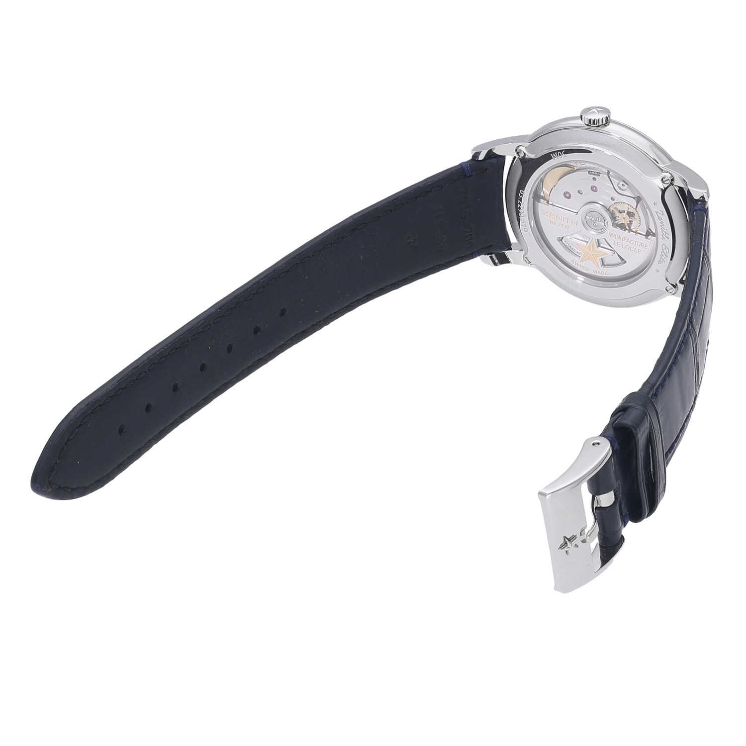 | モデルについて / Features | エルプリメロと並びゼニスが開発した、薄型の自動巻きムーブメント”エリート”を搭載しています。他社の人気モデルでも採用される信頼性の高いムーブメントです。シンプルな3針モデルでビジネスシーンで活躍するドレッシーなモデルです。バックスケルトン仕様ですので、ケースバックからは精緻で美しいエリートを堪能する事が出来ます。 |