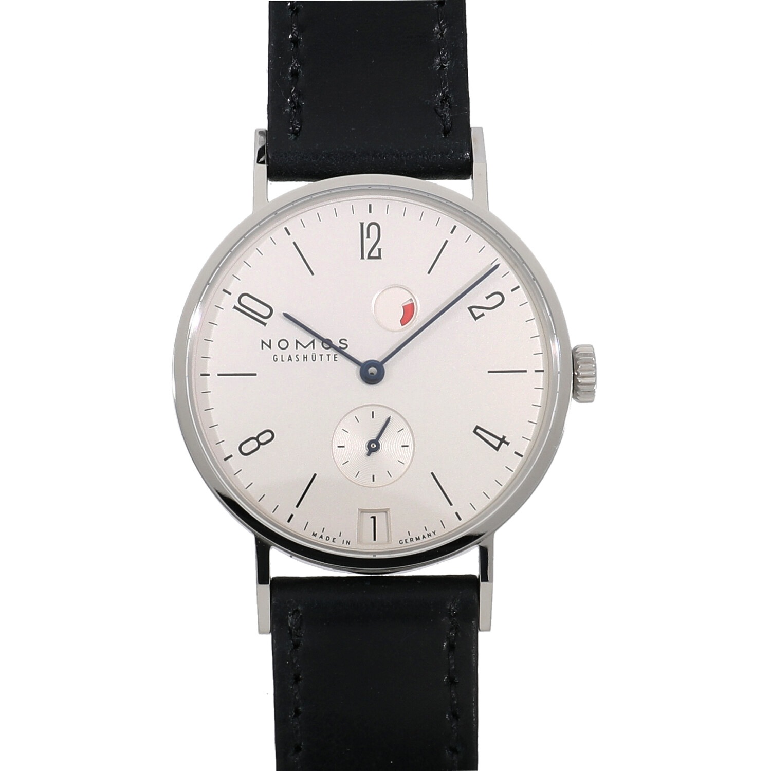 | モデルについて / Features | ドイツの時計製造の街として有名なグラスヒュッテに1990年に創業したノモス。ドイツ発祥のバウハウスの流れを組むデザインが特徴的で、極めてシンプルでありながら美しいモデルが多数展開されるブランドです。誕生以来数々のデザイン賞を受賞してきた、フラッグシップモデルでもありベストセラーでもあるのがこのタンジェントです。1時位置に有るパワーリザーブは、巻上量が多いとシルバー、巻上量が少ないと赤い表示が多くなります。6時位置には日付表示を備えます。 |