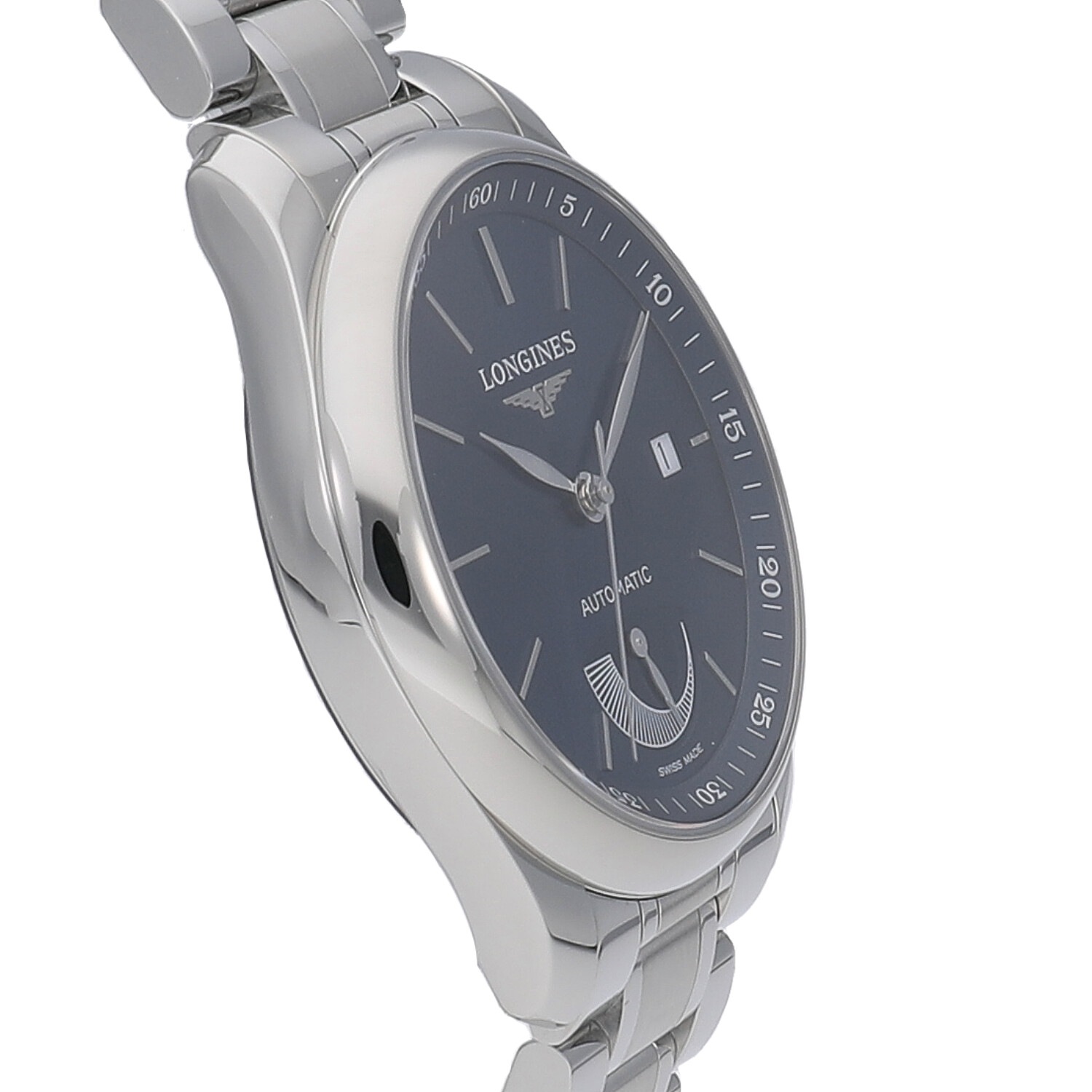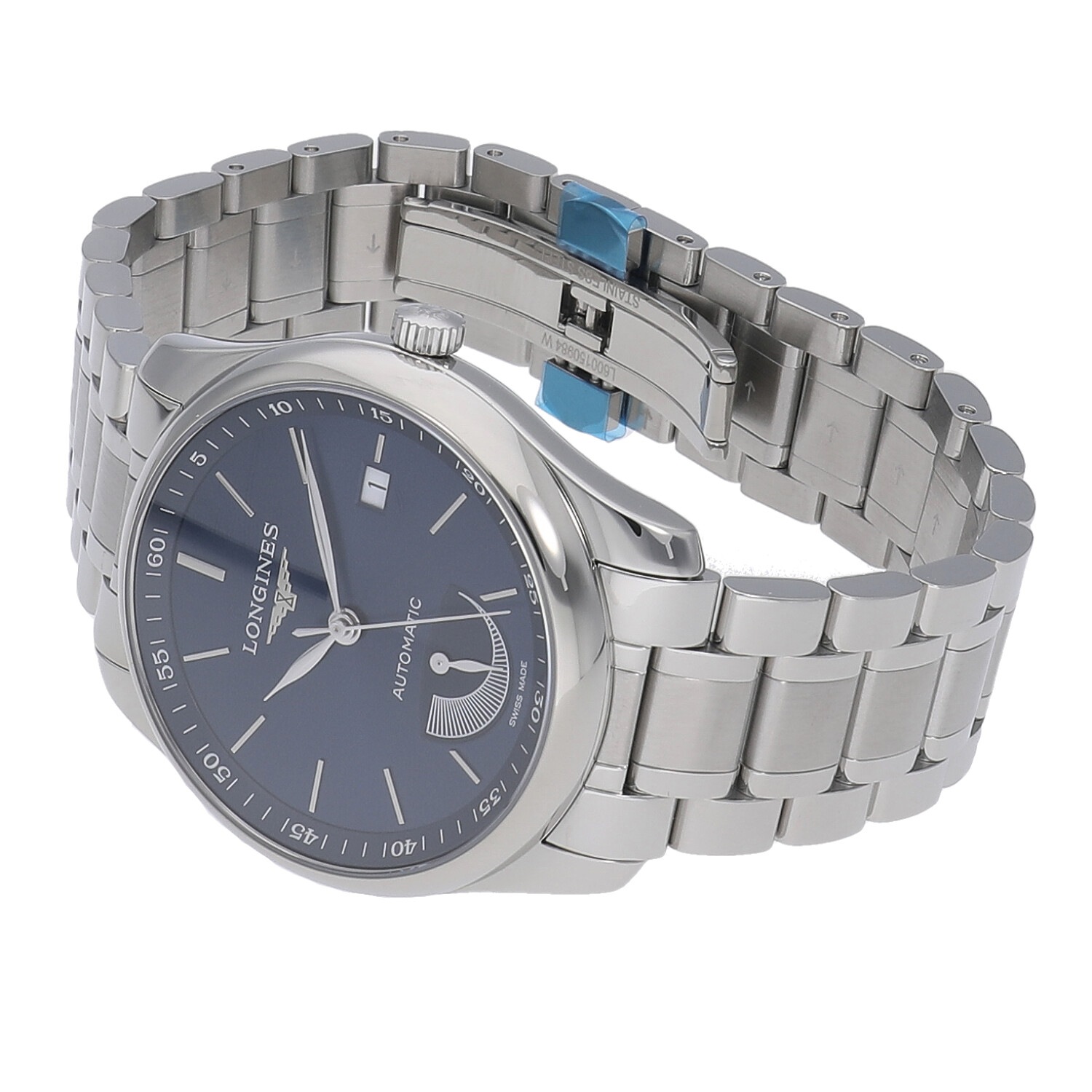 | モデルについて / Features | 2005年に発表された”マスターコレクション”。オーソドックスでクラシカルなデザインの中にエレガントさも併せ持つラインナップで人気です。3針とデイト表示のみとシンプルなモデルで、スーツなどにピッタリとハマるデザインが人気。光の加減で色目が変化するサンレイ仕上げのブルー文字盤が美しいモデルです。6時位置にはゼンマイの巻上残量が解る便利なパワーリザーブインジケーターを備えます。 |