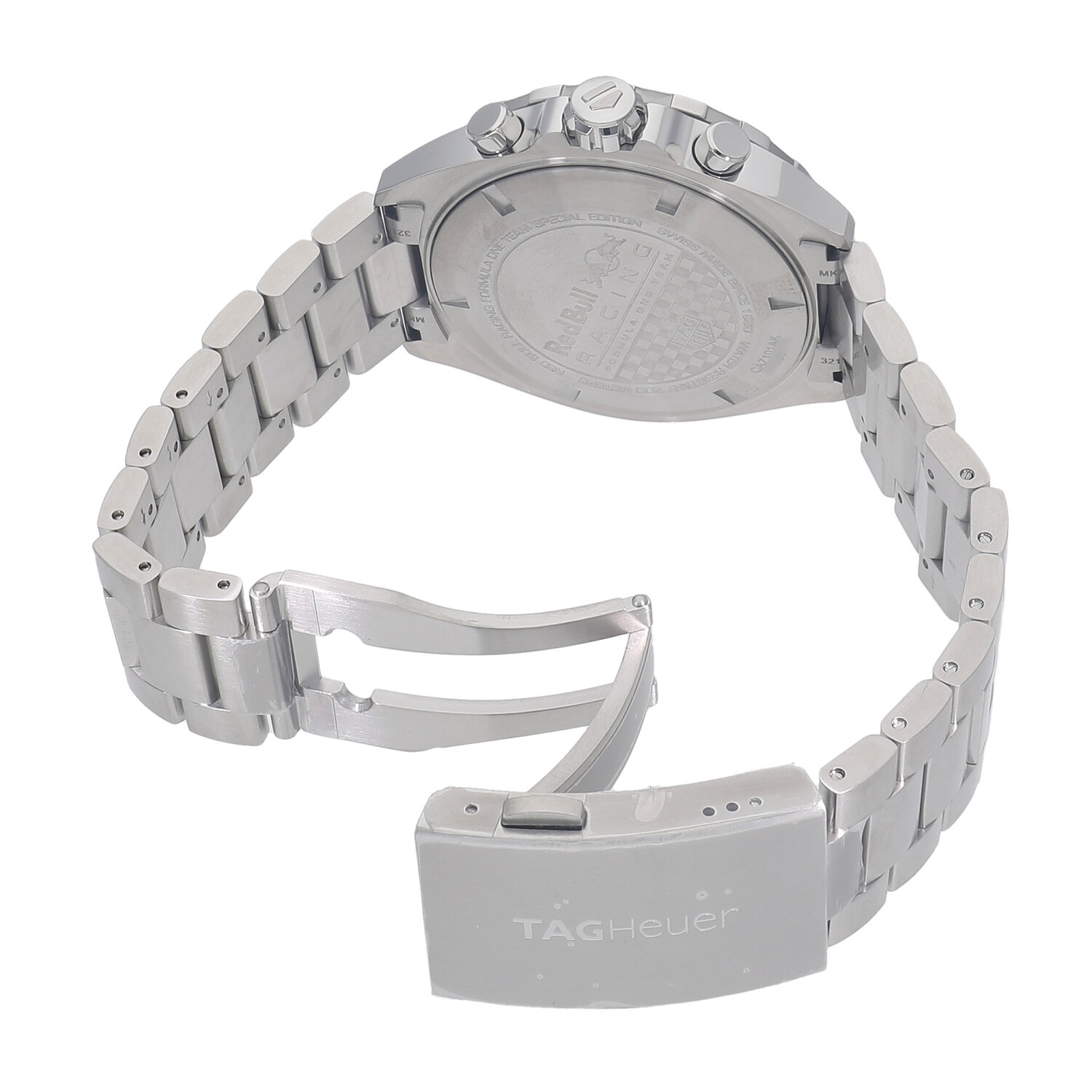 | モデルについて / Features | 2021年の新作 モータースポーツとの繋がりの深いタグホイヤー。カーレースの最高峰であるフォーミュラー1の名を冠するコレクション。F1のレッドブルレーシングの公式タイムキーパーなどのパートナーシップを行っており、同チームの名を冠した特別なモデルとなります。スペシャルエディションらしく、ベゼルや文字盤にはレッドブルカラーでもあるブルーやレッドを採用、ケースバックには同チームのロゴマークが刻印されています。アストンマーティンは独立したコンストラクターとなった為、裏蓋の刻印はレッドブルレーシングのみとなりました。 |