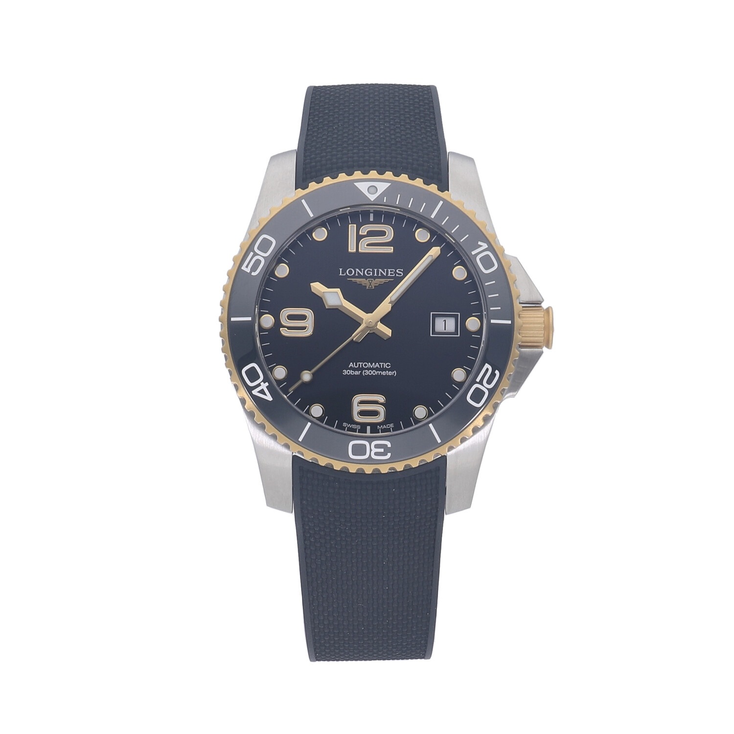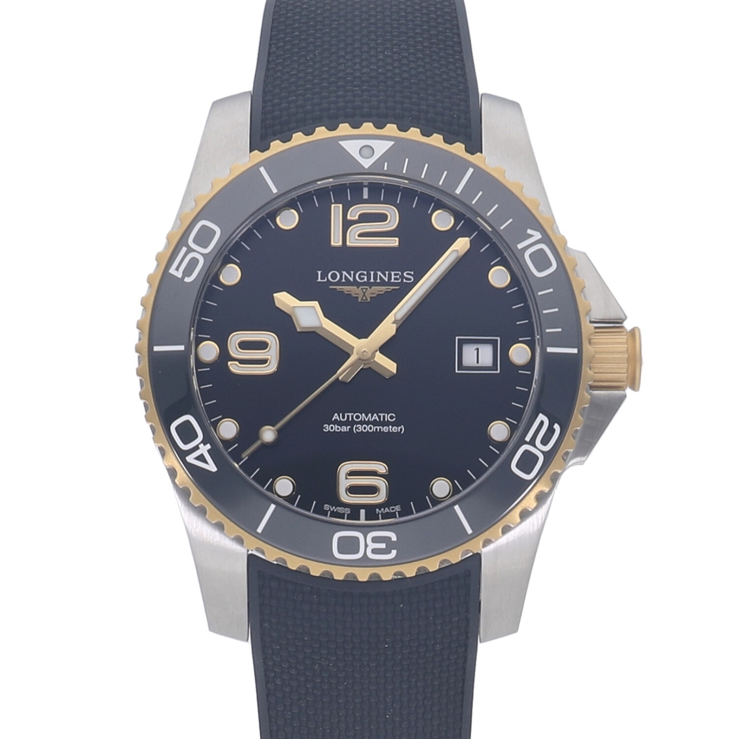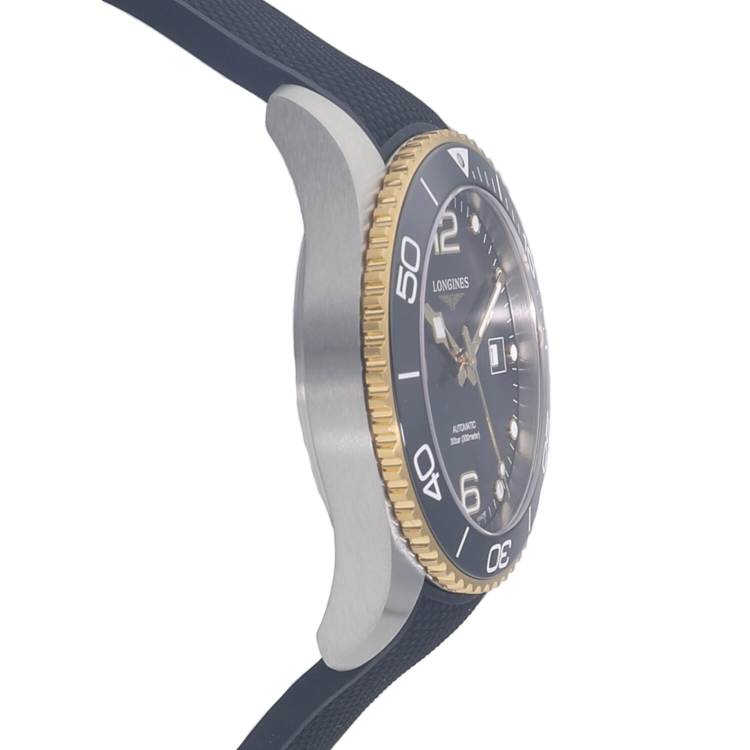 | モデルについて / Features | 2021年の新作 ロンジンのダイバーズウォッチコレクションとなる、ハイドロコンクエストシリーズ。”ダイビングの世界に色彩豊かなパフォーマンスを”がコンセプト。300メートル防水に、艶やかなセラミック製のベゼルを採用しています。ベゼル外周とリューズにはイエローゴールドPVDが施されており、スタイリッシュでありながら高級感のある本格的なダイバーズウォッチに仕上がっています。 |