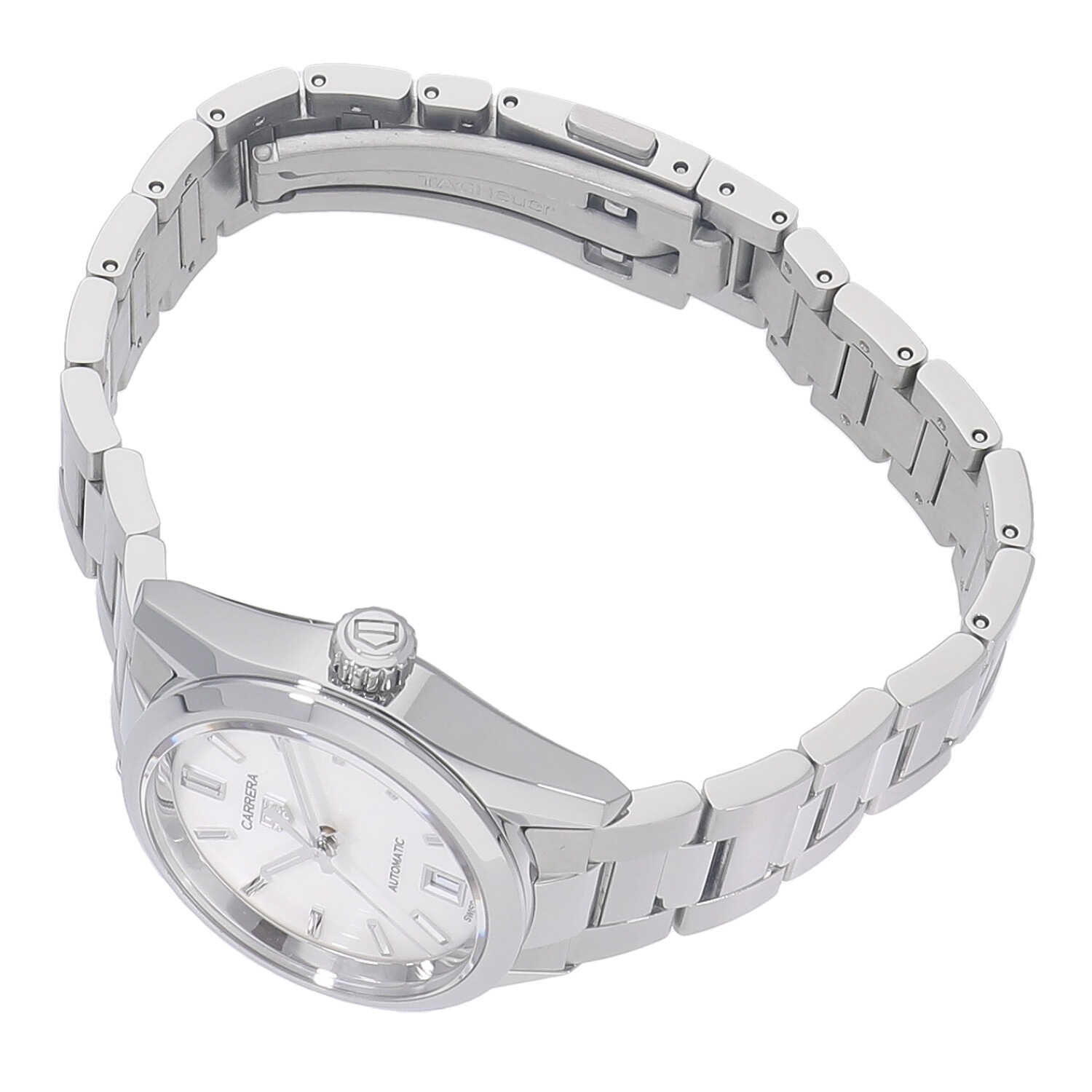 | モデルについて / Features | 2021年の新作 タグホイヤーの中でも人気の高いカレラ。シンプルでタイムレスなデザインに、自動巻き式のキャリバー9を搭載するレディースウォッチです。文字盤にはホワイトのマザーオブパールを採用したエレガントなモデルです。 |