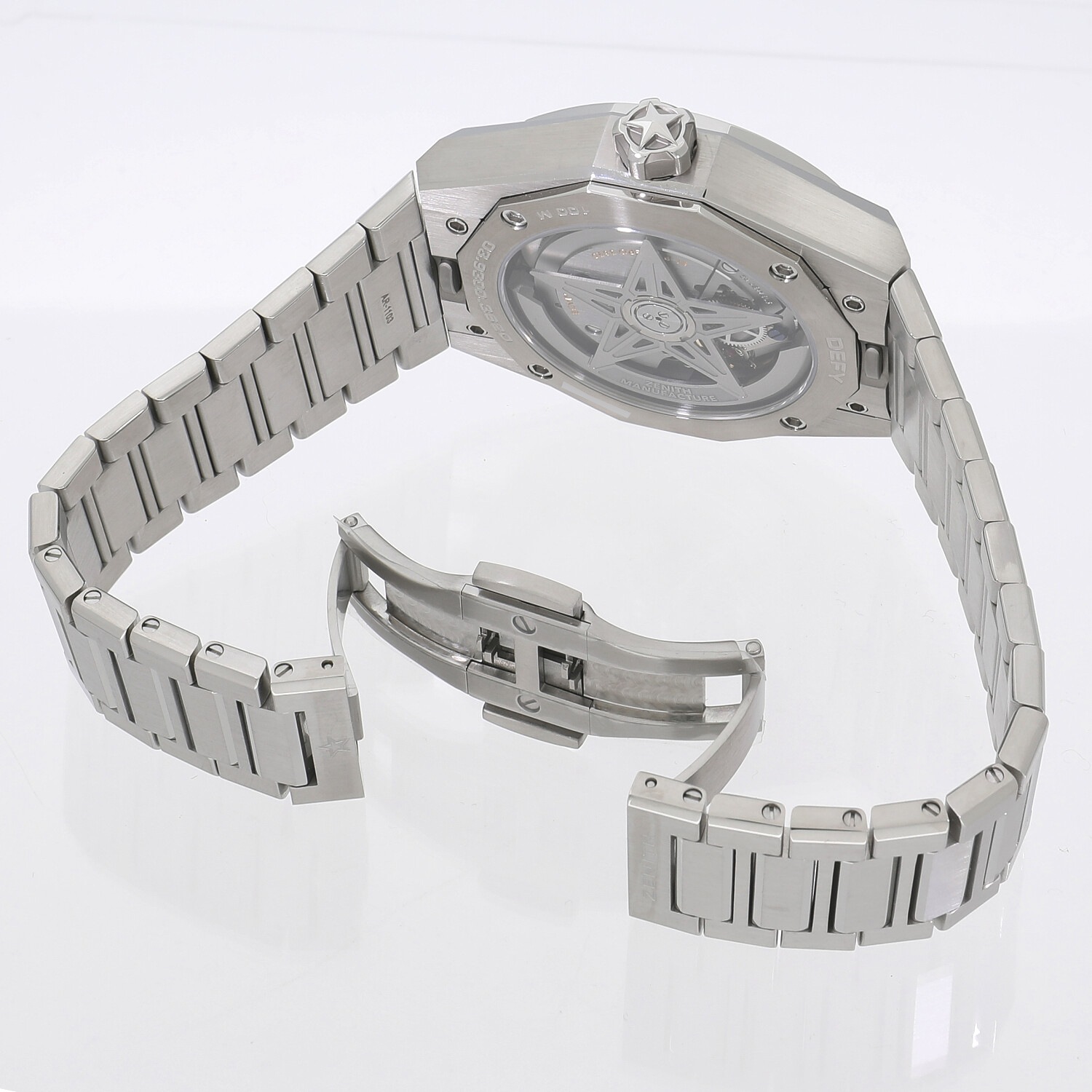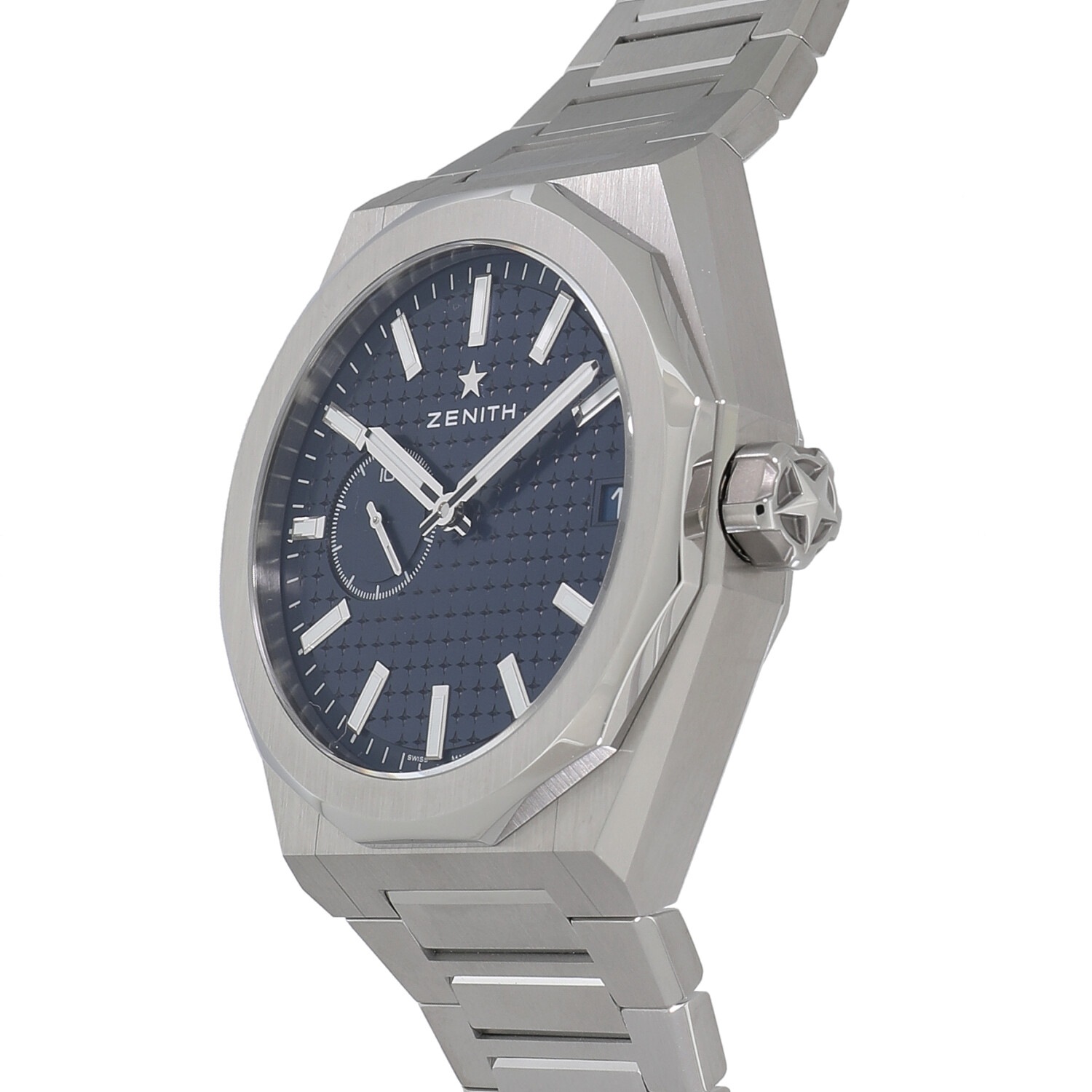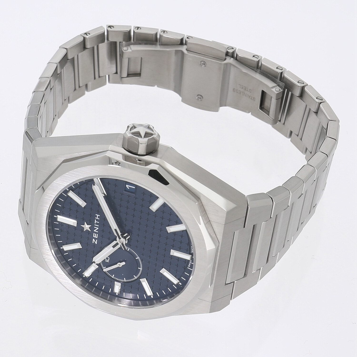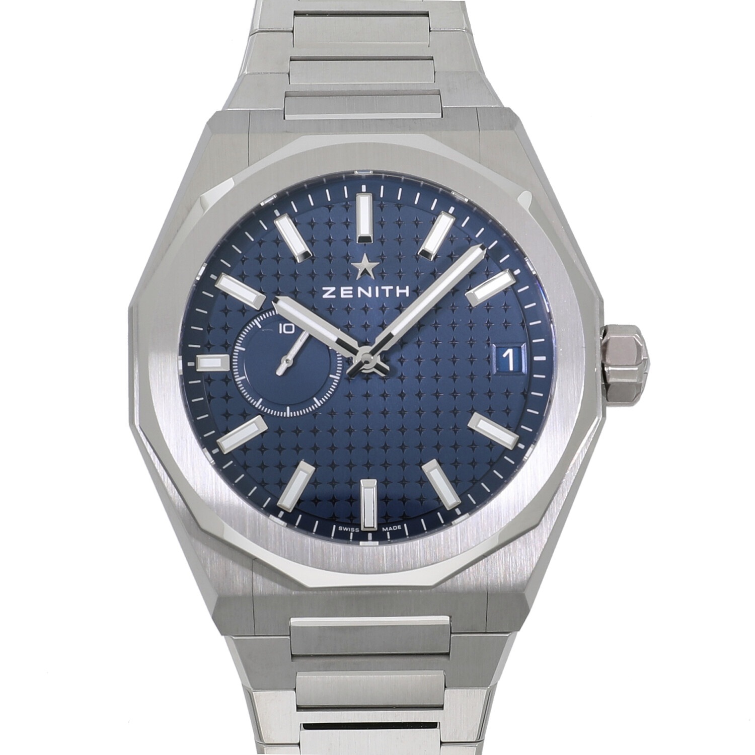 | モデルについて / Features | 2022年の新作 2018年に発表された「デファイ」に、新しく「デファイ スカイライン」が加わりました。8角形のファセットカットベゼルに、薄く滑らかな装着感のブレスレットを組み合わせており、昨今流行りのラグジュアリースポーツウォッチを彷彿とさせるデザインです。文字盤はゼニスの象徴でもある4つの点を結んだ星でデザイン。ムーブメントは約60時間のパワーリザーブを備える36000振動の自動巻きキャリバー3620を搭載し、9時位置のスモールセコンドは1/10秒を計測する事が出来ます。 |