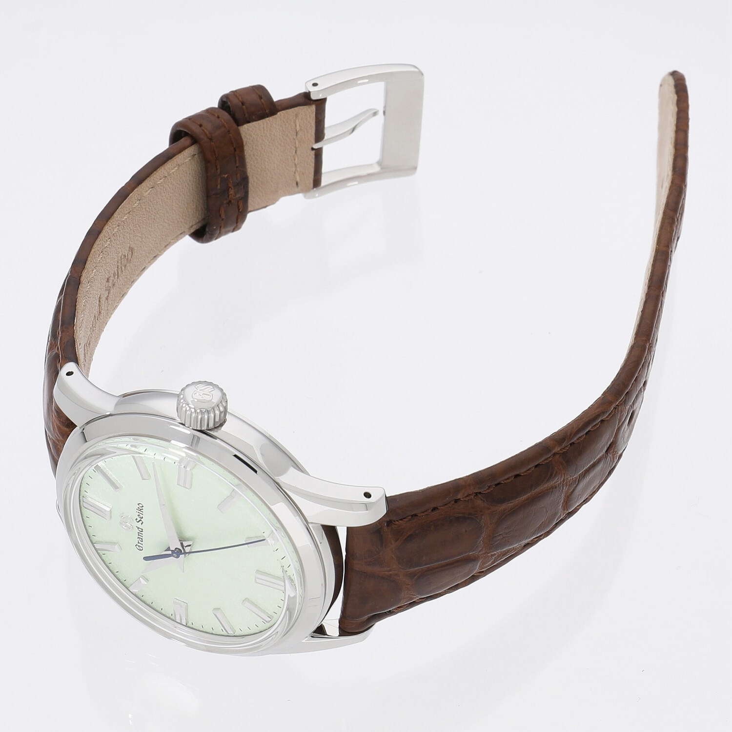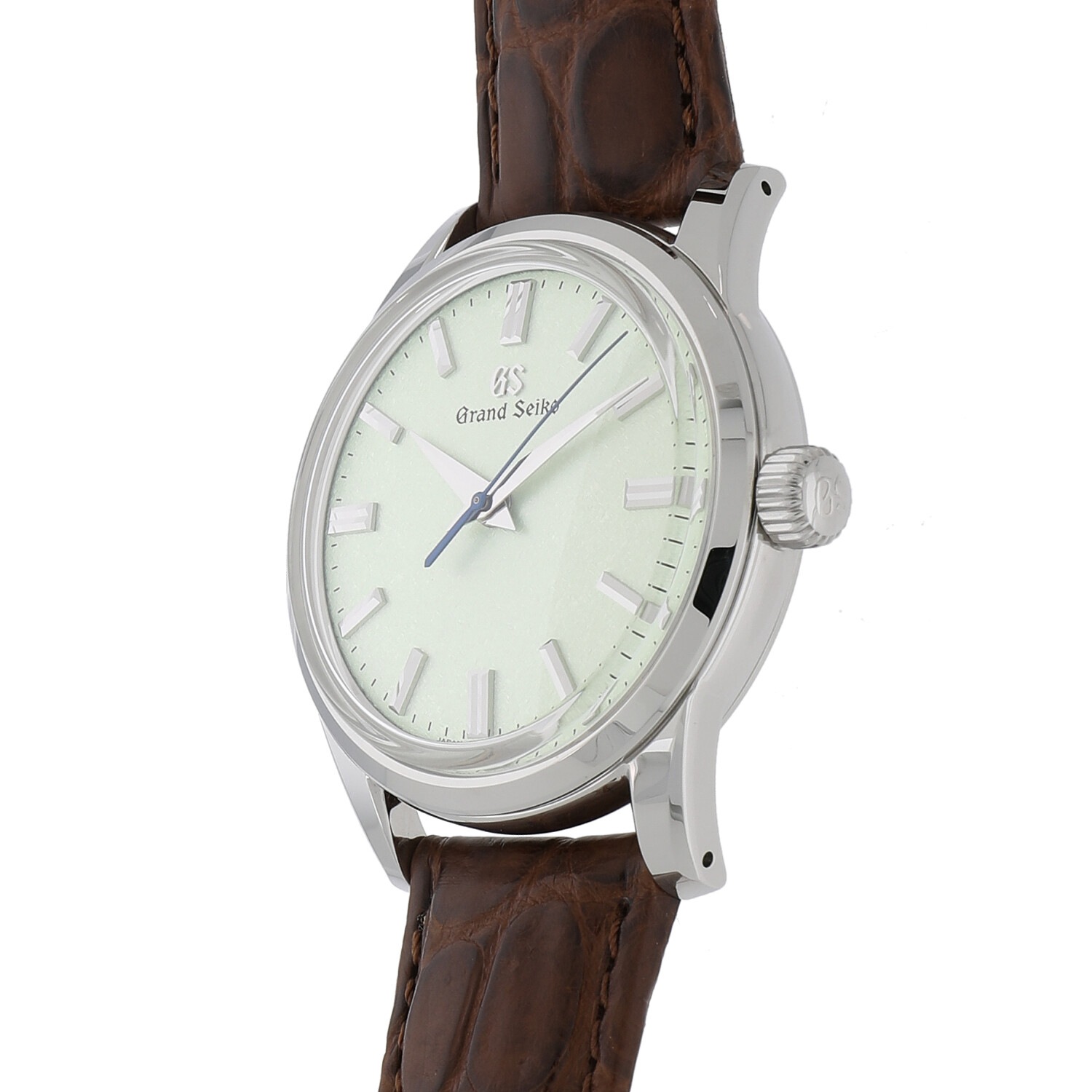 | 商品詳細 | 世界的に人気の高まりを見せるグランドセイコー。手巻き式の9S64を搭載しミニマル且つエレガント、ボックス型サファイアガラスでクラシカルな趣も感じられるデザインが人気のSBGW231などをベースに開発。特にGS人気の高い北米市場で展開された140本限定モデルです。雲母摺(きらずり)と呼ばれる浮世絵版画の技法にインスピレーションを受けて施されたダイヤルの仕上げが目を惹きます。岩手県の厳美渓をイメージしたグリーンカラーは、濃淡の違いで3種類ラインナップされています。 |
