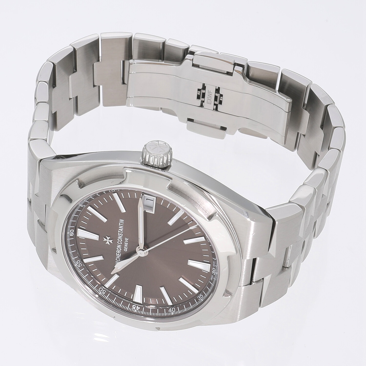| モデルについて / Features | ヴァシュロンコンスタンタンが誇るラグジュアリースポーツウォッチ『オーヴァーシーズ』。こちらのモデルは3針とデイトのみのシンプルな機能と、ベゼルやバックルリューズなど至るところに入ったマルタ十字が特徴的です。艶やかなブラウン文字盤は上品で落ち着いた雰囲気を放っています。ブレスレットは工具なしで簡単に付け替えられるようになっているため、その日の気分や服装に合わせて楽しむことができます。 |