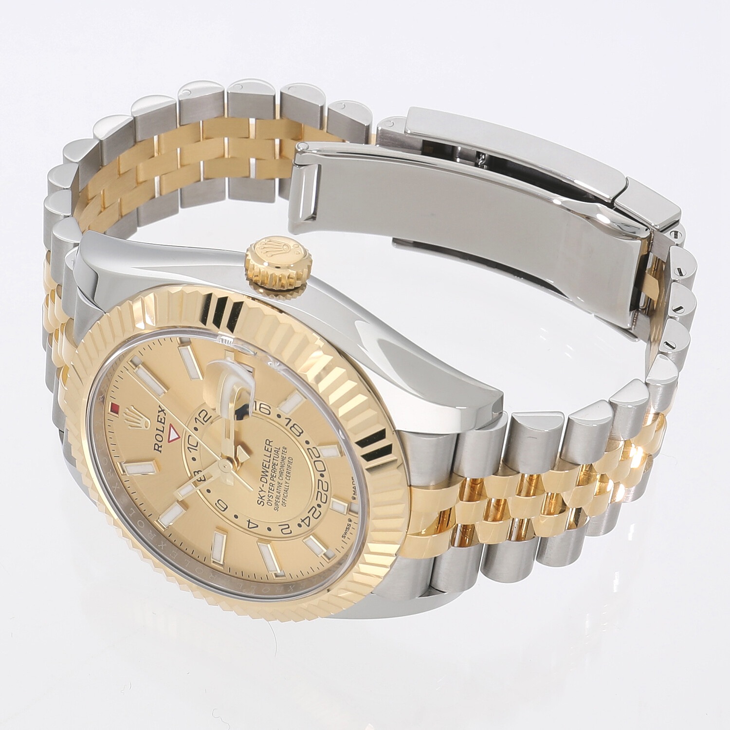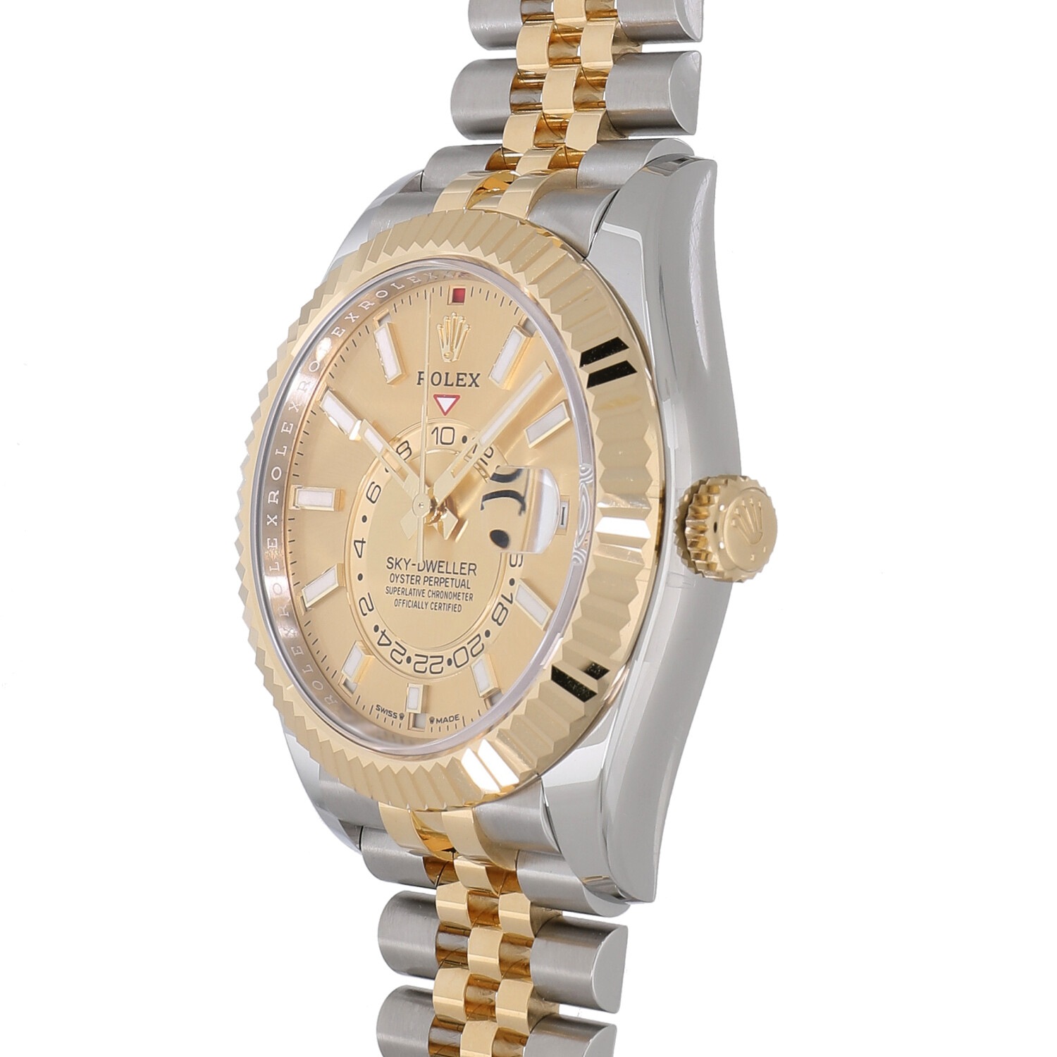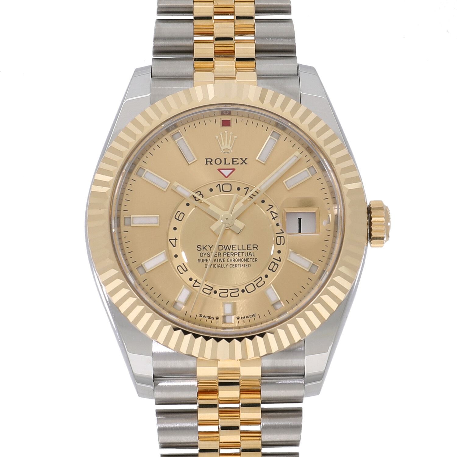 | モデルについて / Features | 2023年の新作 2012年に発表されたスカイドゥエラー。ロレックスの全く新しいコレクションとしては、約20年ぶりとされています。通常の時分針に加え年次カレンダー(アニュアルカレンダー)と6時位置のインダイヤルにはデュアルタイムを備え、ロレックスとしては珍しい複雑機能を備えるコンプリケーションモデル。年次カレンダーとは、3月1日のみ手動での日付調整が必要で、その他の大小の月は自動的に表示してくれます。ドレッシーさとスポーティーさを併せ持つ人気モデルです。こちらは新型Cal.9002を搭載した2023年の新作モデルとなります。 |