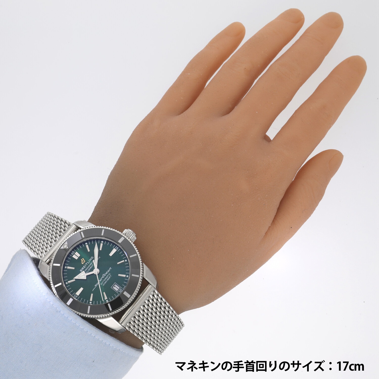 | モデルについて / Features | 2021年の新作 スーパーオーシャン ヘリテージは、その名の通り1950年代の初代スーパーオーシャンにインスパイアされ、初代のデザインを継承しながらも細かな部分のブラッシュアップを図ったニューモデルです。視認性が高くアイコニックな三角針や逆回転防止ベゼルなどを備えたダイバーズウォッチであり、ムーブメントはCOSC公認のクロノメーターであるB20が搭載されています。近年人気の高いグリーン文字盤がスマートな印象を感じさせます。 |