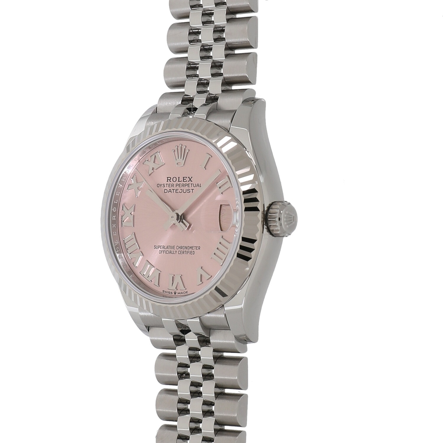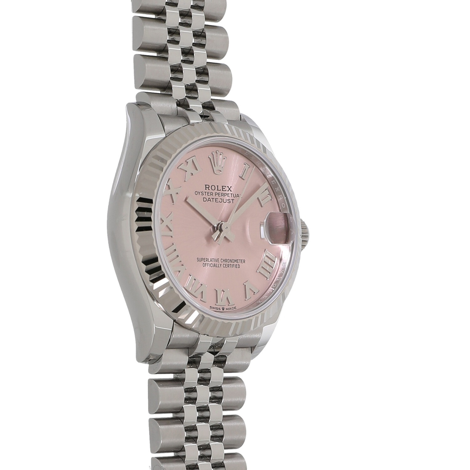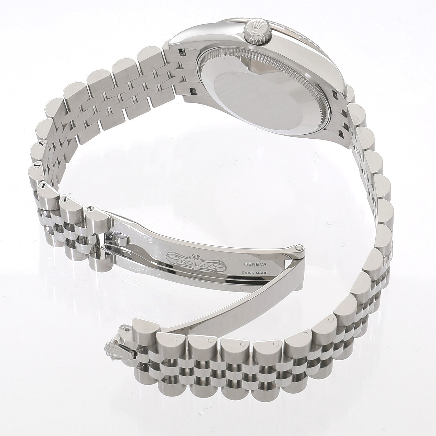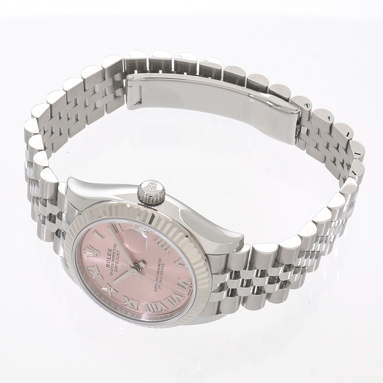 | モデルについて / Features | 1940年代に誕生したデイトジャスト。流行に左右されることのない普遍的なデザイン意匠は、いつの時代も女性の憧れの時計として高い人気を誇ります。光を取り込みキラキラと光る美しいカッティング加工が施されたホワイトゴールド製のフルーテッドベゼルが目を惹きます。ジュビリーブレスレットとの組み合わせが上品さと高級感を醸し出しています。55時間のパワーリザーブを誇り、より高精度となった新型キャリバー2236を搭載しています。 |