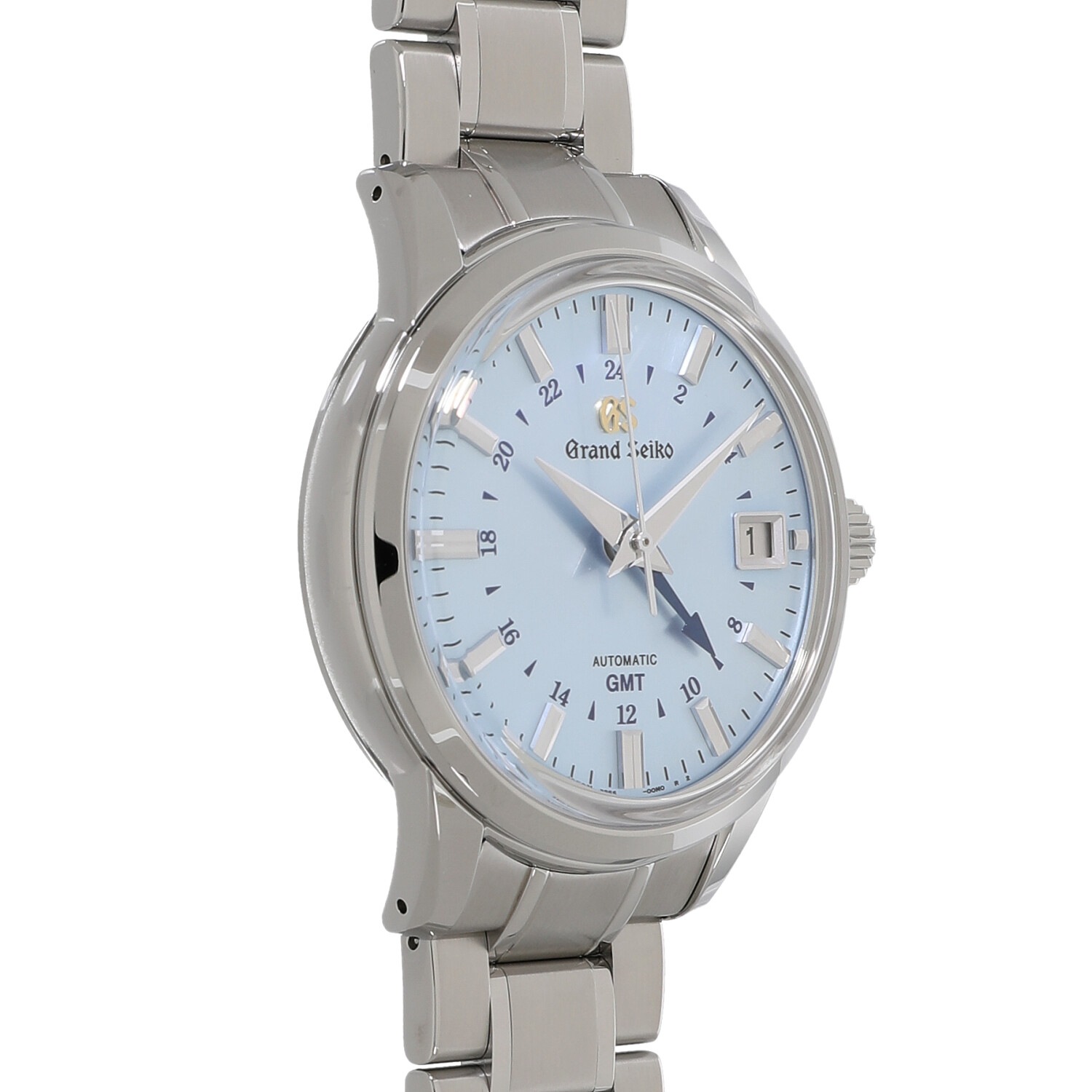 | モデルについて / Features | 2023年の新作 1960年に初代モデルが誕生し、世界に誇るメイドインジャパンの高級ウォッチブランドであるグランドセイコー。長らくクォーツのみで展開されていたグランドセイコーでしたが、キャリバー9Sの開発に成功したことで1998年にメカニカルのグランドセイコーが復活を遂げました。その9Sキャリバーの誕生20周年を記念し、世界1700本の限定・国内700本限定モデルとして発表されました。ブランド製造地「スタジオ 雫石」から望む岩手山の山頂から見上げる中天の情景を表現した、スカイブルーのダイヤルとボックス型のサファイヤガラス、ブルーのGMT針の組み合わせが、クラシックな趣ながらもモダンな雰囲気を醸し出しています。 |