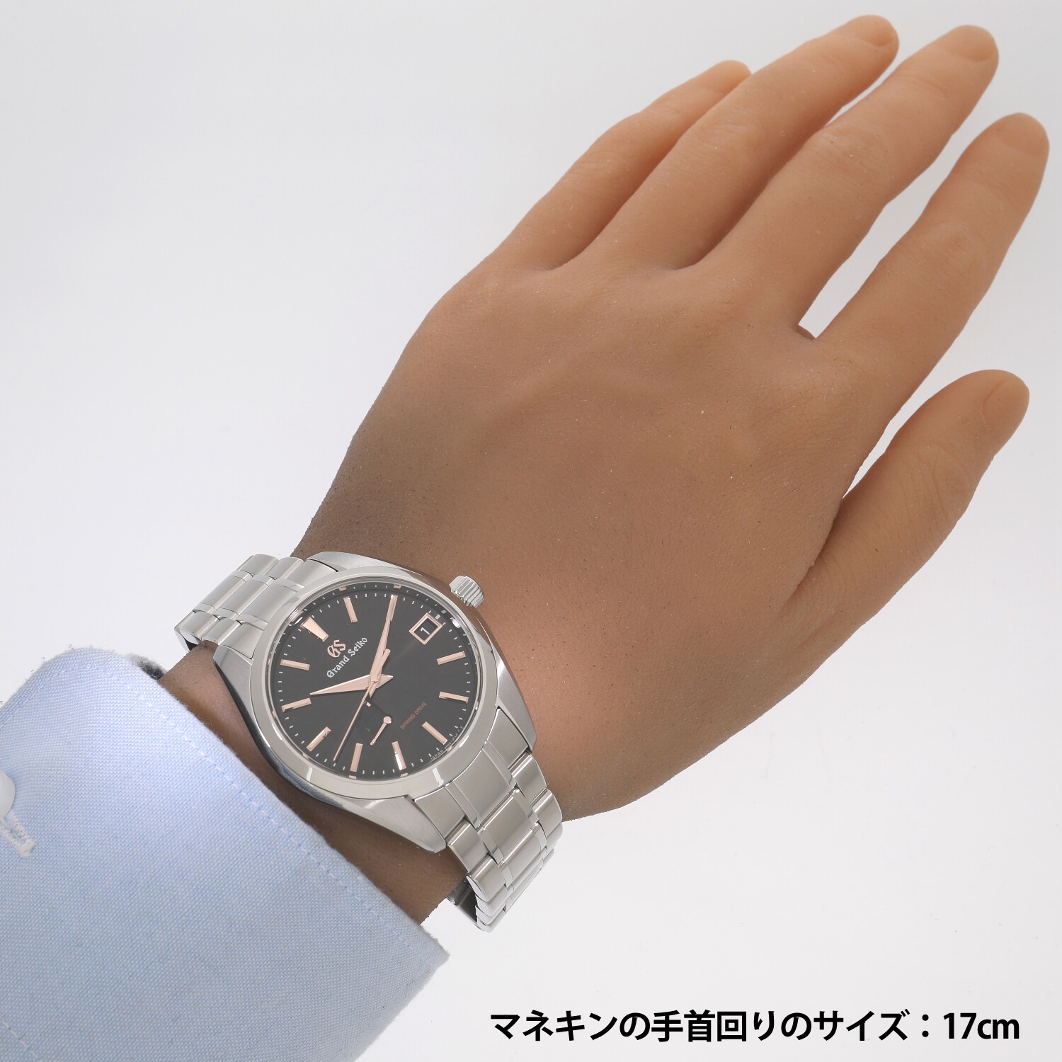 | モデルについて / Features | グランドセイコーのブティックでのみ取り扱われる特別なモデルです。スプリングドライブを搭載しており、滑らかなスイープ運針と巻き上げ時の細かい感触を楽しむことができます。繊細な放射状の仕上げを施したブラック文字盤には、ピンクゴールドカラーのインデックスと針とロゴを組み合わせ、装着する男性の色気をエレガントに演出します。7~8時位置にはパワーリザーブ表示を備えています。 |