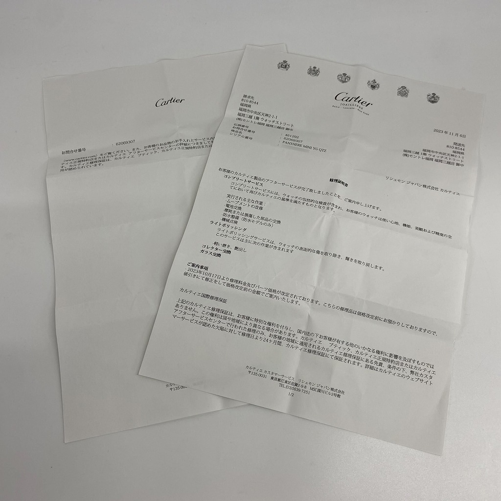 その場合は、当店保証規定内での修理対応となりますのでご了承ください。(ベル&ロス、フランクミュラーなど)