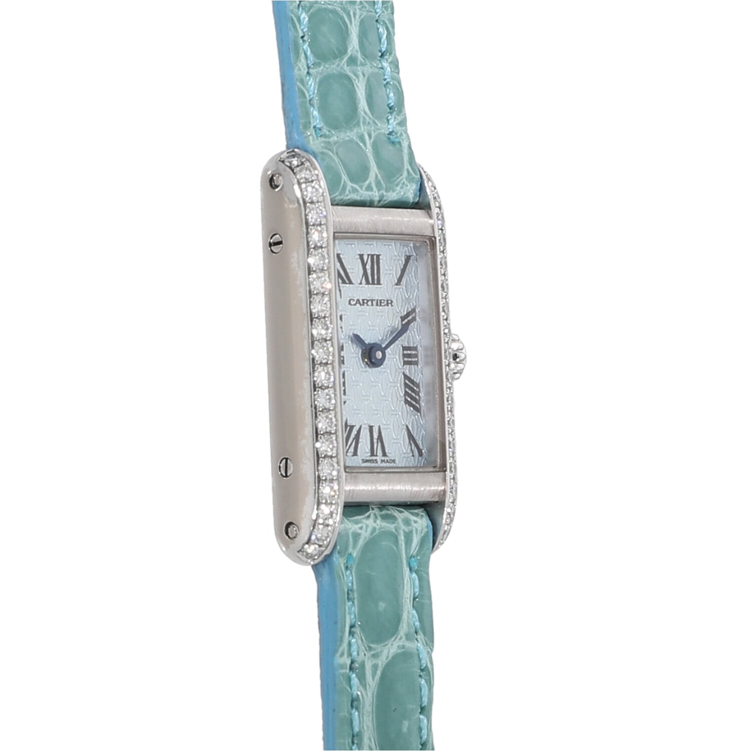 [中古]カルティエ タンクアロンジェ ベゼルダイヤ イタリア限定 25本 WB302750 ブルー レディース