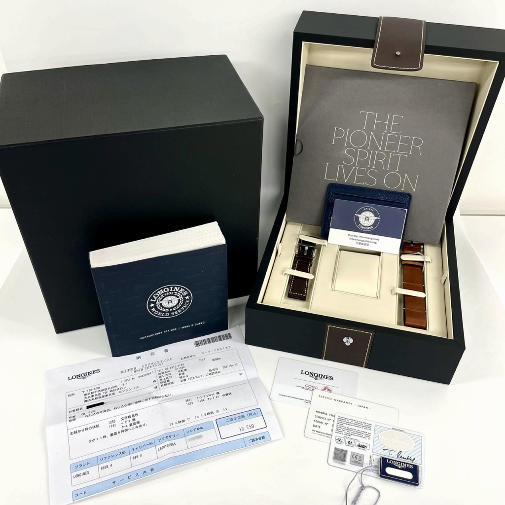 | 付属品 / Accessories | 純正ボックス純正ボックス(外箱ダメージ)/ 国際保証書(海外:2021年1月 )/ 修理明細書(2024年2月 機械点検、リュウズ・チューブ交換) サービス保証書(2024年2月)、COSC証、説明書、替えストラップ、タグ |