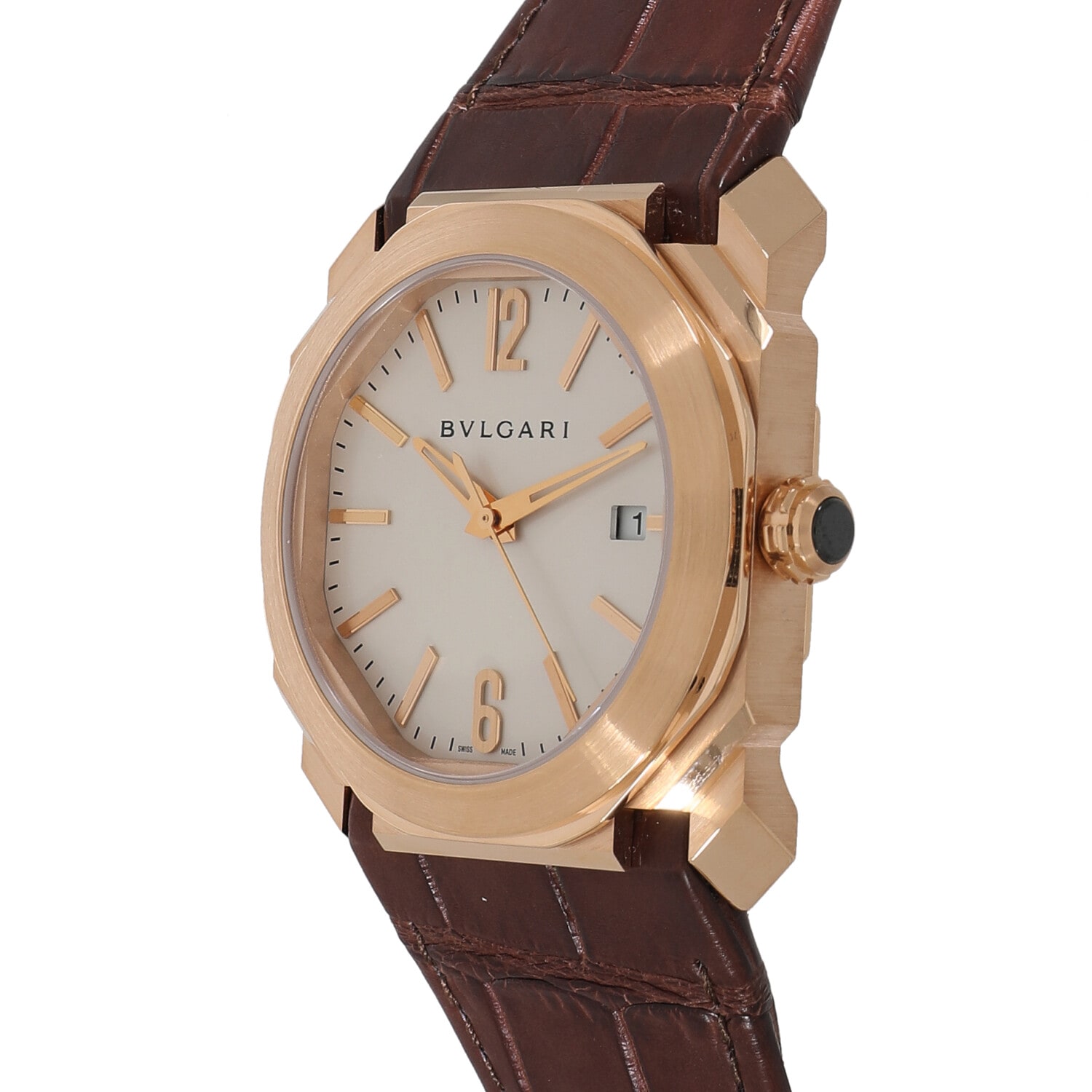 | モデルについて / Features | 高級ジュエラーとして名高いブルガリのウォッチコレクション。2012年に新たなコレクションとして追加された『オクト』。オクトの原型のデザインはブルガリブルガリなど多くの人気モデルを手掛けたジェラルドジェンタ氏です。ジェンタ氏が好んで採用するオクタゴンケースにラウンドの文字盤を組み合わせたデザインが特徴的です。ブルガリらしく独創的で他に無い唯一無二のデザインで人気を博します。 |