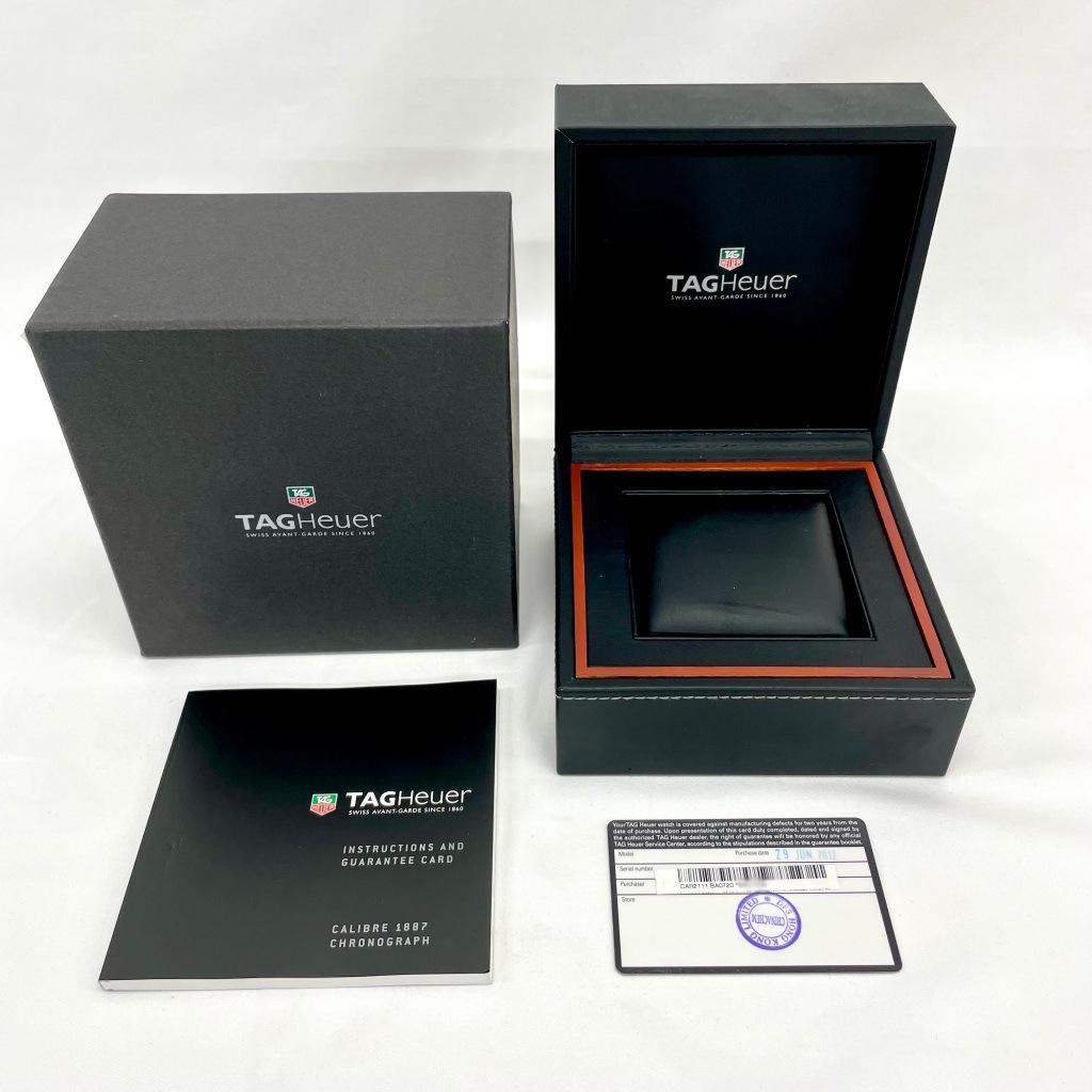 | モデルについて / Features | モータースポーツにインスピレーションを受けデザインされた、タグホイヤーのコレクションの中でも人気のカレラ。創業150周年の節目に当たる2010年にタグホイヤーが自社開発した、キャリバー1887を搭載するカレラ・クロノグラフです。非常にシンプルな見た目で飽きのこないデザインが人気を呼びました。裏蓋はスケルトンタイプで、ムーブメントのローターは初期型、文字盤はタキメーター表記の無い仕様になります。 |