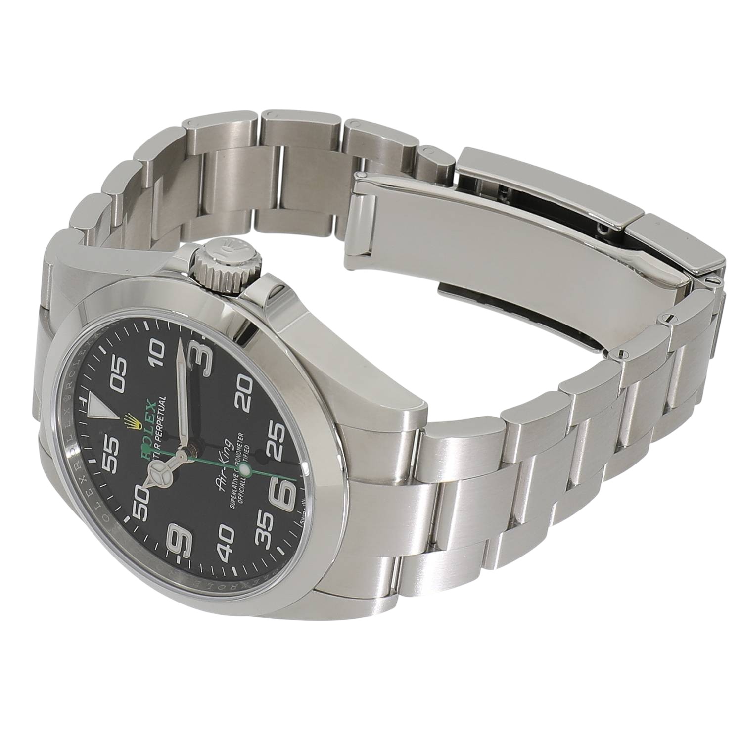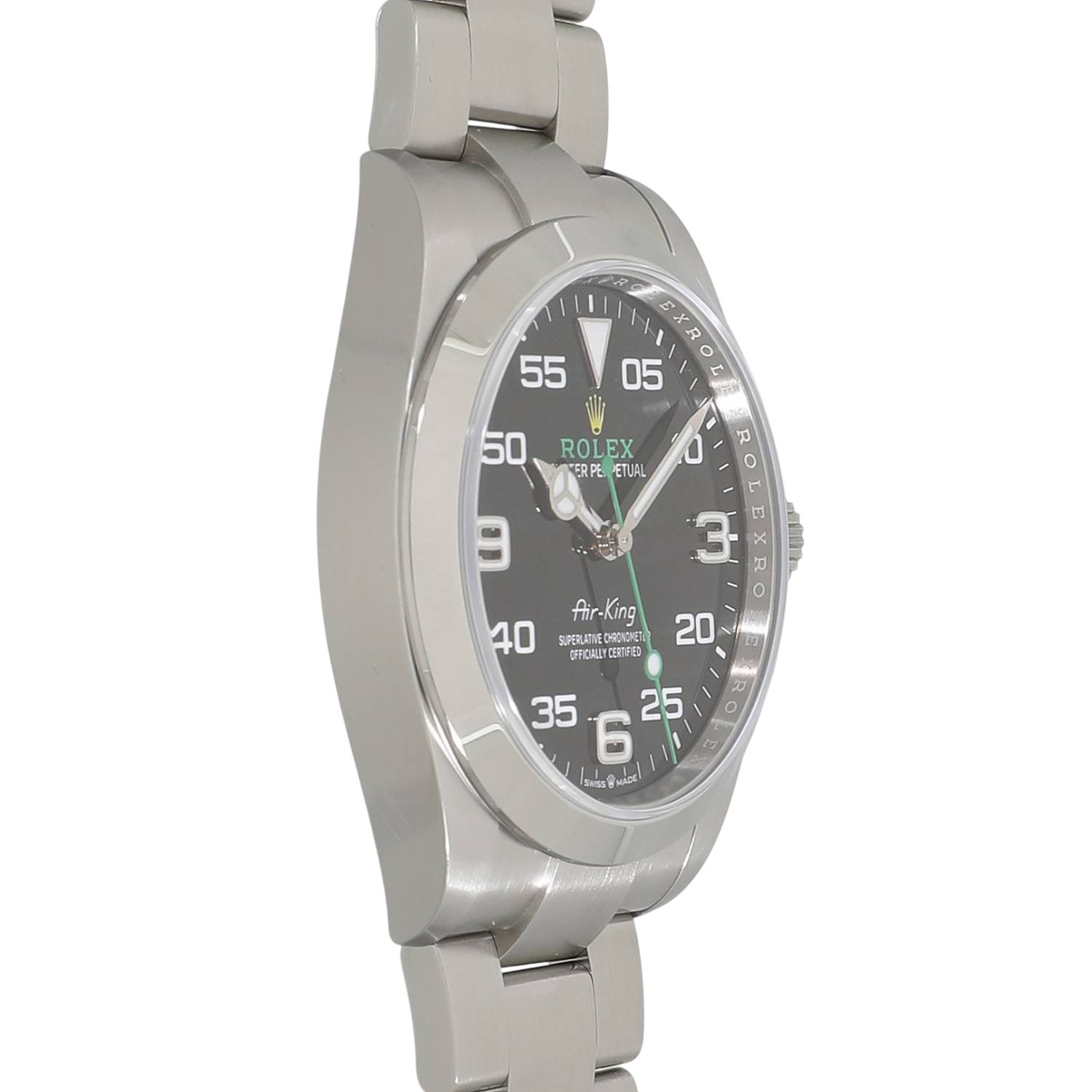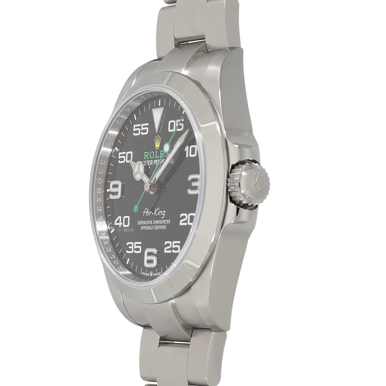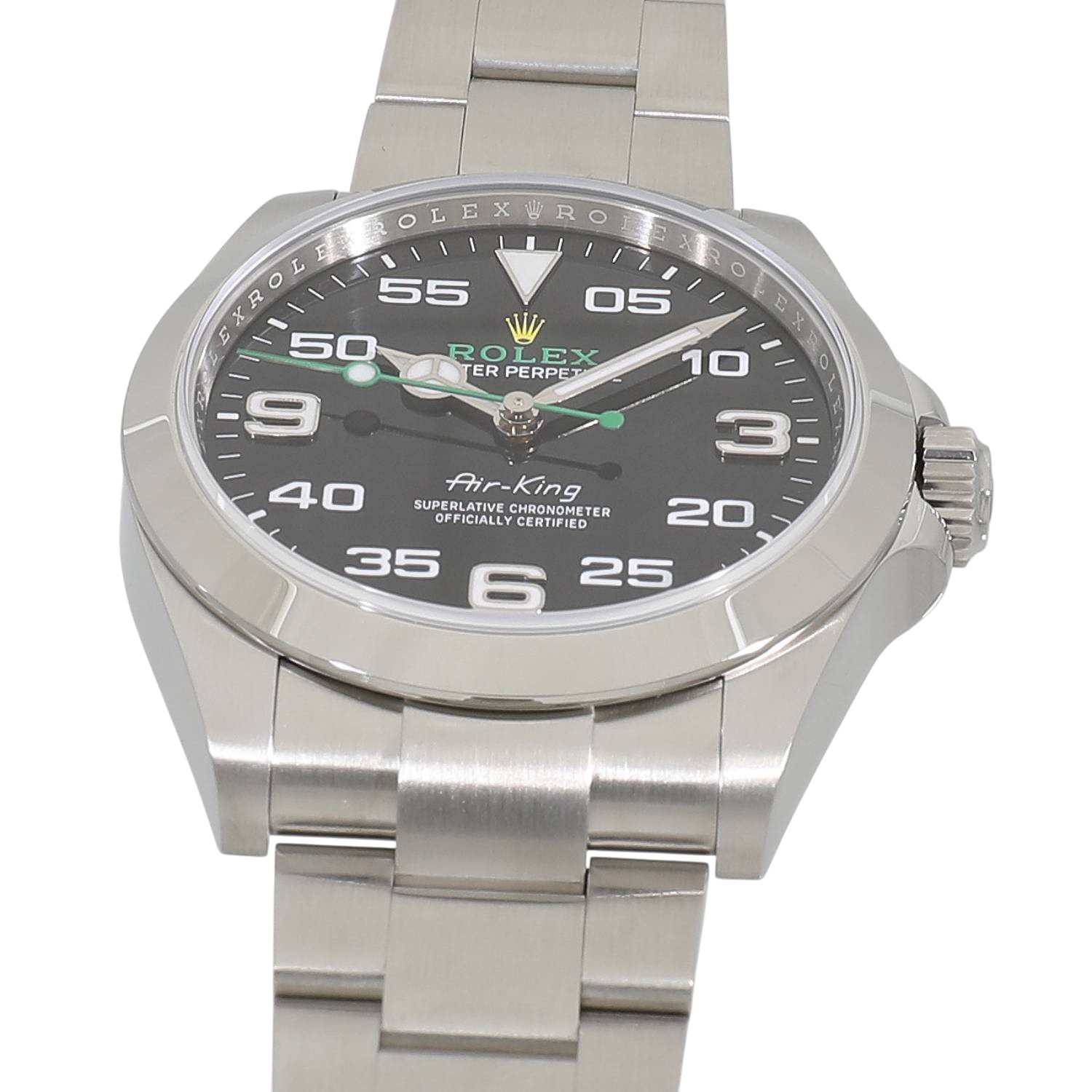 | モデルについて / Features | 2022年の新作 「エアキング」は、飛躍的に航空技術が進歩した1930年代に高精度を求めるパイロットに愛されていたオイスターモデルをオマージュして製造されたパイロットウォッチです。2022年にモデルチェンジしたこちらの「126900」ではリューズガードが採用され、以前のドレッシーな印象から、よりスポーティなイメージに変わりました。搭載ムーブメントはCal.3230となり、ロレックスらしい高精度と耐久性を備えながらも、約70時間のパワーリザーブを誇ります。 |
