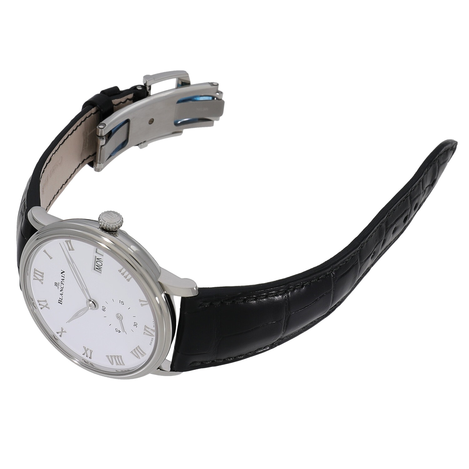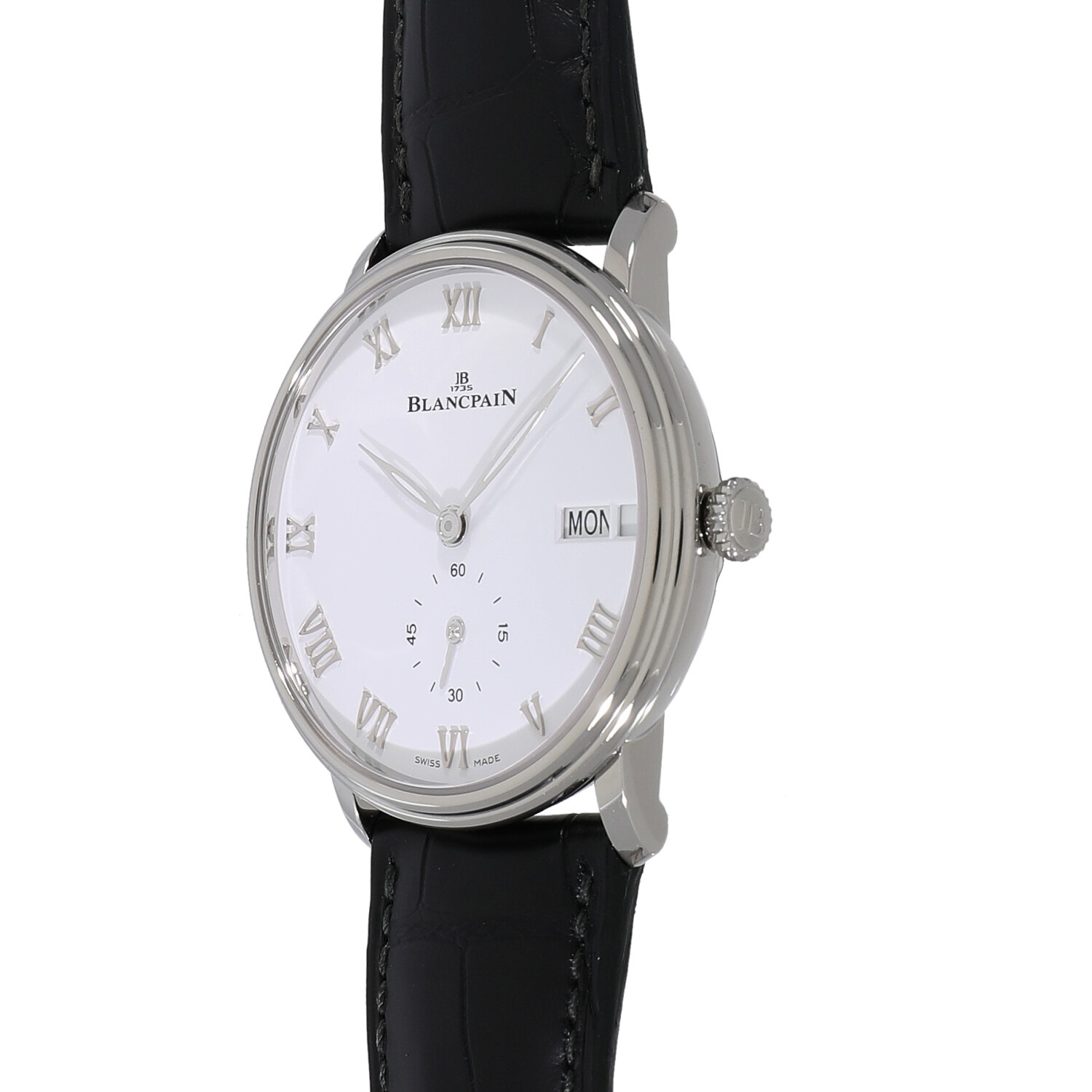 | モデルについて / Features | 発祥の地であるスイス・ヴィルレ地方の名をモデル名に冠し、ブランパンらしさを表現する代表的なコレクション「ヴィルレ」。ラウンドケースしか作らないブランパンのルーツと美意識を表現するモデルです。ブランパンの特徴の一つ「ダブルステップ・ベゼル」と呼ばれるスレンダーなベゼルも魅力的です。こちらは日付と曜日表記を持つモデルで、シンプルでありながら実用性の高い仕様となっております。 |