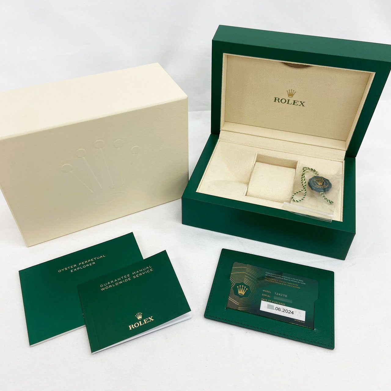 | 付属品 / Accessories | 純正ボックス / 国際保証書(あり:2024年6月 ) /説明書、ギャランティーカバー、タグ |