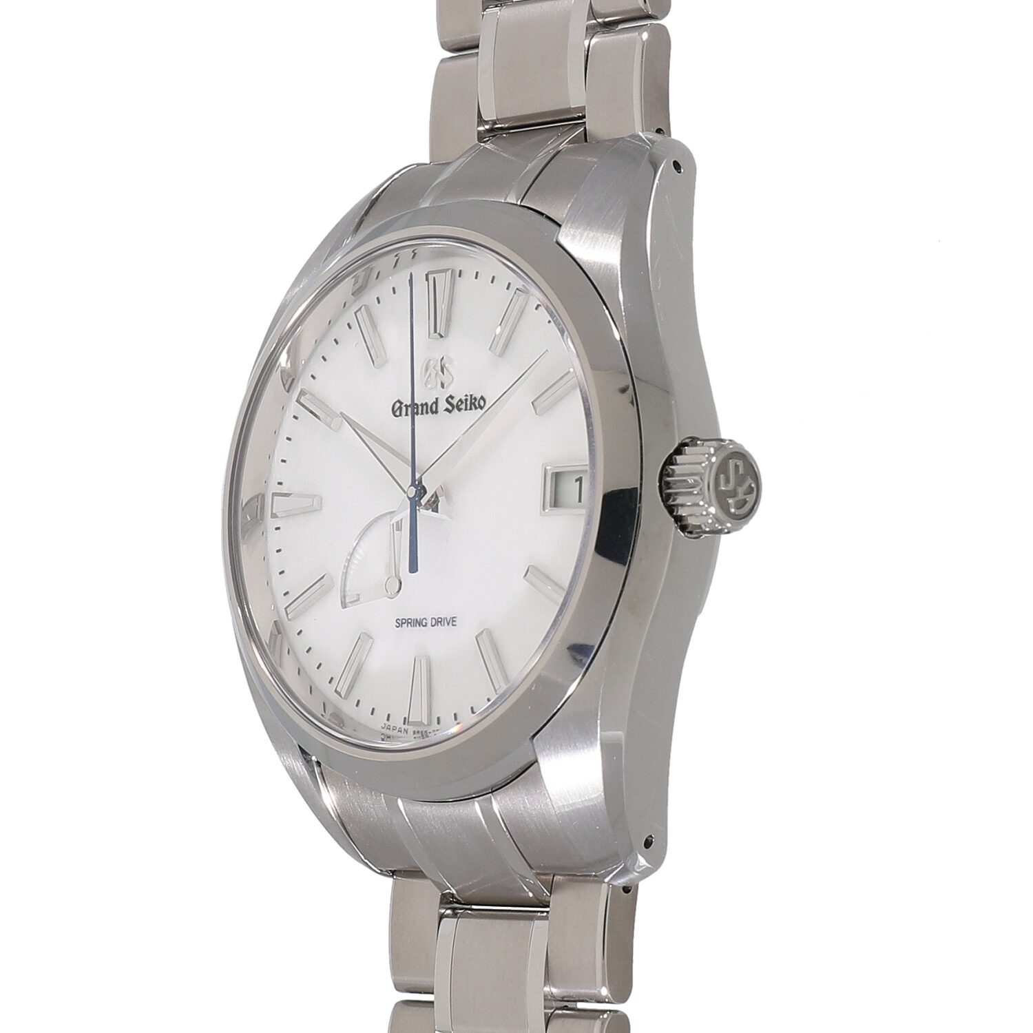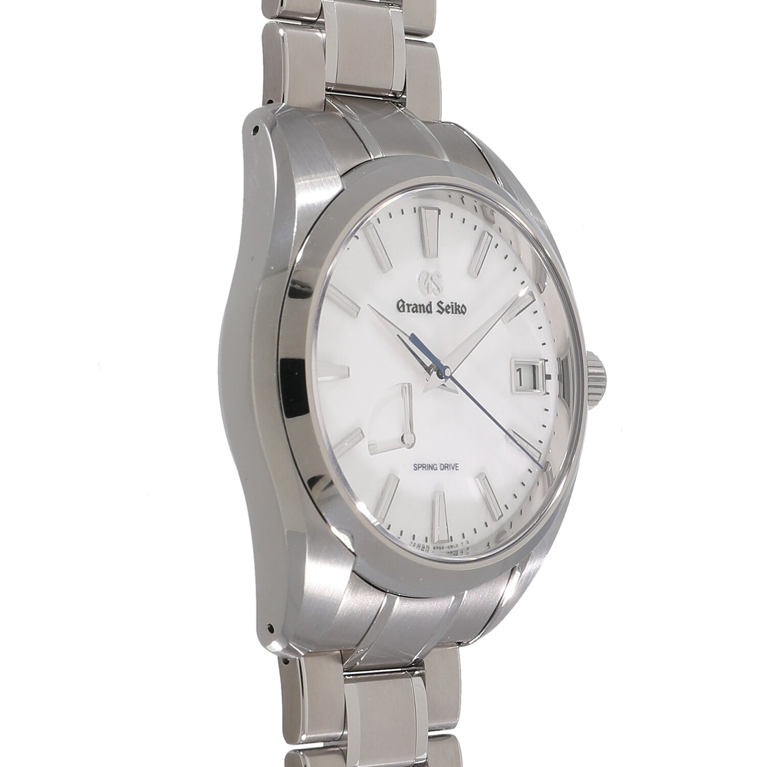 | モデルについて / Features | 2021年の新作 SEIKOが開発した、機械式とクォーツが融合したハイブリッドムーブメントである、自動巻き式のスプリングドライブを搭載しています。搭載する9R65は最大で3日間稼働します。3時位置にはカレンダー表示、7~8時位置にはパワーリザーブインジケーターを装備しています。スノーフレークや雪白などと呼ばれる特徴ある純白の文字盤に、ブルーの秒針を組み合わせた非常に美しいフェイスです。 |