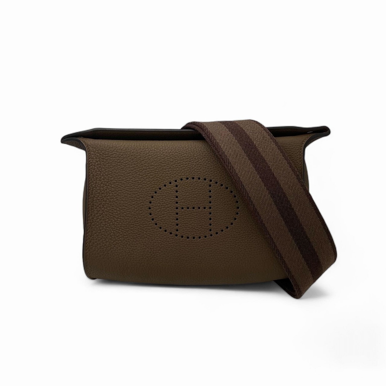 | モデルについて / Features | エルメスのホームデコレーションシリーズではお馴染みの「空っぽのポケット」を意味するヴィドポッシュは、帰宅後に鍵等を入れるチェンジトレイとしてよく知られています。そんなヴィドポッシュがそのままショルダーバッグになったこちらのアイテム。ツンドラカラーはシックなブラウンでとても上品です。オールシーズン、男女問わずにご使用いただけます。 |