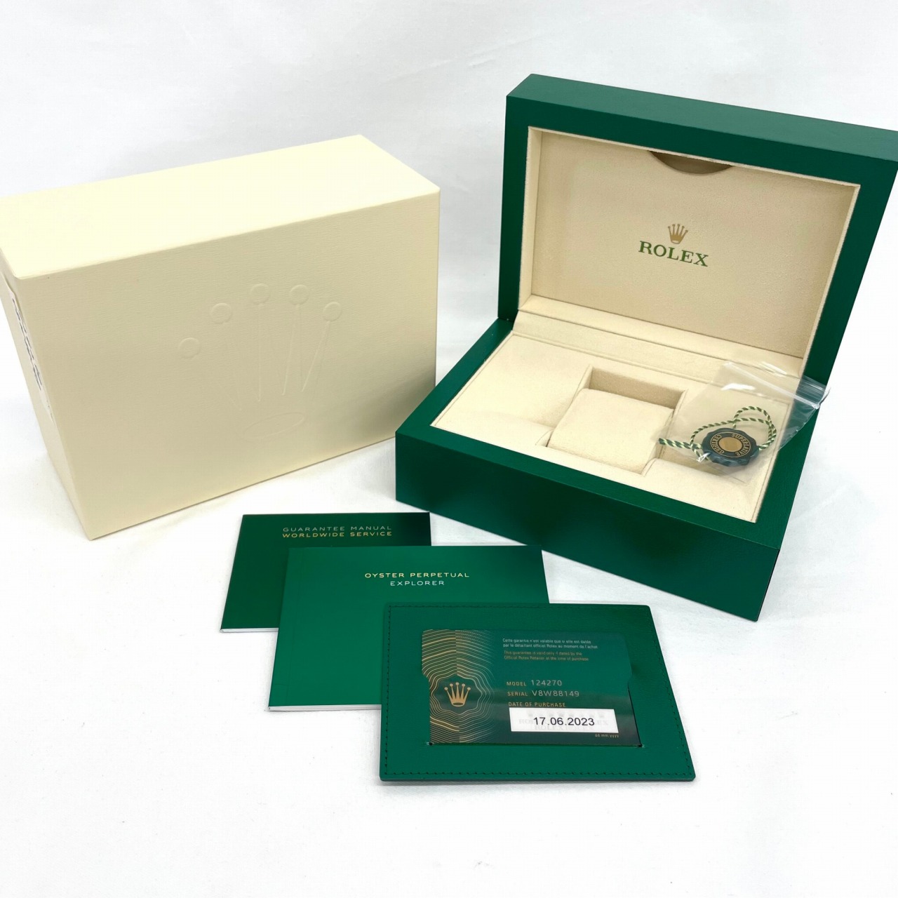 | 付属品 / Accessories | 純正ボックス / 国際保証書(あり:2023年6月 ) /説明書、ギャランティカバー、タグ |