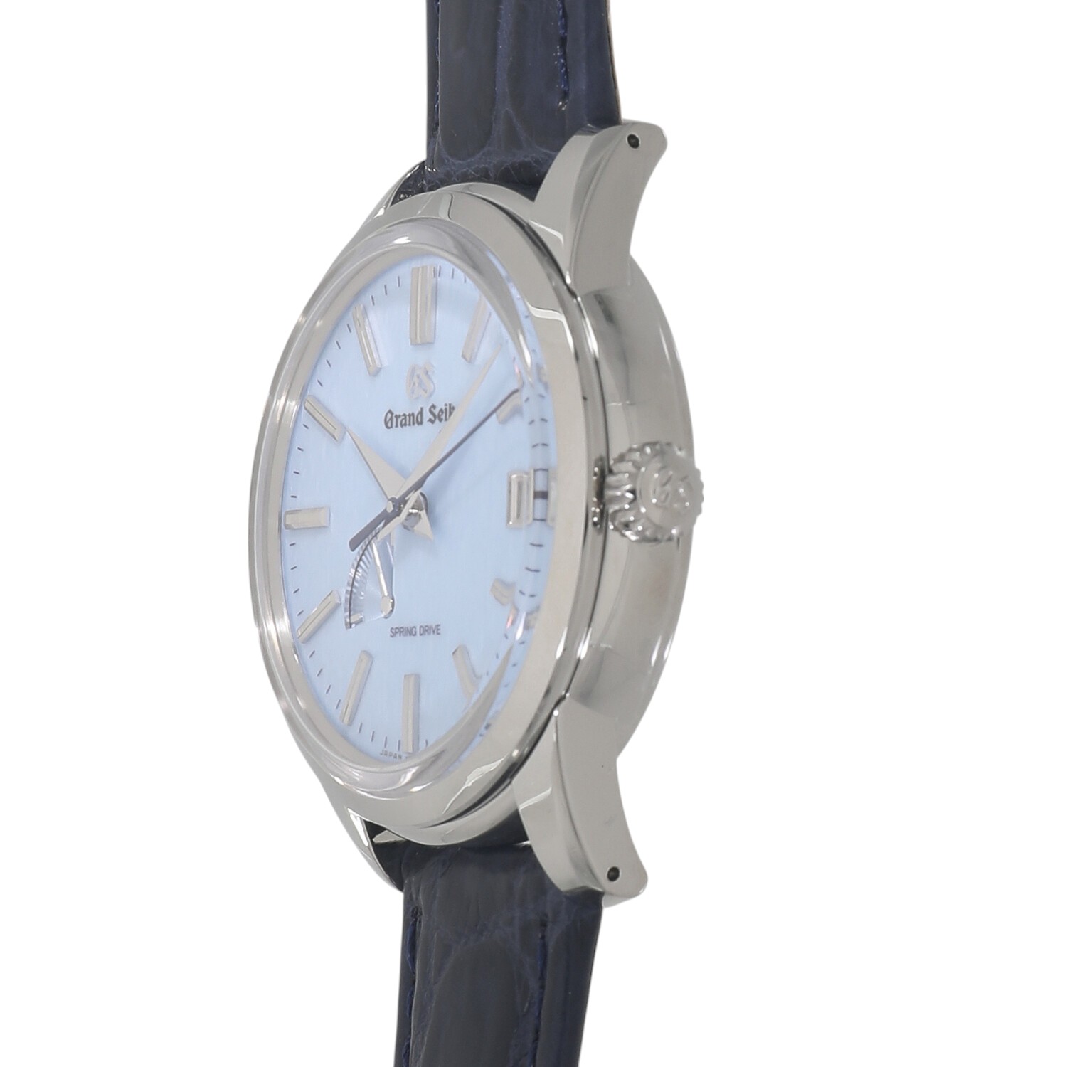 | モデルについて / Features | 日本を代表する時計ブランドセイコーの最高峰ブランドであるグランドセイコー。SEIKOが開発した、機械式とクォーツが融合したハイブリッドムーブメントである、スプリングドライブを搭載しています。和紙のような凹凸のある特徴的な文字盤は、『雪白』や『スノーフレーク』と呼ばれ日本のみならず世界的に人気の高いデザインで、スプリングドライブを作り上げる信州時の工房から見える、風紋が刻まれた信州の山々に積もる雪を連想させます。雪白と呼ばれるこの文字盤はホワイトがベースとなりますが、雪面に反射した空のブルーをイメージしデザインされ、初めてカラーリングが施されたモデルです。 |