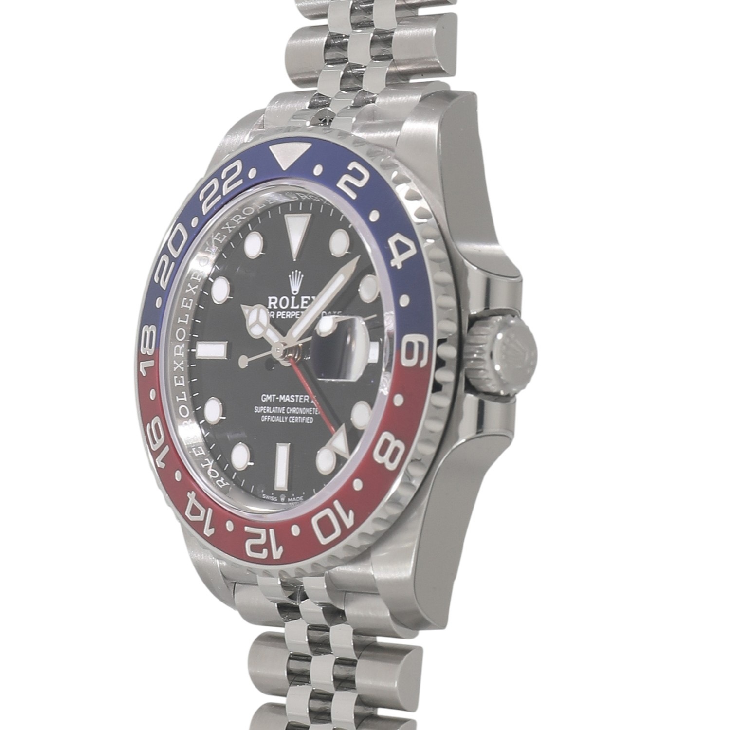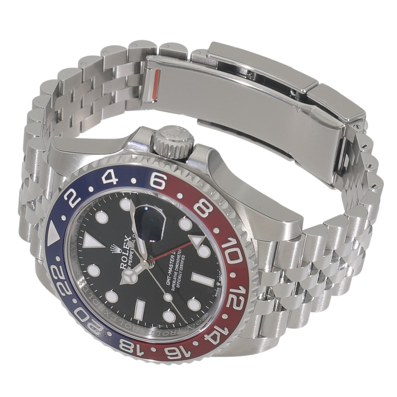 | モデルについて / Features | 2018年の新作 異なる時間帯を同時に読み取れるパイロットウォッチとして誕生したGMTマスター。通称ペプシと呼ばれる赤青の2トーンカラーのセラクロムベゼル、70時間のパワーリザーブを備える次世代型キャリバー3285、そしてプロフェッショナルモデルとしては久々にジュビリーブレスレットを採用し2018年の新作として発表されたGMTマスターⅡです。 細かなコマが5列に連なるジュビリーブレスレットにより、スポーティーなモデルでありながら上品さも感じられる仕上がりとなっています。2018年に誕生したジュビリーブレスレット仕様に続き、2021年にはスポーティーさが際立つオイスターブレスレット仕様も誕生します。 |