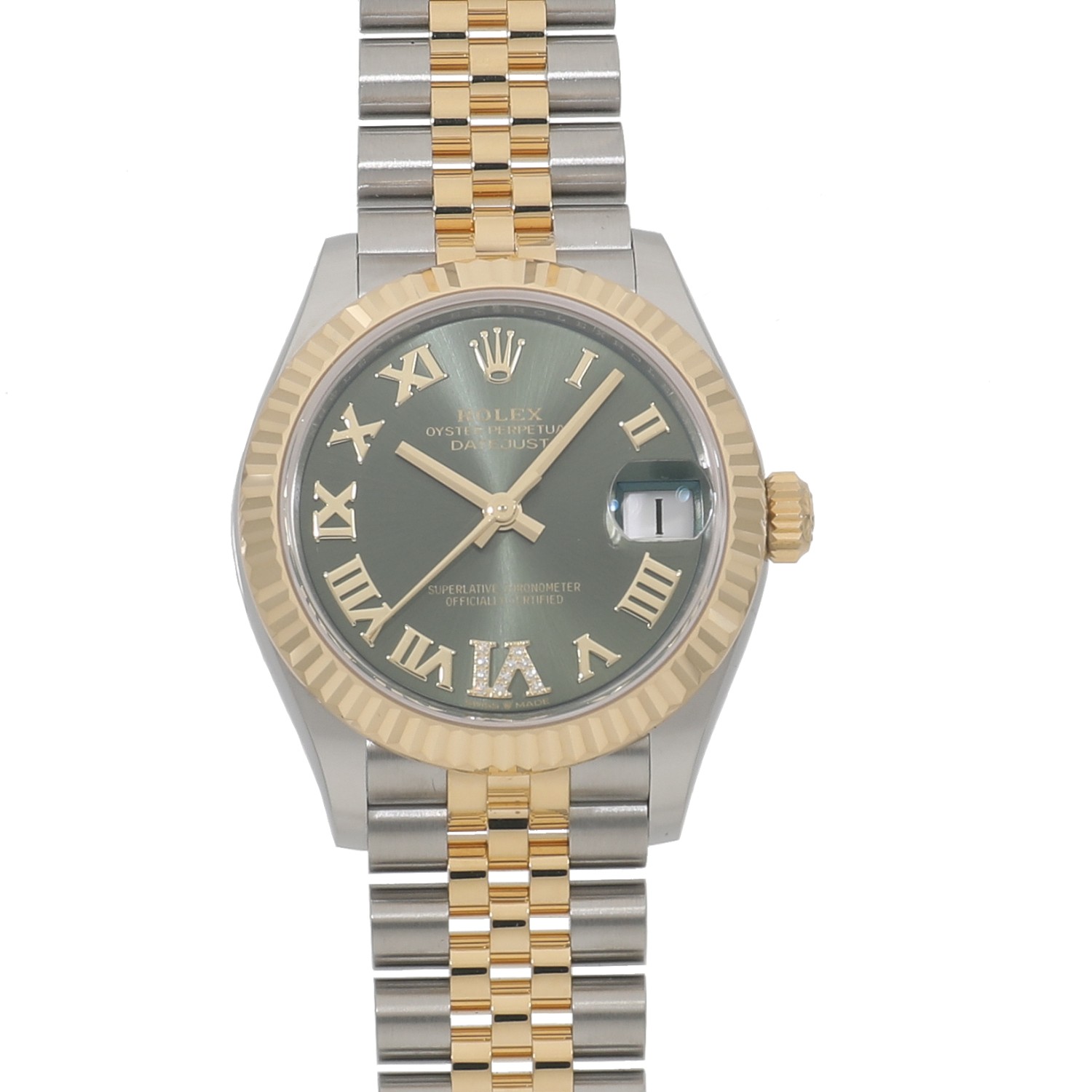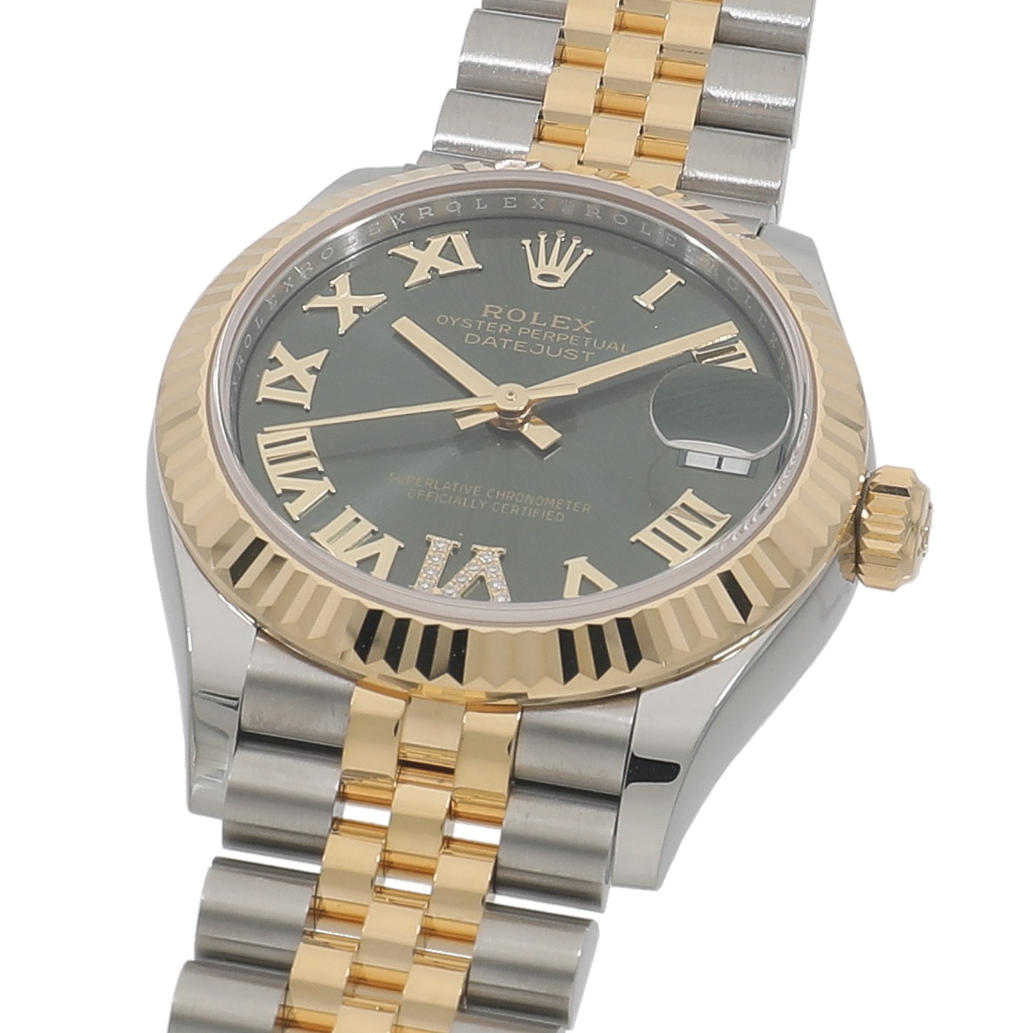 [未使用]ロレックス デイトジャスト31 278273 ランダム オリーブグリーン×VIダイヤ ユニセックス