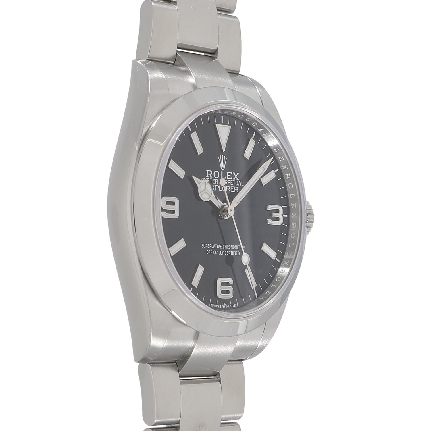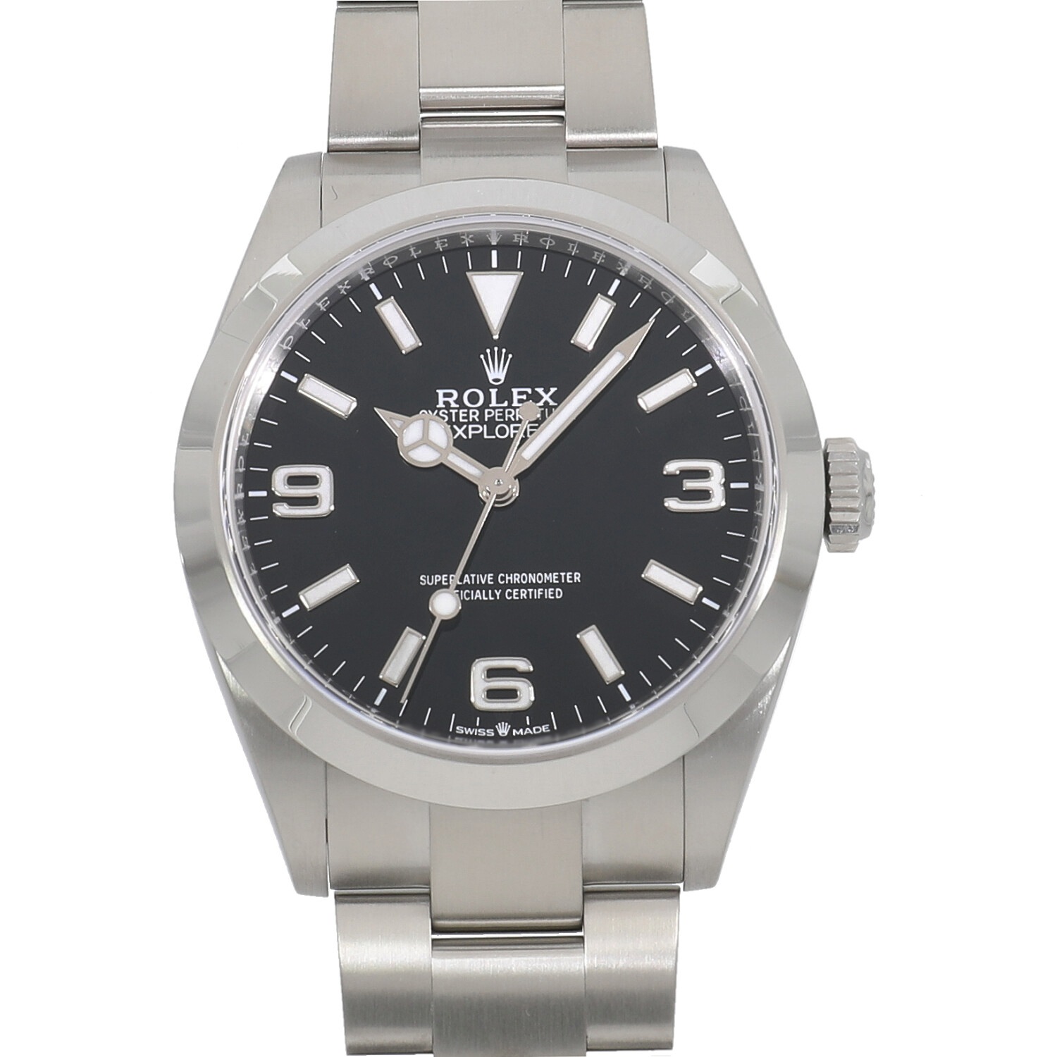 | モデルについて / Features | 2023年の新作 エクスプローラーの歴史は1953年に始まります。初代モデルから最新のモデルまでシンプルでミニマルなデザインが特徴です。そのシンプルさからシーンやスタイルを選ばないユーティリティーウォッチとして人気を博します。冒険家という名の通り時刻を読み取る視認性の良さに優れます。歴代のエクスプローラーの中でも最も大きい40ミリケースを採用、約70時間のパワーリザーブを有するCAL.3230を搭載し2023年の新作モデルとして誕生しました。 |