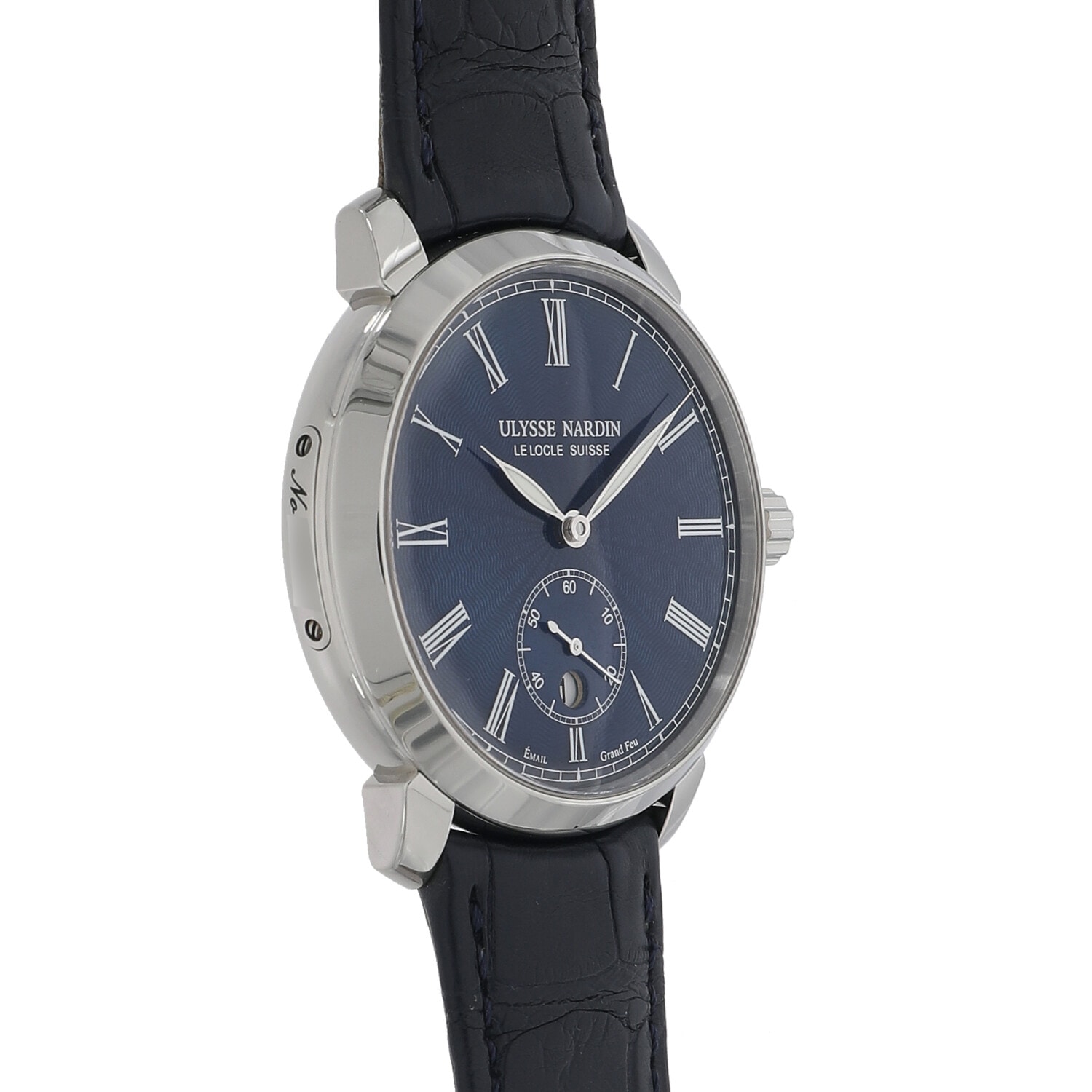 | モデルについて / Features | シンプルなラウンドケースに特徴的な形状のラグを組み合わせたクラシコ マニュファクチュール。ユリスナルダンの得意とするグラン・フー(エナメル)ダイヤルは、傘下のエナメル加工のスペシャリストであるドンツェ・カドラン社によって製造されます。丁寧なギョウシェ彫りが施された透明感のあるブルーのグラン・フー文字盤は美しいの一言につき、他に2つと無い唯一無二の存在です。自動巻き式のムーブメントは自社製で48時間のパワーリザーブを備えます。 |