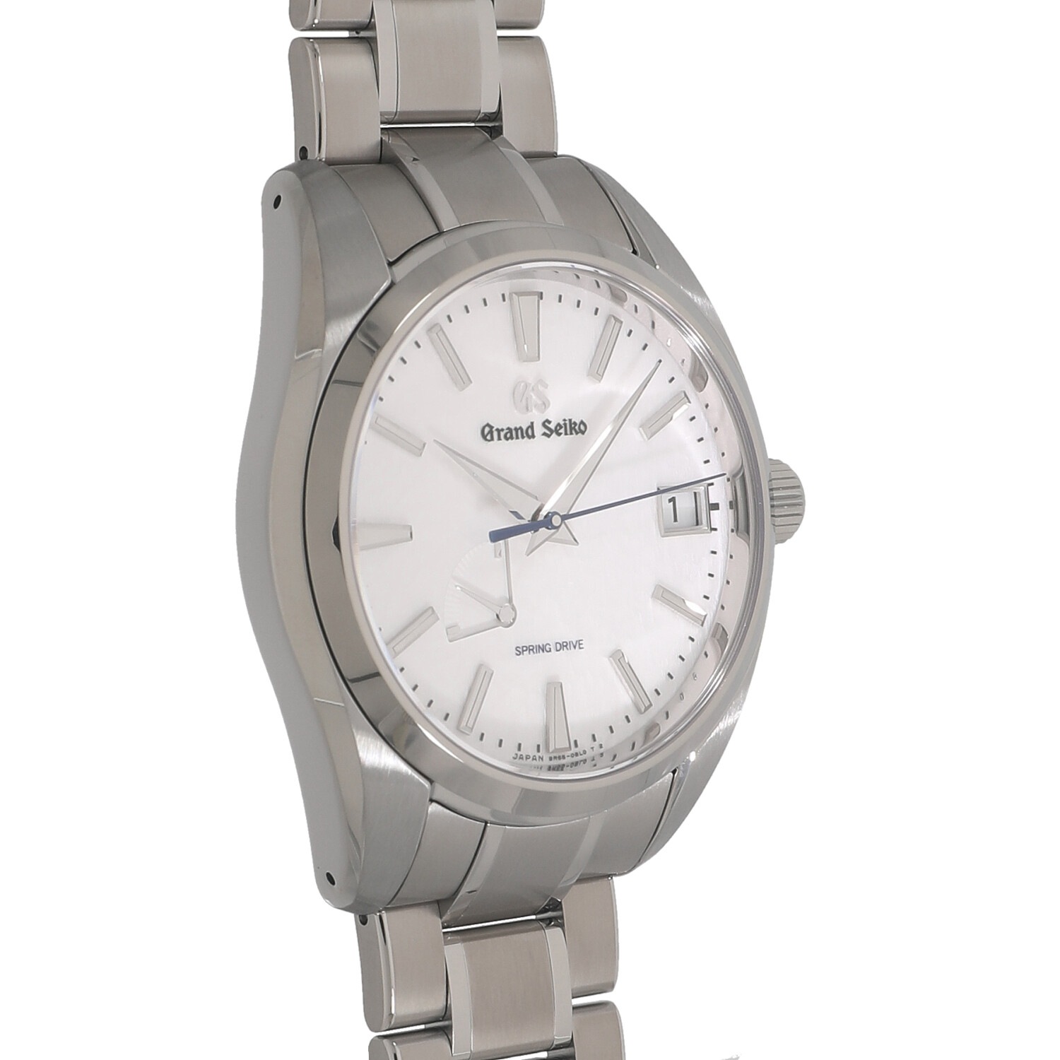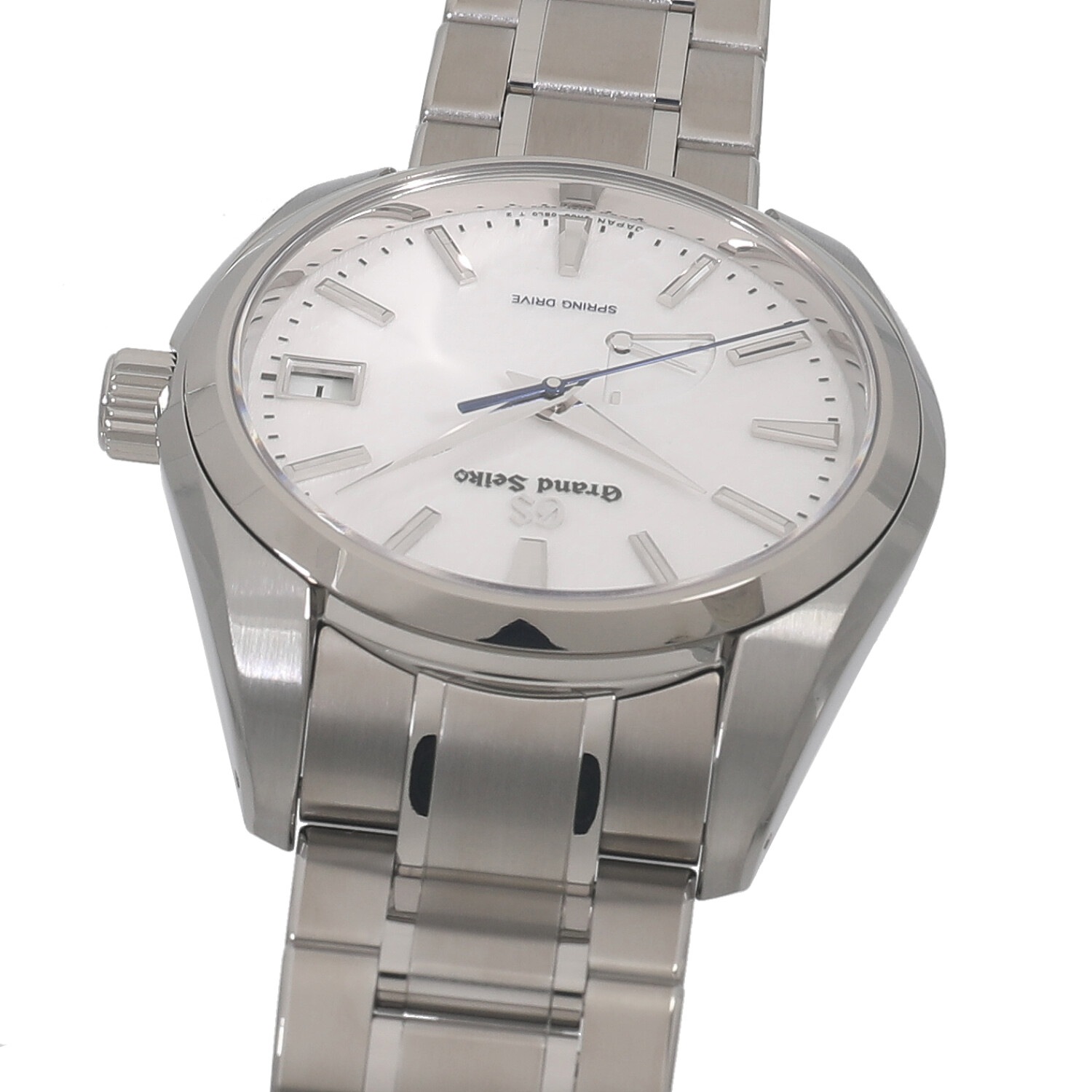 | モデルについて / Features | 2021年の新作 SEIKOが開発した、機械式とクォーツが融合したハイブリッドムーブメントである、自動巻き式のスプリングドライブを搭載しています。搭載する9R65は最大で3日間稼働します。3時位置にはカレンダー表示、7~8時位置にはパワーリザーブインジケーターを装備しています。スノーフレークや雪白などと呼ばれる特徴ある純白の文字盤に、ブルーの秒針を組み合わせた非常に美しいフェイスです。 |