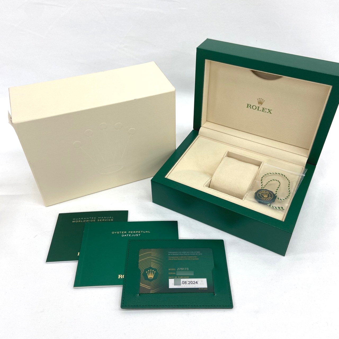 | 付属品 / Accessories | 純正ボックス / 国際保証書(あり:2024年8月 ) /説明書、ギャランティーカバー、タグ |