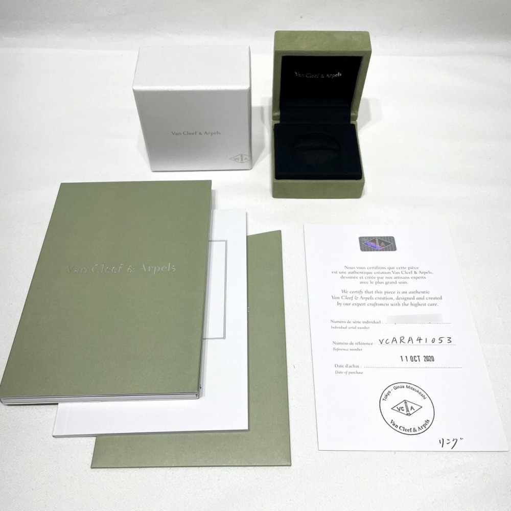 | メンテナンス・状態 / Maintenance・Description | クリーニング(当店にて:2025年2月)。特に目立つダメージの無い、綺麗なコンディションです。ヨーロッパサイズは53(日本サイズは13号)なので、証明書に記載される型番はVCARA41053になります。 Cleaning (at our store: February 2025). It is in beautiful condition with no particular noticeable damage. European size is 53 (Japanese size is 13), so the model number on the certificate is VCARA41053. |
