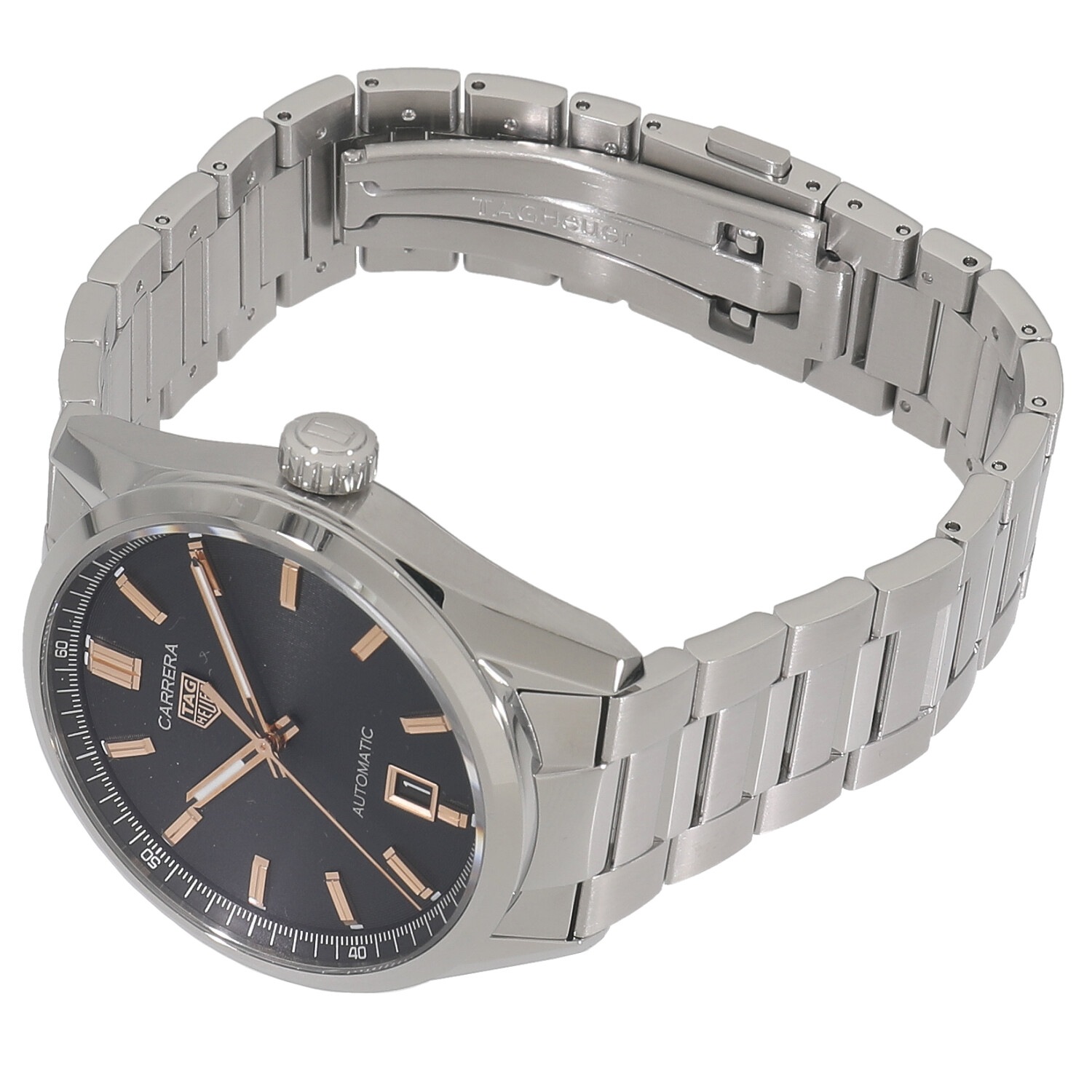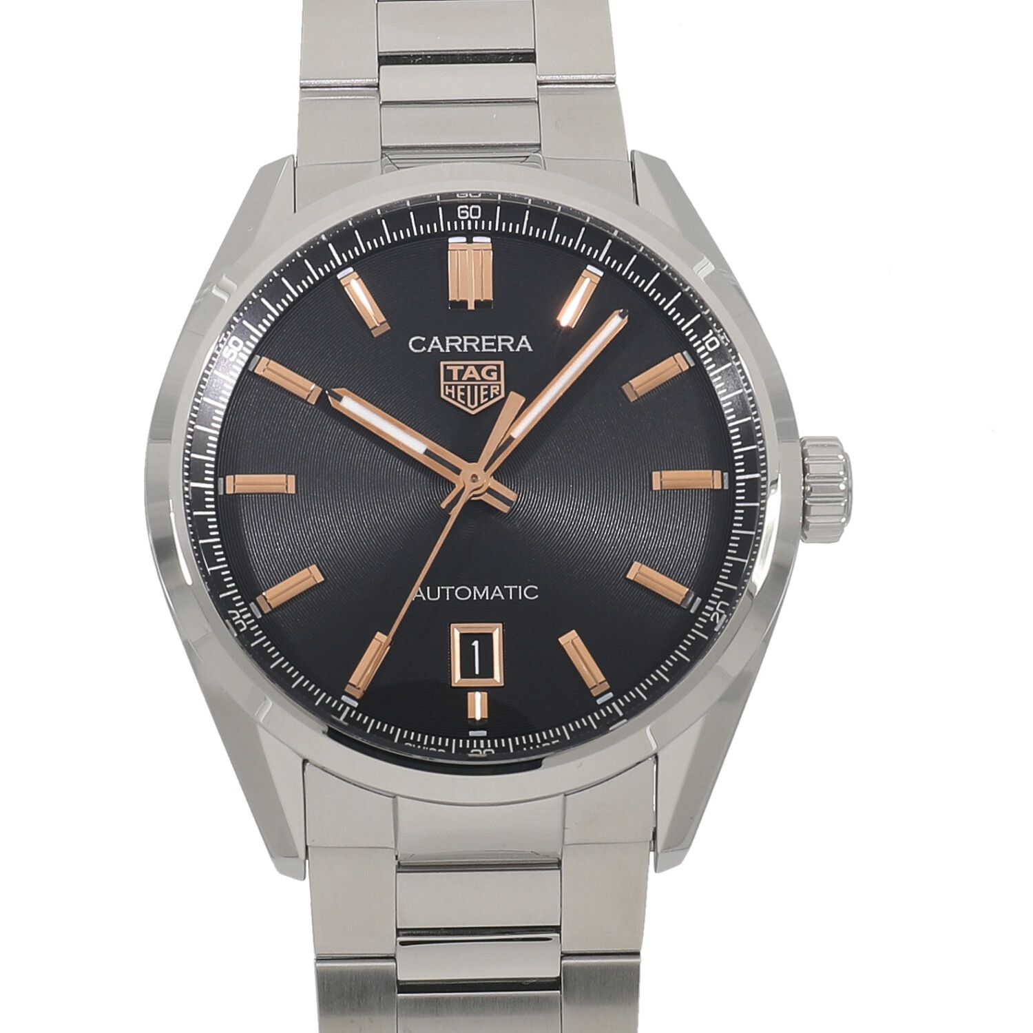 | モデルについて / Features | 2021年の新作 タグホイヤーのアイコニックなコレクションでもあるカレラ。2014年の新作として発表された3針やデイデイト、GMTなどシンプルな見た目のカレラは、使い勝手の良さが魅力で多くの支持を得た人気モデルです。このモデルはデイトのみを備えたシンプルな見た目ですが、同心円状の加工が施されたコンセントリックダイヤル、針やインデックスにはローズゴールドメッキを施すなど、価格以上の高級感を感じさせるデザインです。2021年にリニューアルが行われ、ポリッシュ仕上げとヘアライン仕上げが施されたケースは薄くなり、ブレスレットも薄く滑らかとなり装着感が向上しました。 |