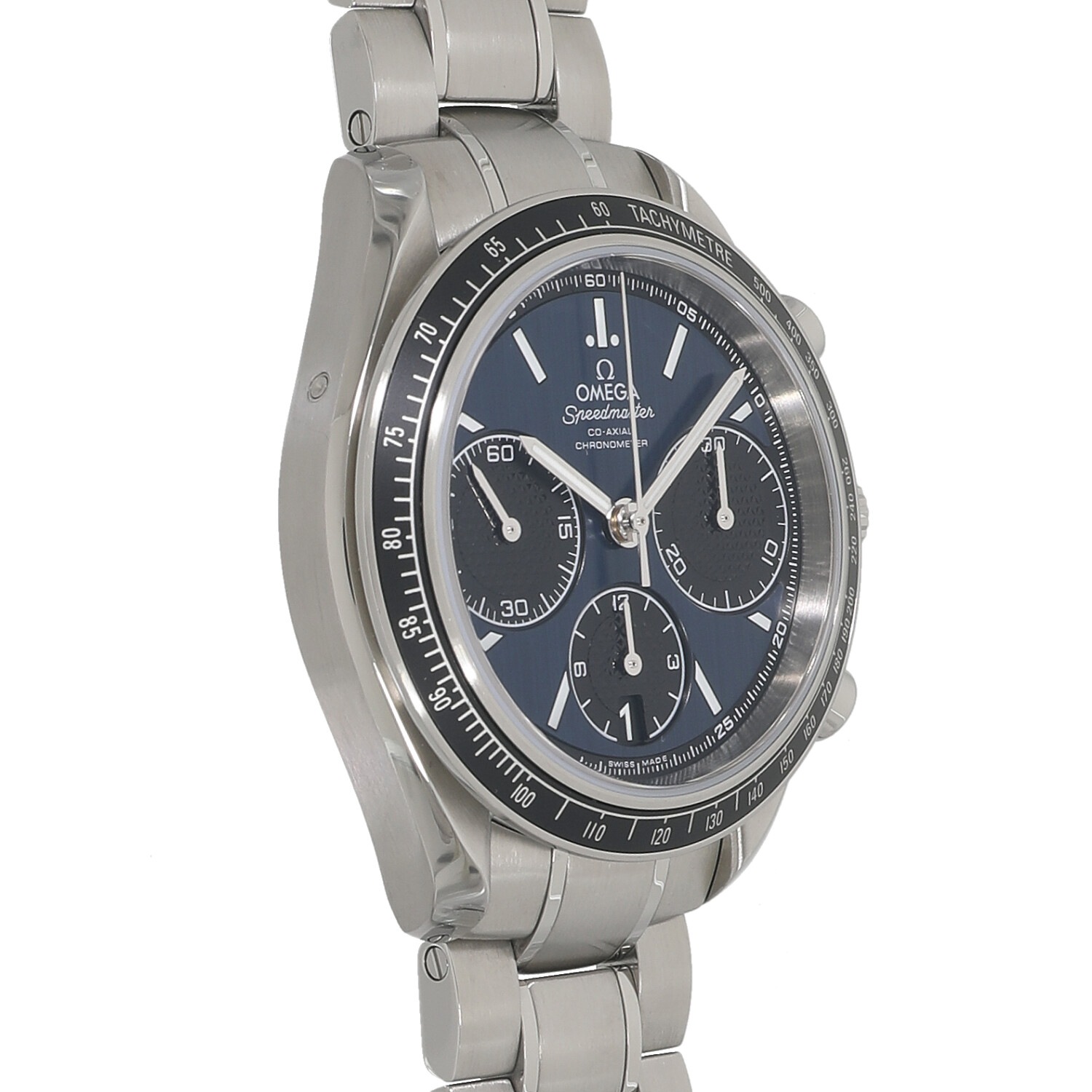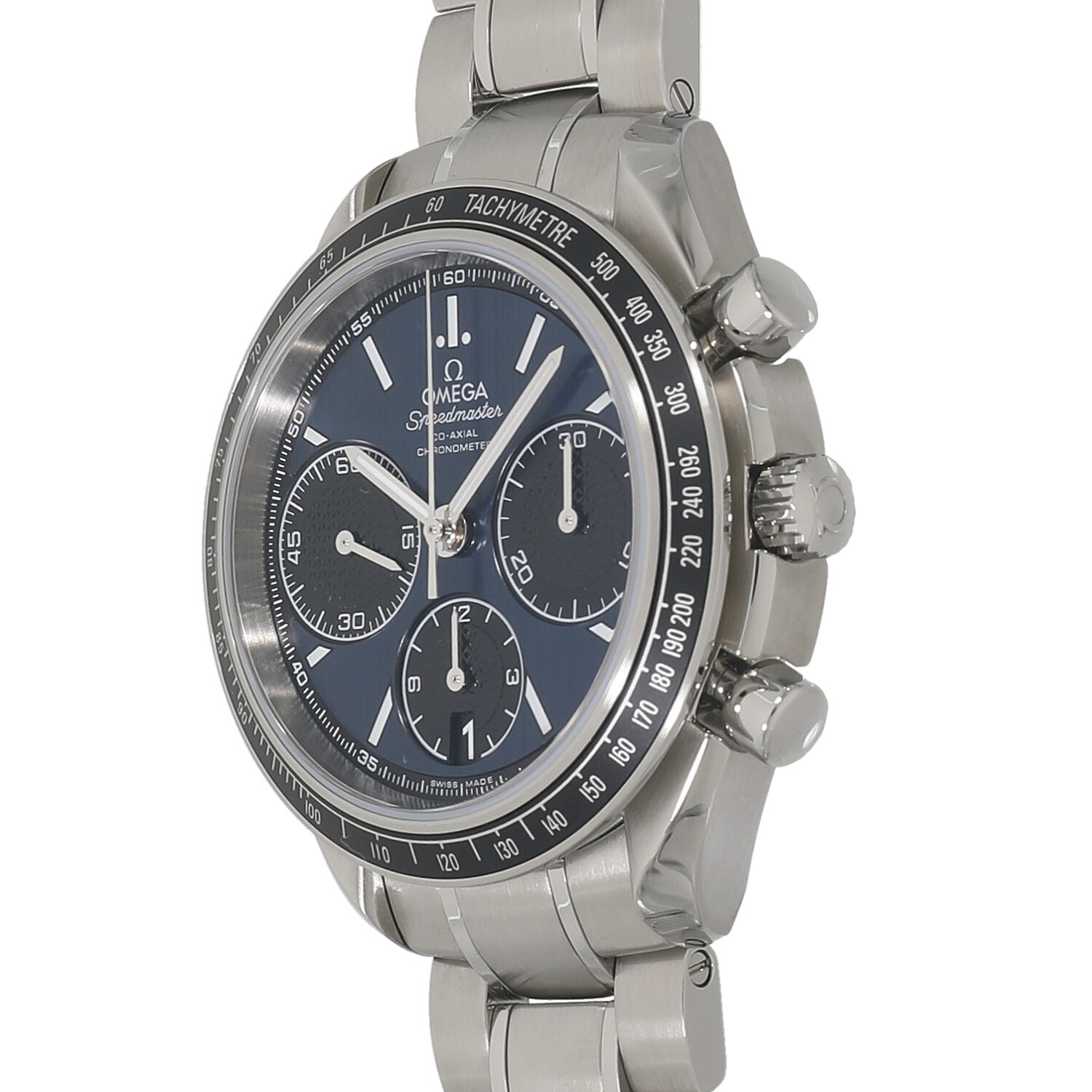 | モデルについて / Features | レーシングという名の通り、モータースポーツをイメージしてデザインされたスピードマスター・レーシング。このレーシングコレクションでは、オーソドックスなブラックやシルバーの他にも様々なフェイスカラーが展開されています。スモールセコンドとクロノグラフの積算計には、クルドパリ装飾が施され、スポーティーながらも高級感あるフェイスに仕上がっています。 |