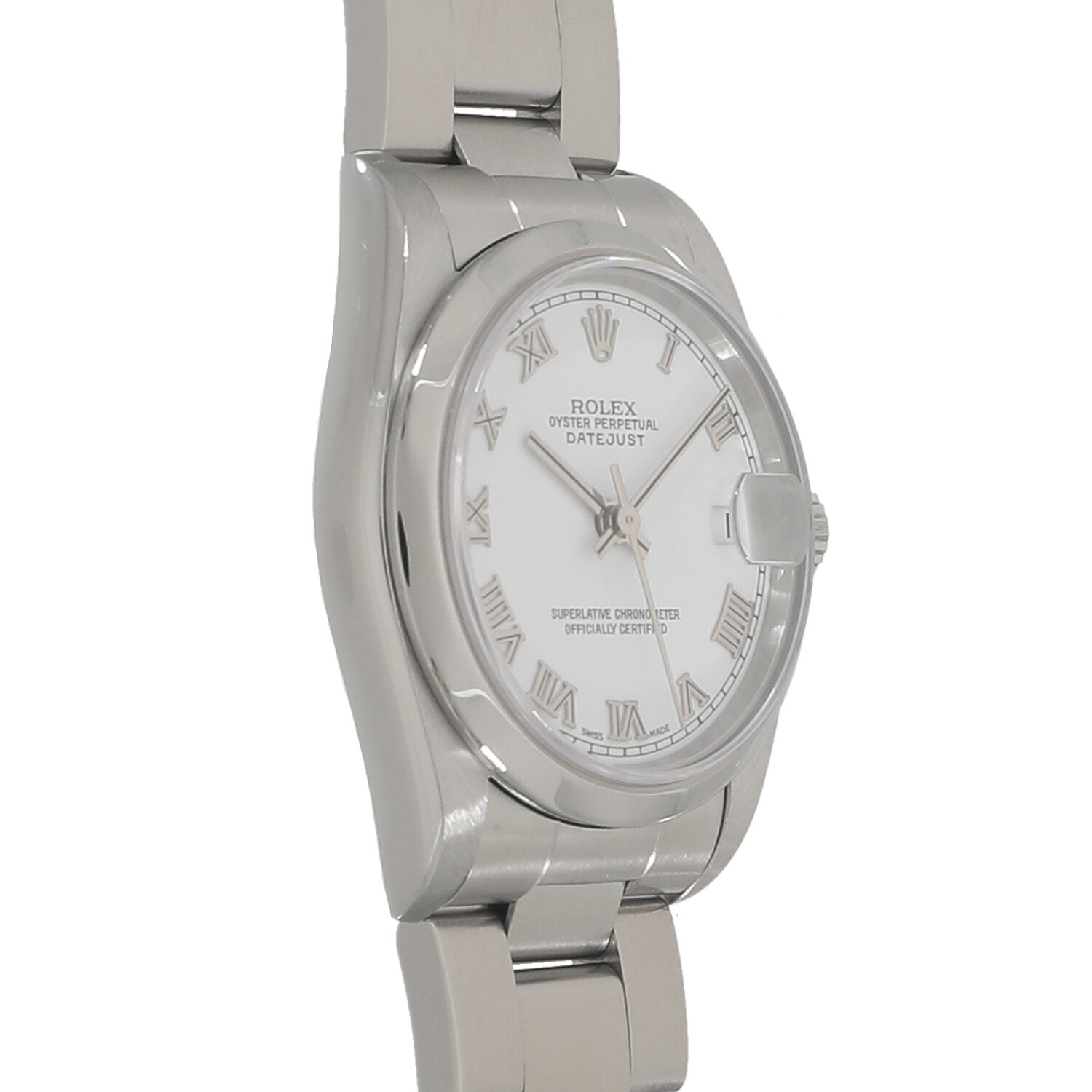| モデルについて / Features | 1945年の誕生から現在に至るまでラインナップを続けるデイトジャストは、ロレックスの三大発明であるオイスター(防水)、パーペチュアル(自動巻)、デイトジャストの全てを備えており、まさにロレックスのアイコン的存在であると言えます。数あるロレックスのコレクションの中でも、文字盤や素材の組み合わせ、メンズやレディースのサイズなど、非常に多くのバリエーションが展開されるコレクションです。タイムレスで飽きの来ないデザインは多くの男女を魅了し続けています。ケース径は31ミリとメンズとレディースの中間にあたるミッドサイズで、男女兼用でご利用頂けるサイズ感です。 |