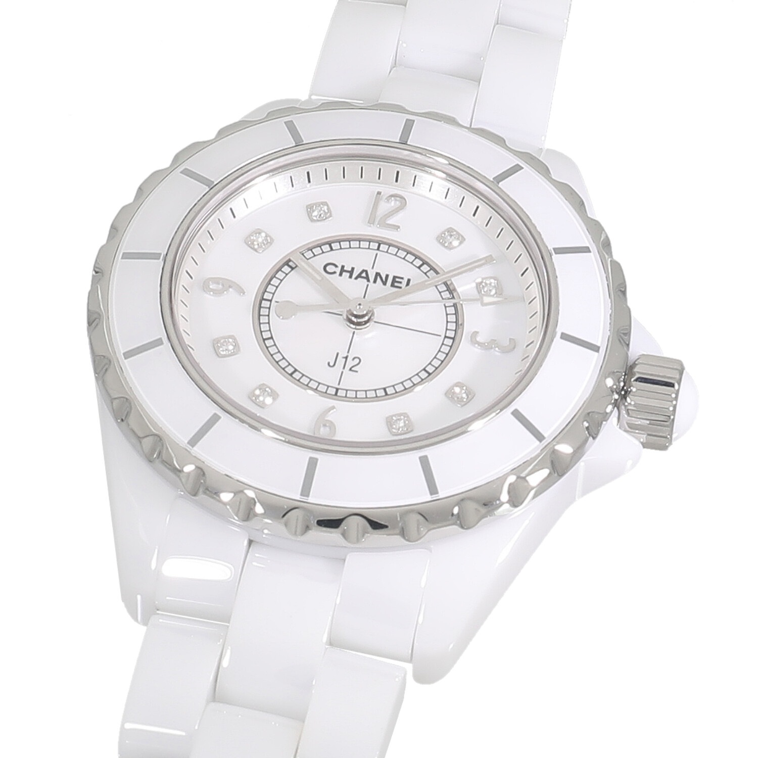 [中古]シャネル J12 ホワイト セラミック H2422 ホワイト シェル×8Pダイヤ レディース