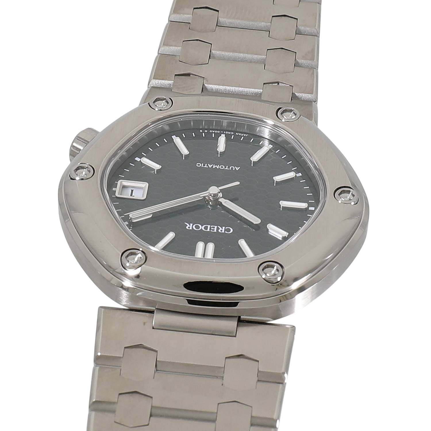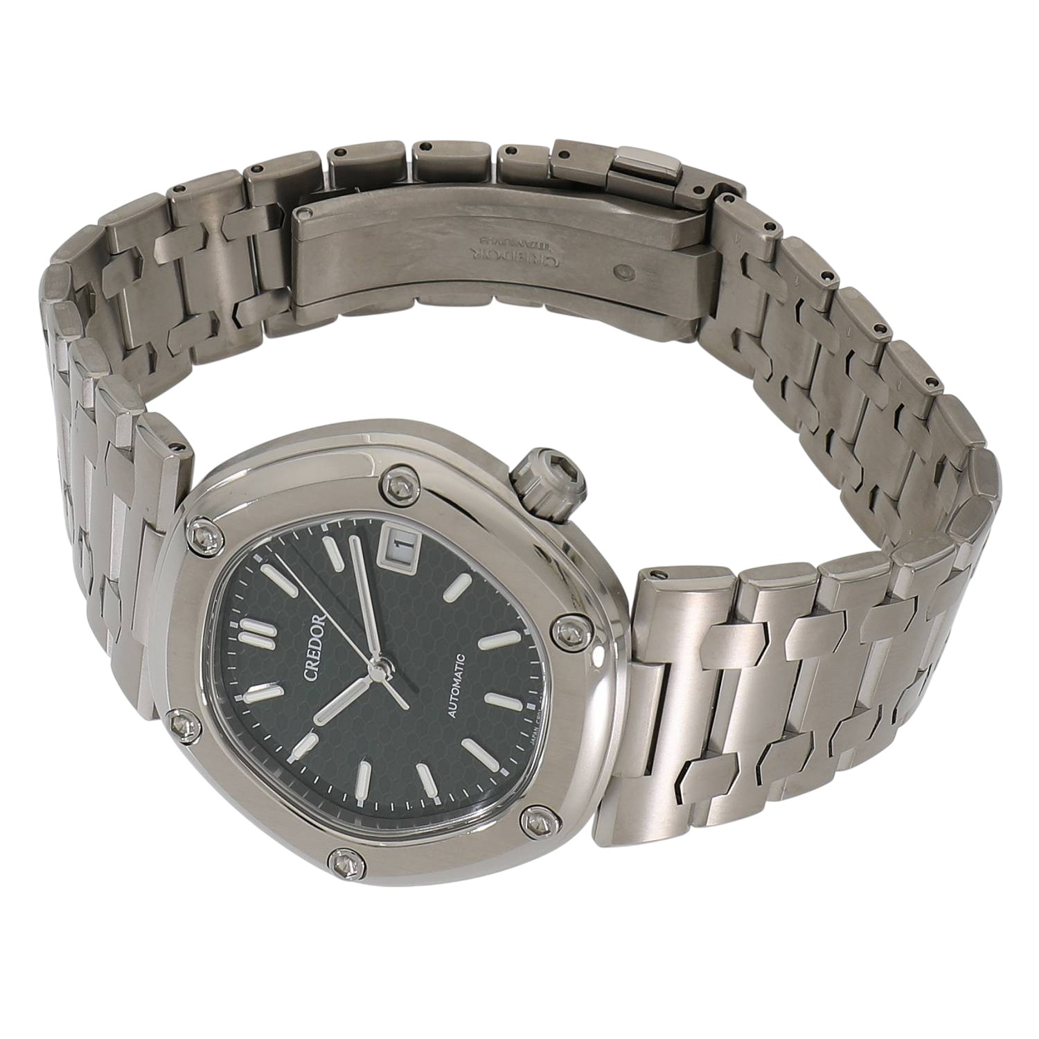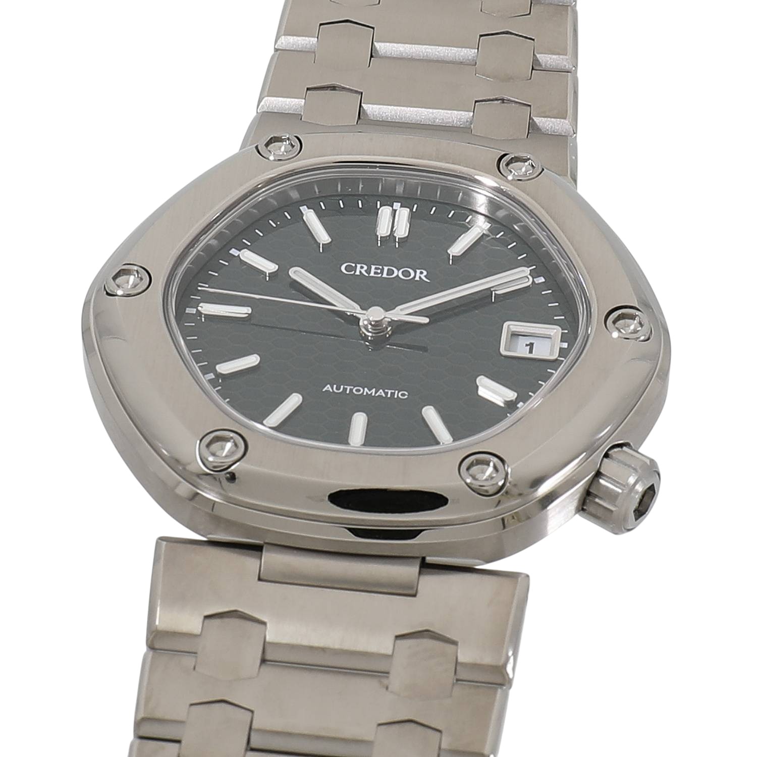 | モデルについて / Features | 2025年の新作 多くの名作を世に生み出し、時計界のピカソとも称されるジェラルドジェンタ氏がデザインを手がけ、1979年にオリジナルモデルが発表されたロコモティブ。1974年にセイコーのドレスウォッチ系の最上位ブランドとして誕生したクレドールコレクションの一つとして展開され、その長い歴史を代表する逸品と言えます。クレドールブランドが誕生し50周年を迎えた2024年に限定モデルが復刻発売され、発表直後には予約即完売という国内外から高い評価と多くの注目を浴びます。ジェラルドジェンタ氏は多角形のベゼルを好み、このロコモティブでは六角形を採用。濃いグリーンの文字盤には六角形のベゼルへのオマージュとして、鉄道システムの進行信号にインスパイアを受けたデザインをモチーフに取り入れています。ケースとブレスレットにはステンレスよりも30%も軽量で、対傷性や耐久性に優れるブライトチタンを採用しています。 |