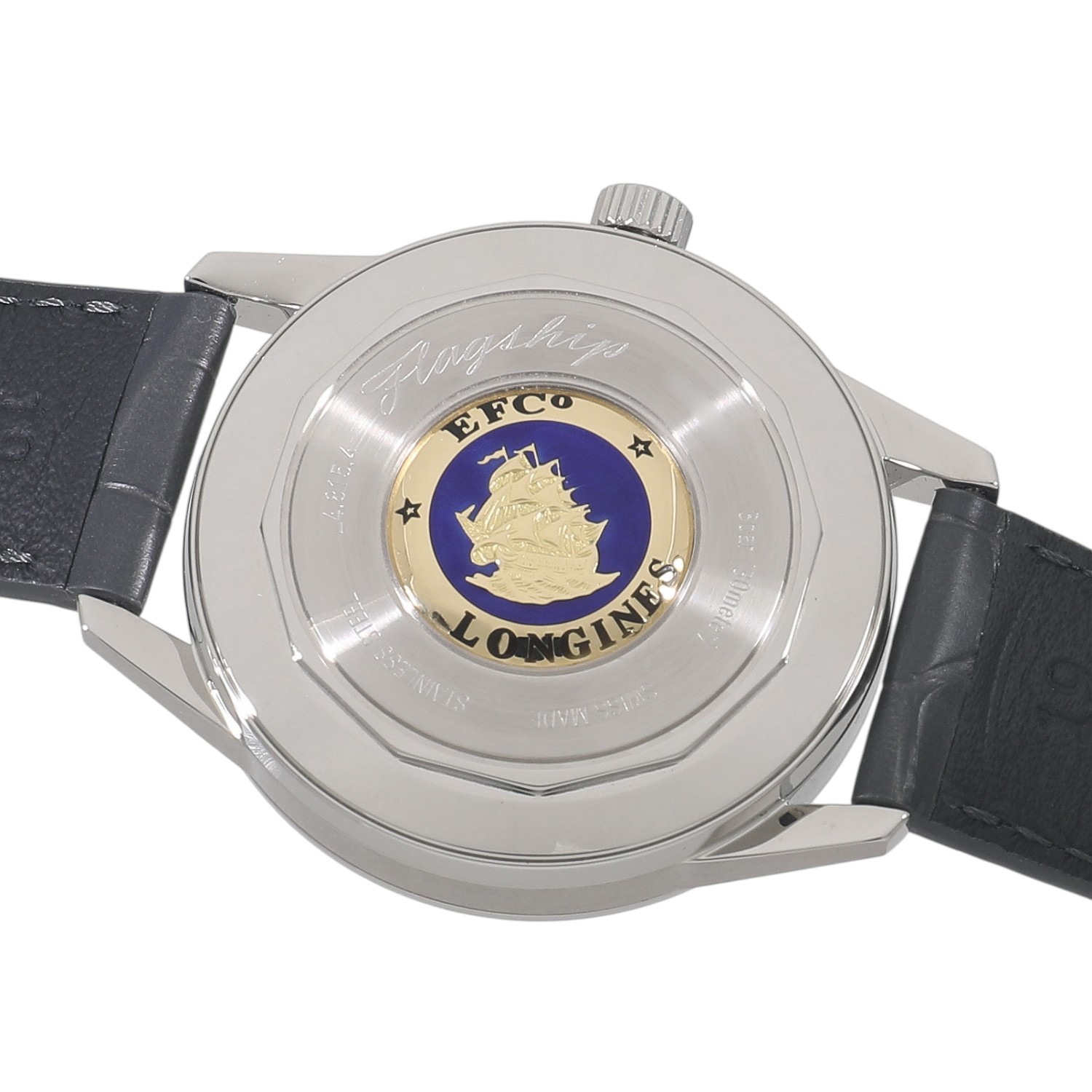| モデルについて / Features | 1832年にスイスのサンティミエで創業したロンジン。卓越した確かな技術力で多くの時計ファンを魅了し続けるブランドです。フラッグシップはロンジン最初期のコレクションであり1950年代からラインナップを続け、まさにブランドの象徴とも言えるコレクションです。艦隊の最高司令官の旗がたなびく「帆船」がネーミングの由来となっており、裏蓋にはブルーのエナメルと18金で描かれた帆船のメダリオンが燦然と輝いています。6時位置にはデイト表示と月齢を表示するムーンフェイズを備える、シンプルなデザインが人気を集めるモデルです。 |