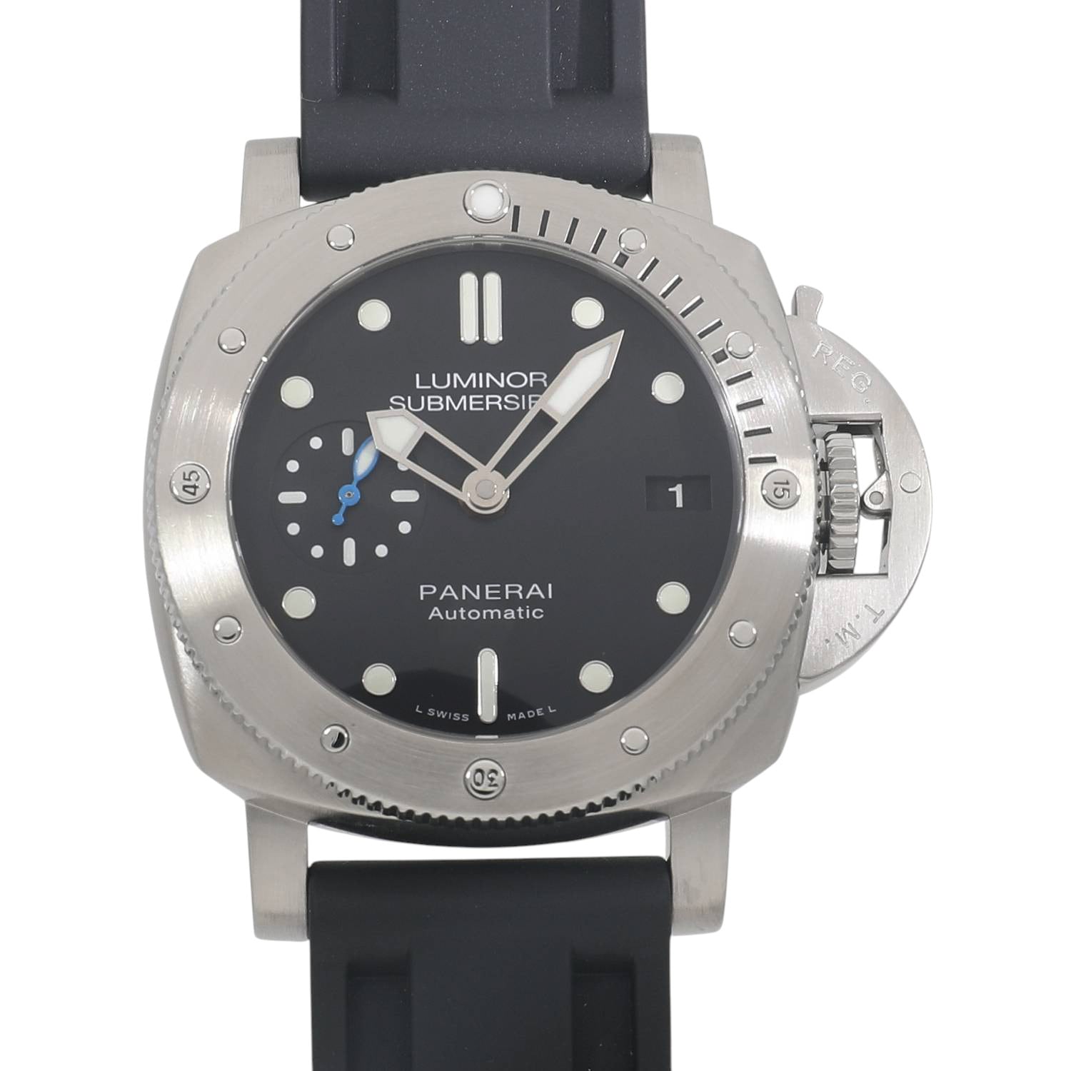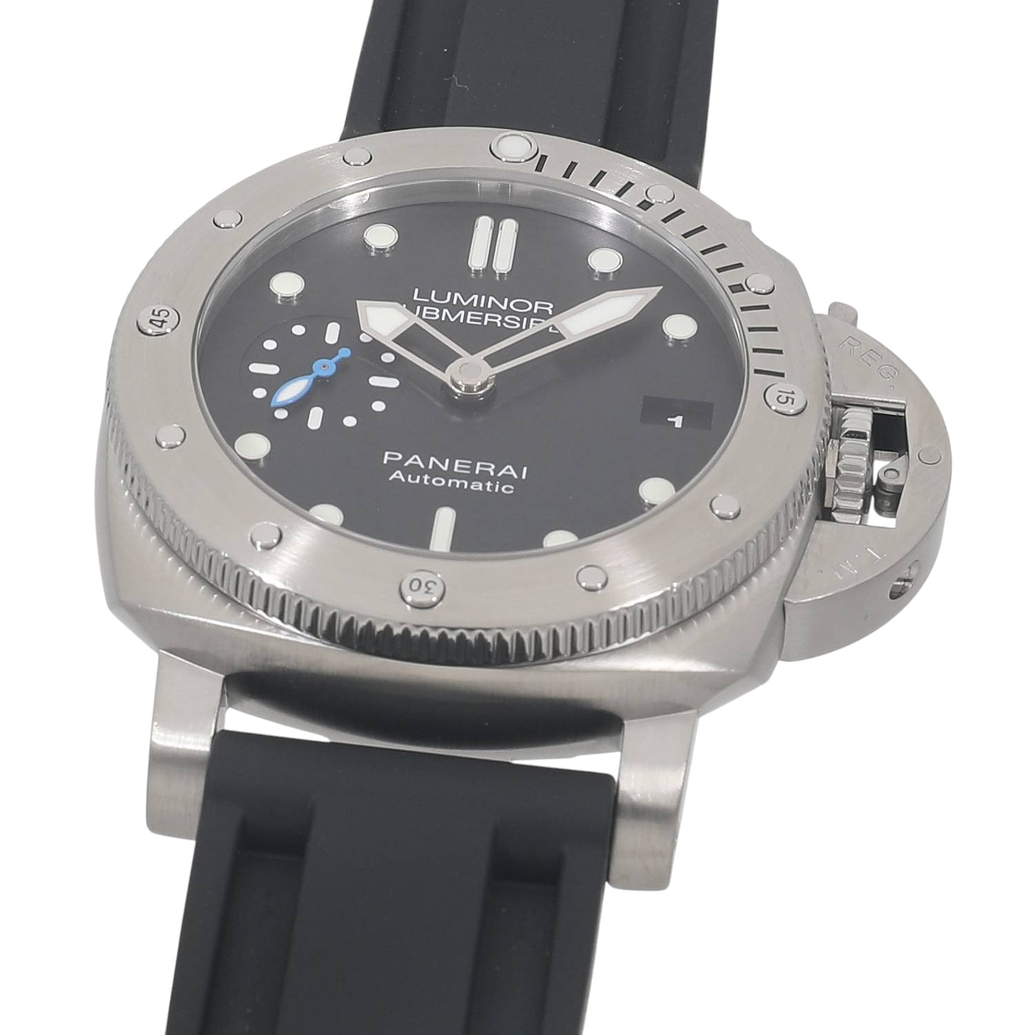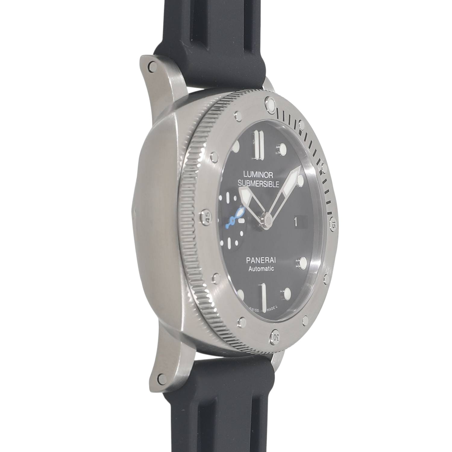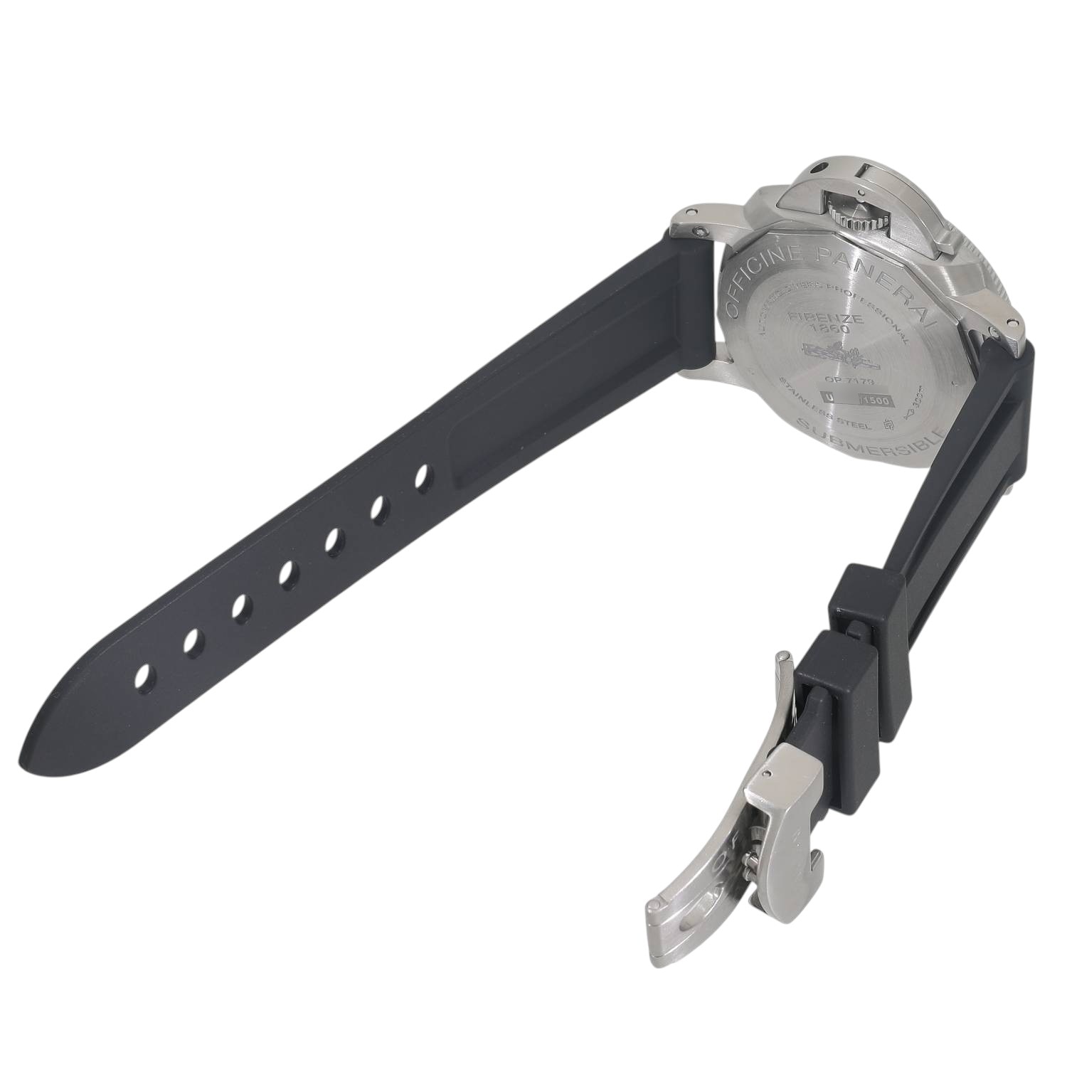 | モデルについて / Features | 回転ベゼルと高い防水性能を備えるプロフェッショナル仕様のダイバーズウォッチであるサブマーシブル。パネライらしく47mmと44mmでの展開されてきましたが、42mmサイズがコレクションに追加されました。小ぶりなサイズとなり手首が細めの方にも収まりと使い勝手が良くなりましたが、300M防水など従来のハイスペック仕様は維持しダイバーズウォッチとして十分な機能を備えております。ムーブメントはパネライの自社製P.9010を搭載しており、3日間のパワーリザーブを有します。前期はバックスケルトン、後期はメタルバックと2パターンの仕様がございます。 |