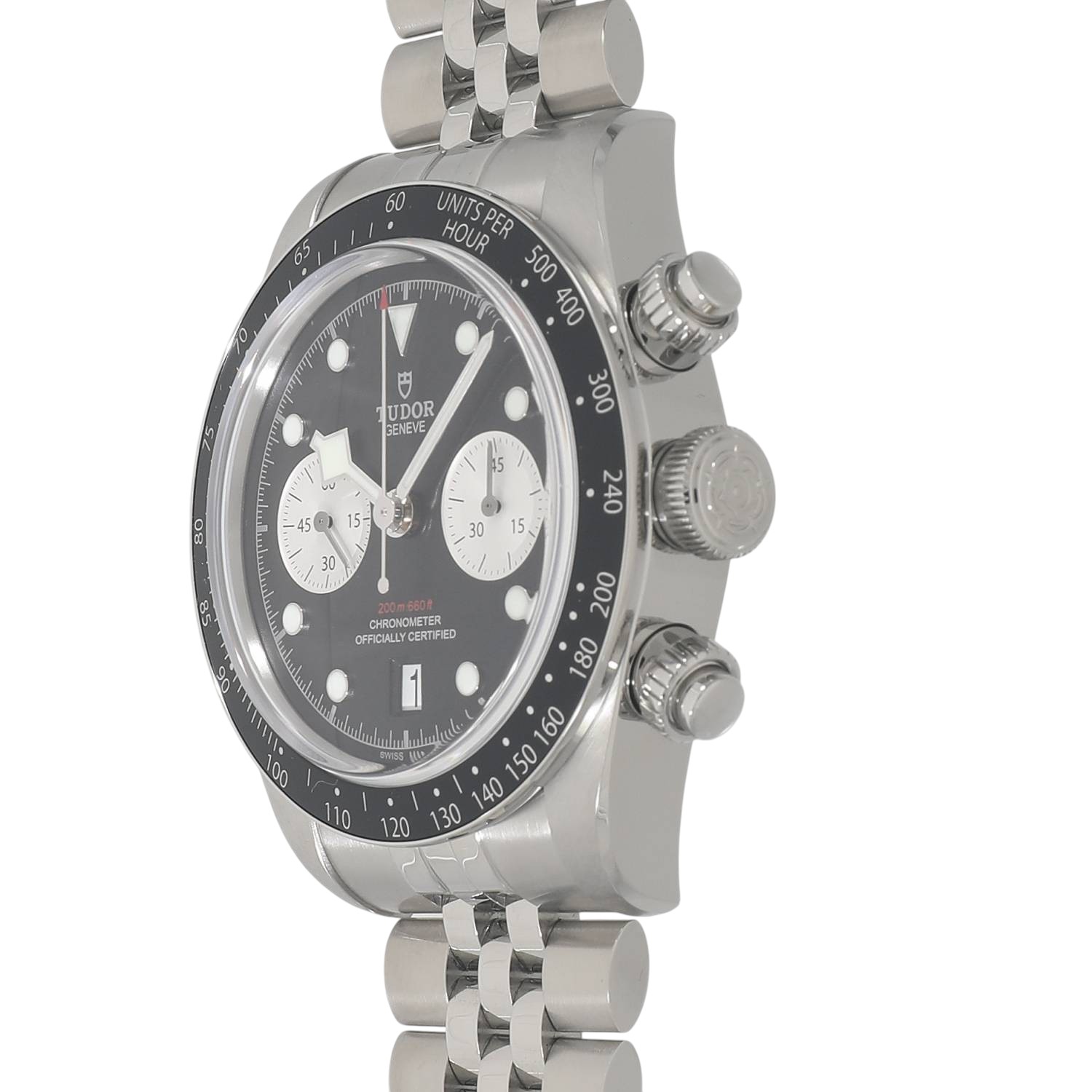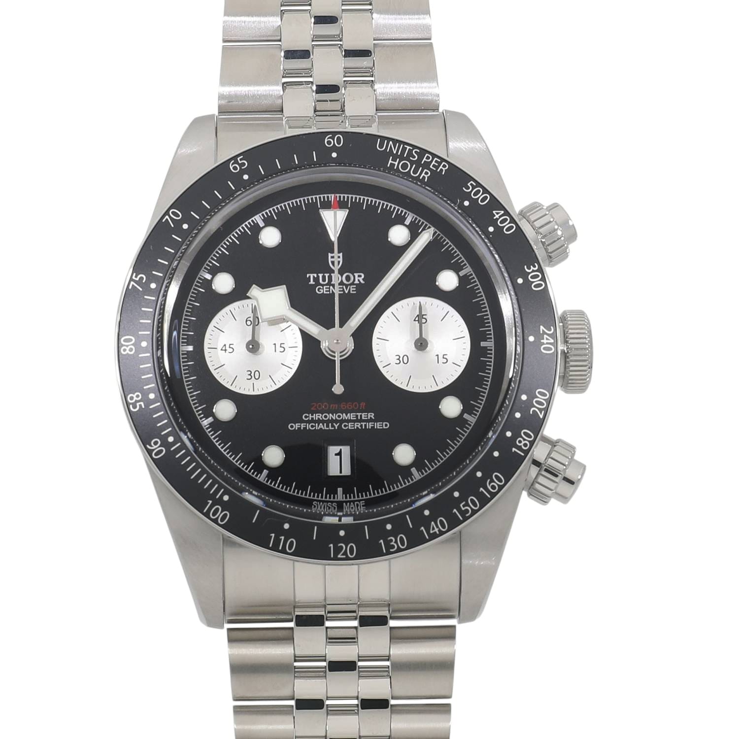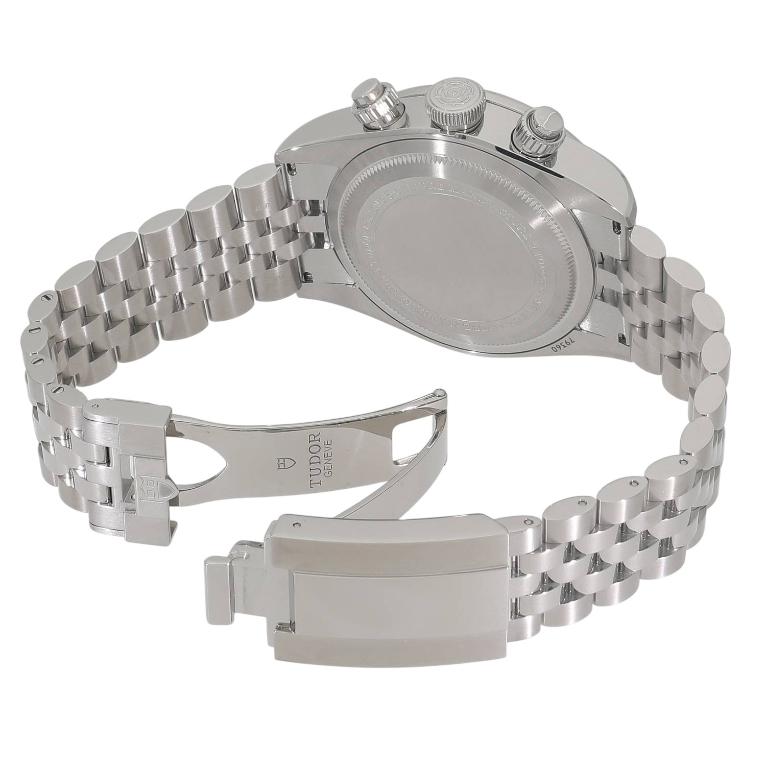 | モデルについて / Features | 2025年の新作 チューダーのアイコン的コレクションとして、人気のブラックベイシリーズ。ブラックベイらしくダイバーズウォッチの流れを組んだケースデザインに、モータースポーツのイメージを結びつけるストップウォッチ機能を備えるクロノグラフモデルが2019年に発表されます。ステンレスケースを採用したブラックベイクロノグラフは、2021年にラインナップに加わり、更に高い人気と支持を得る事になります。2025年の最新仕様では工具を使わず8ミリの長さを5段階で簡単に調整できるT-fitクラスプへと変更されました。 |