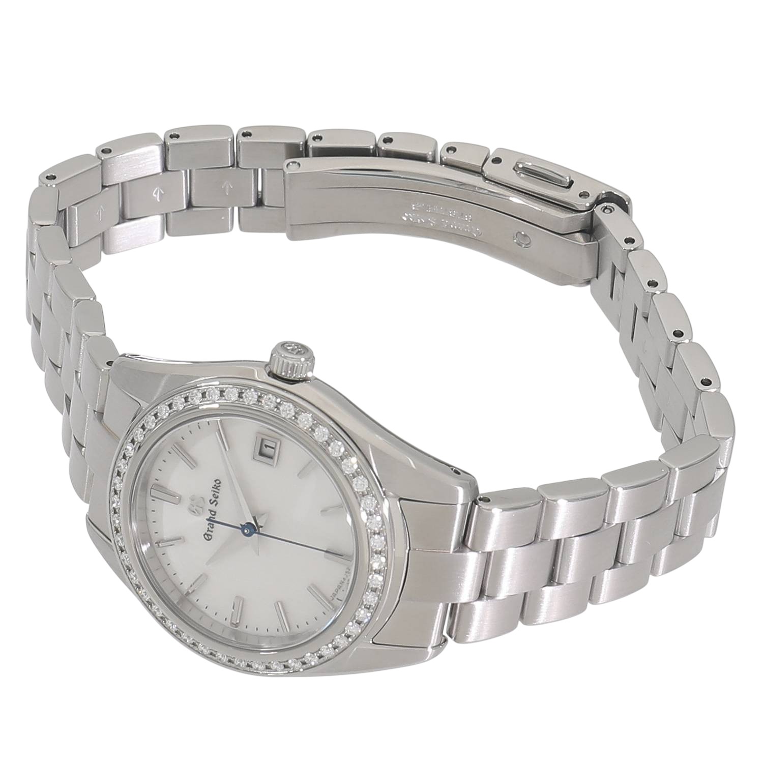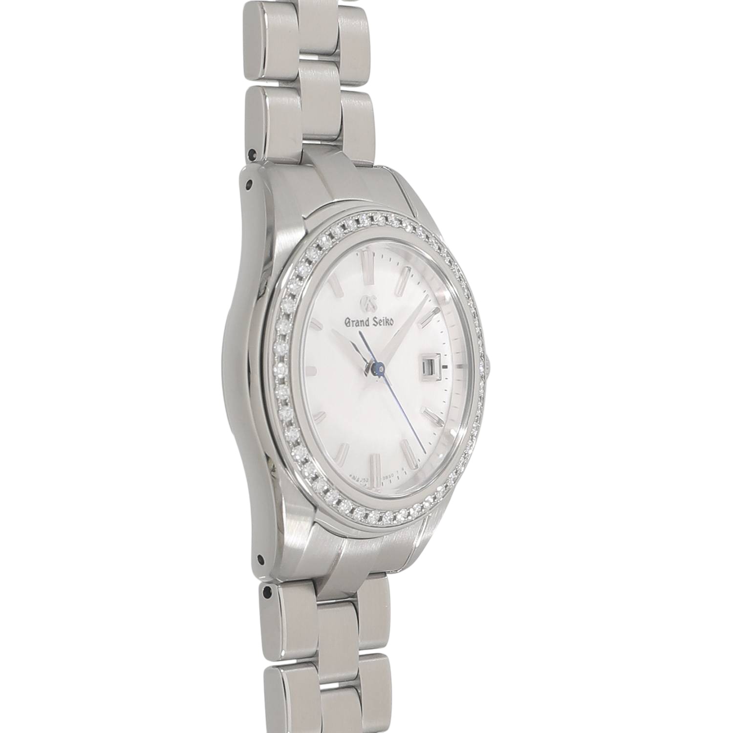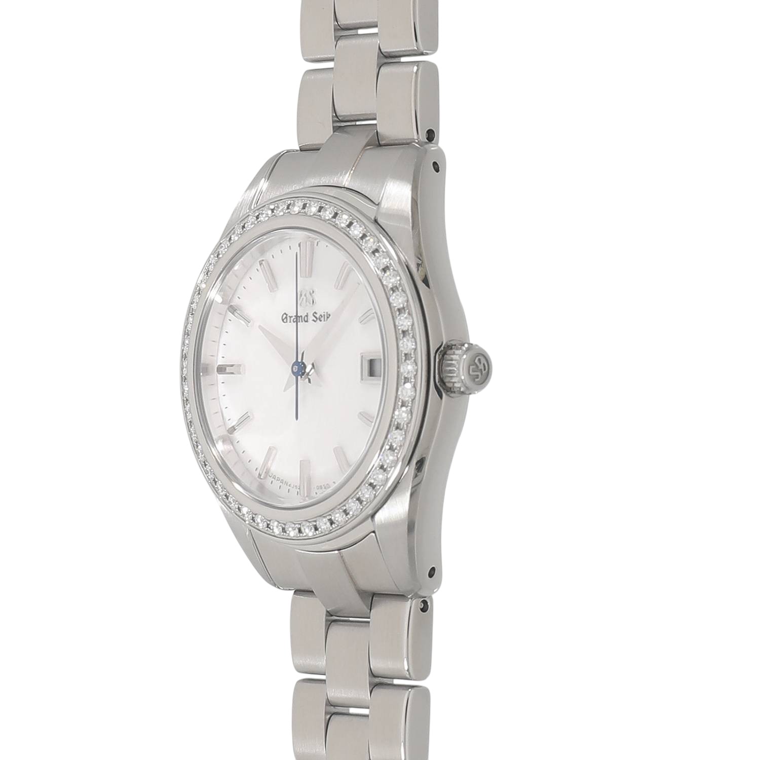 | モデルについて / Features | 日本を代表する時計ブランドとして世界的に人気の高まりを見せ注目を集めるグランドセイコー。ミニマルなデザインが特徴的なヘリテージコレクションのレディースモデルです。文字盤はメンズモデルでも人気を博す雪白(スノーフレーク)を採用。この特徴的な文字盤は、本モデルが製造される、信州 時の匠工房から望む穂高連峰の荘厳な雪景色が美しく再現され、未踏の雪原に風が刻む風雪紋を表現しています。ベゼルには約0.39カラット、合計44個のダイヤモンドがセットされており、シンプルなデザインながらも上品さとエレガントさを感じさせるデザインです。 |