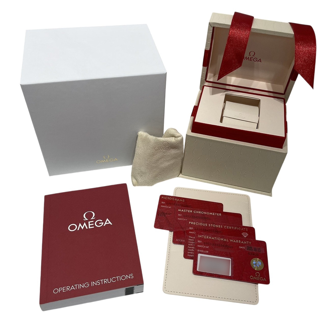 | 付属品 / Accessories | 純正ボックス / 国際保証書(国内:2025年10月 ) / マスタークロノメーター証、ピクトグラム、ダイヤモンド鑑定カード、ギャランティーカバー、説明書 |